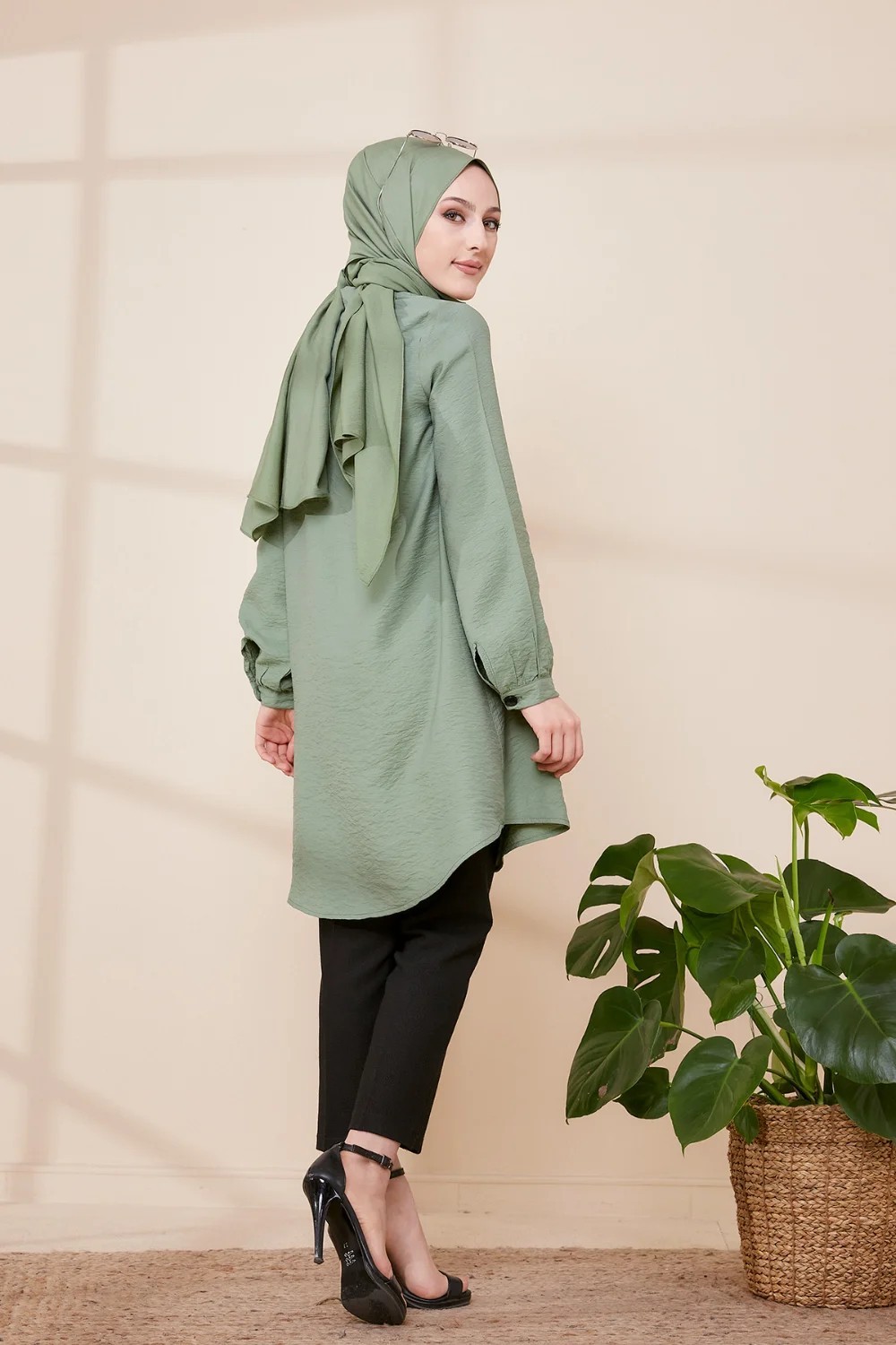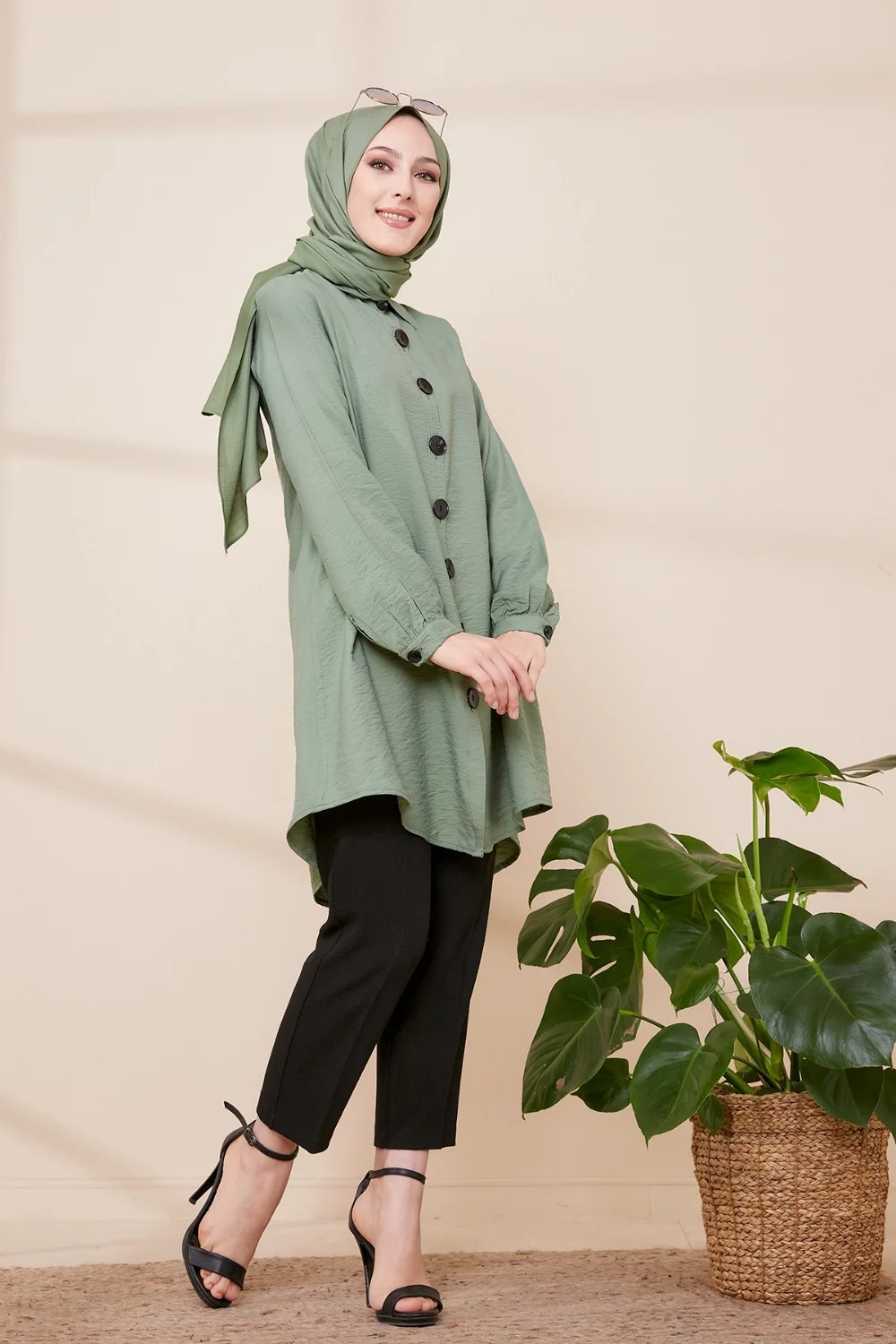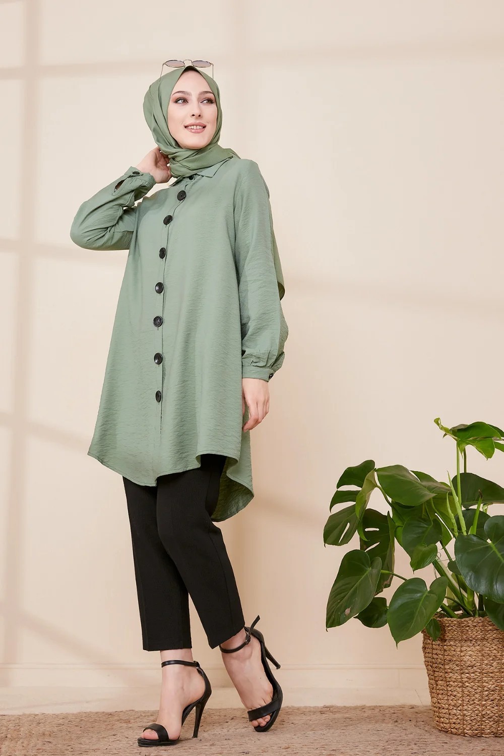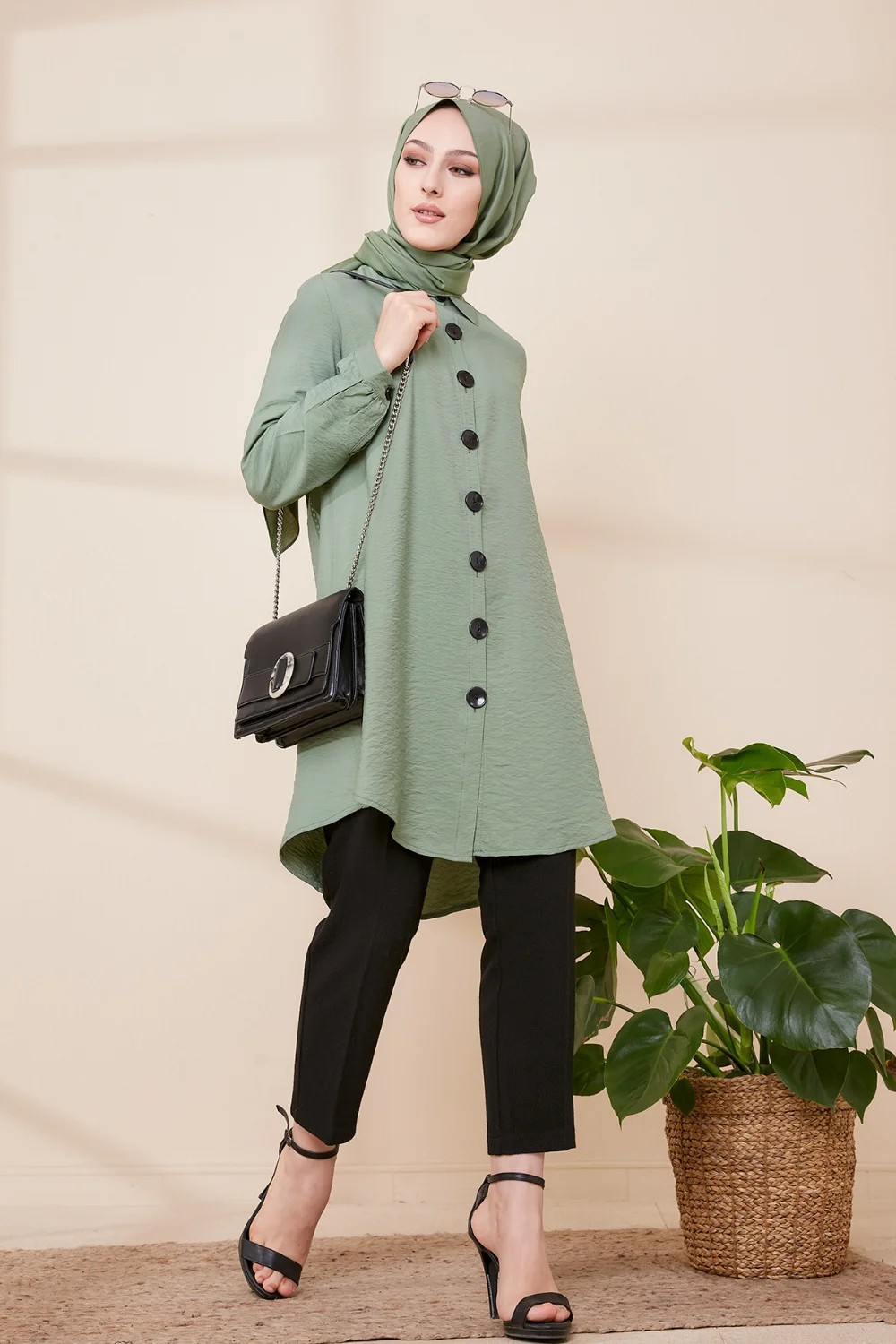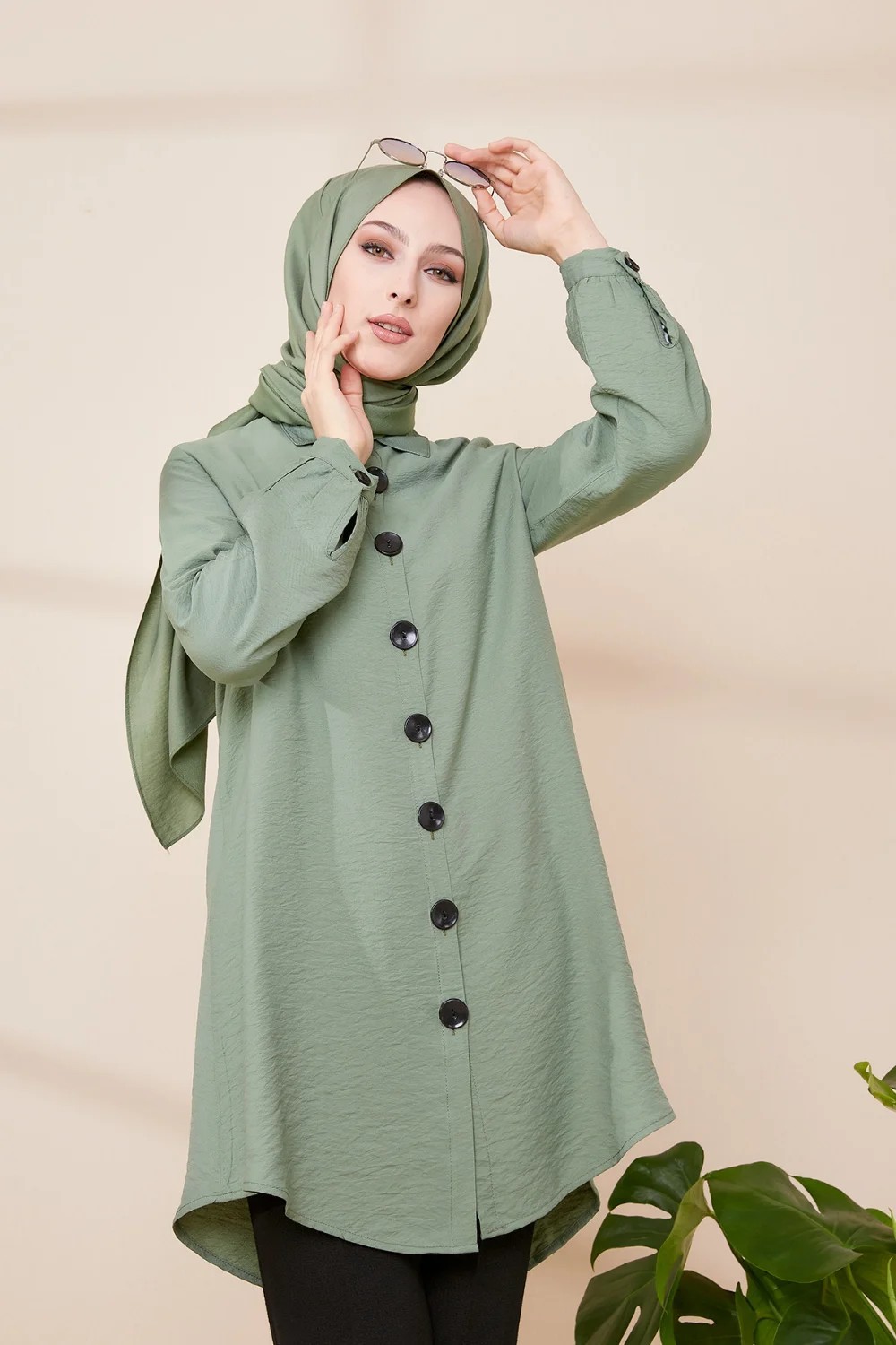 Chemise a gros boutons (Tunique style habille pour femme voilee) - Couleur kaki