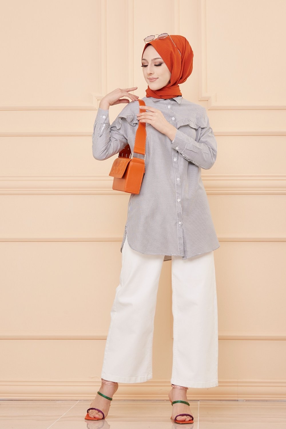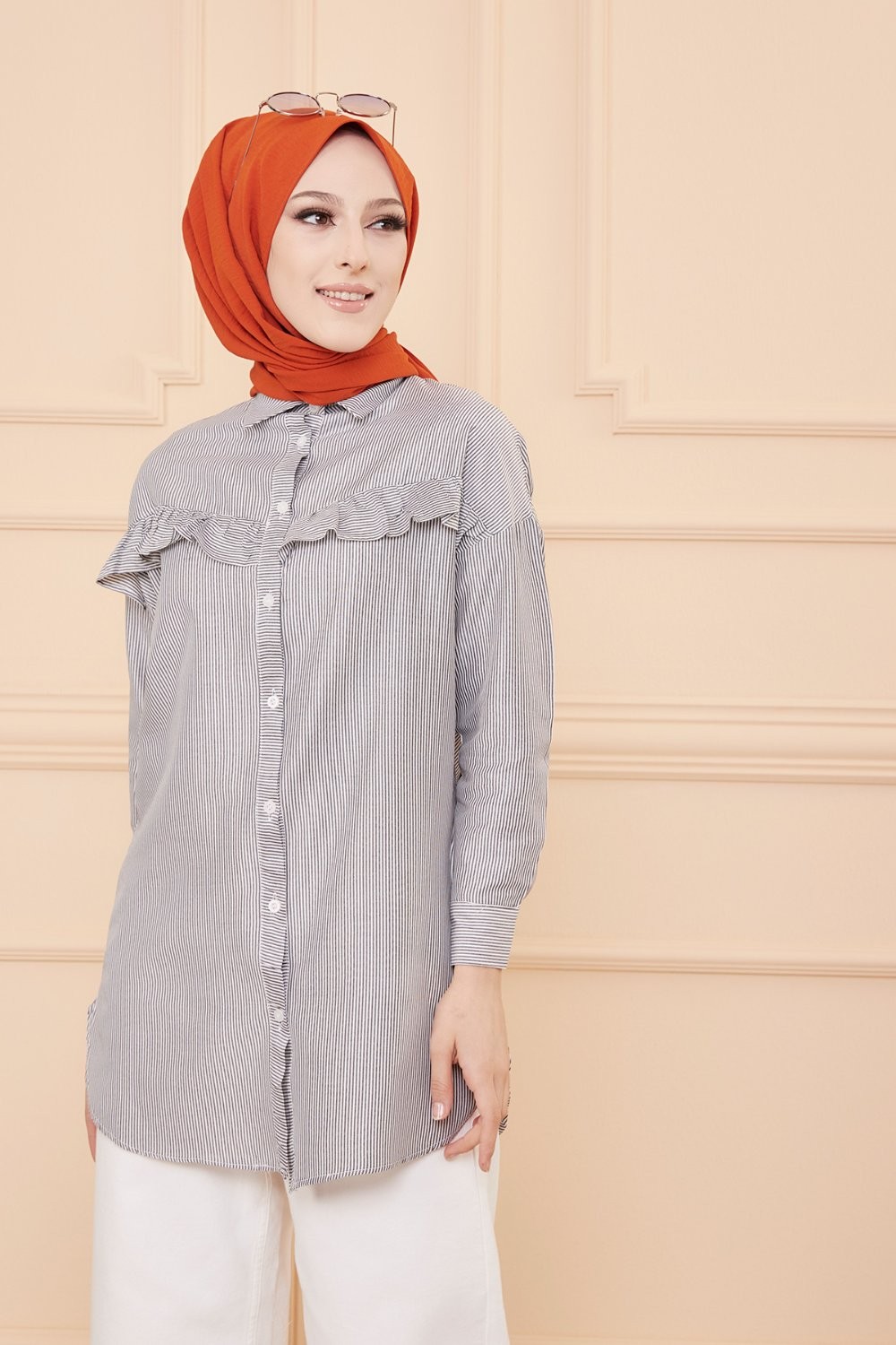 Tunique-Chemise ample boutonnée (Vetement décontracté femme voilée) - Couleur blanche - REF. 33195 (25.00 €)
