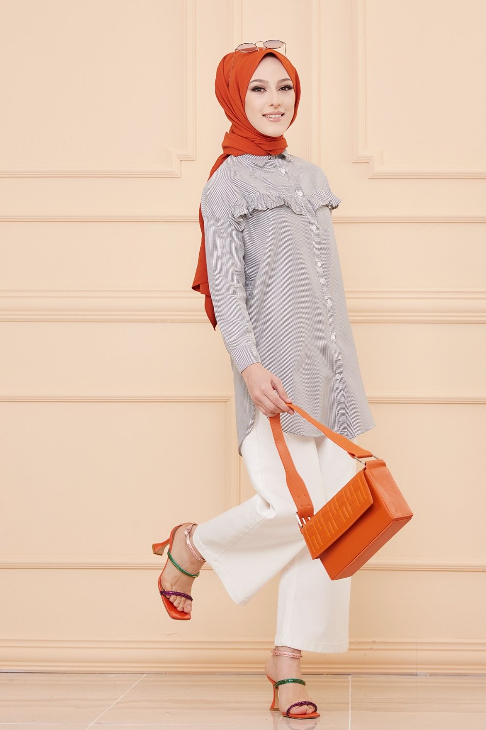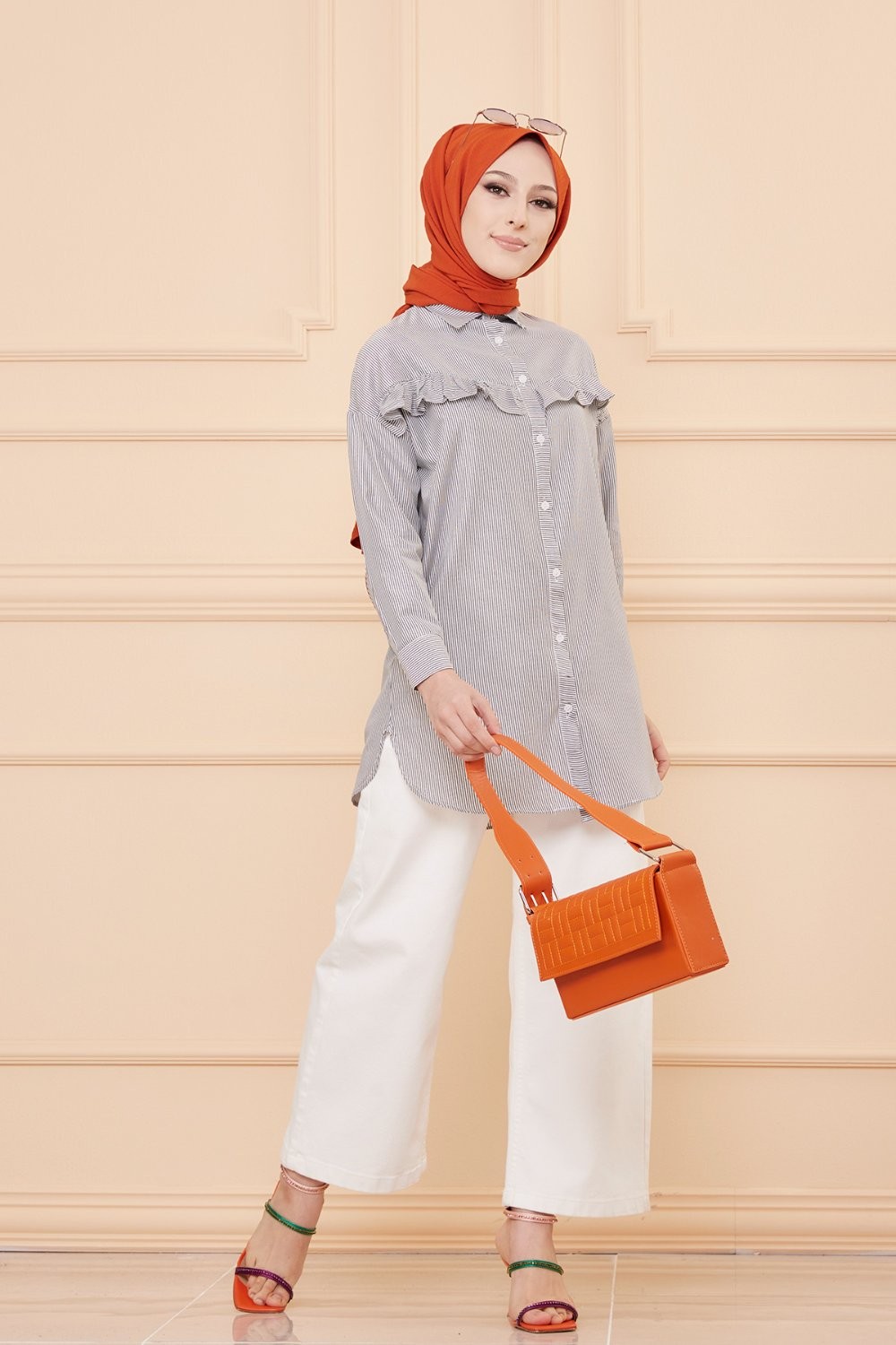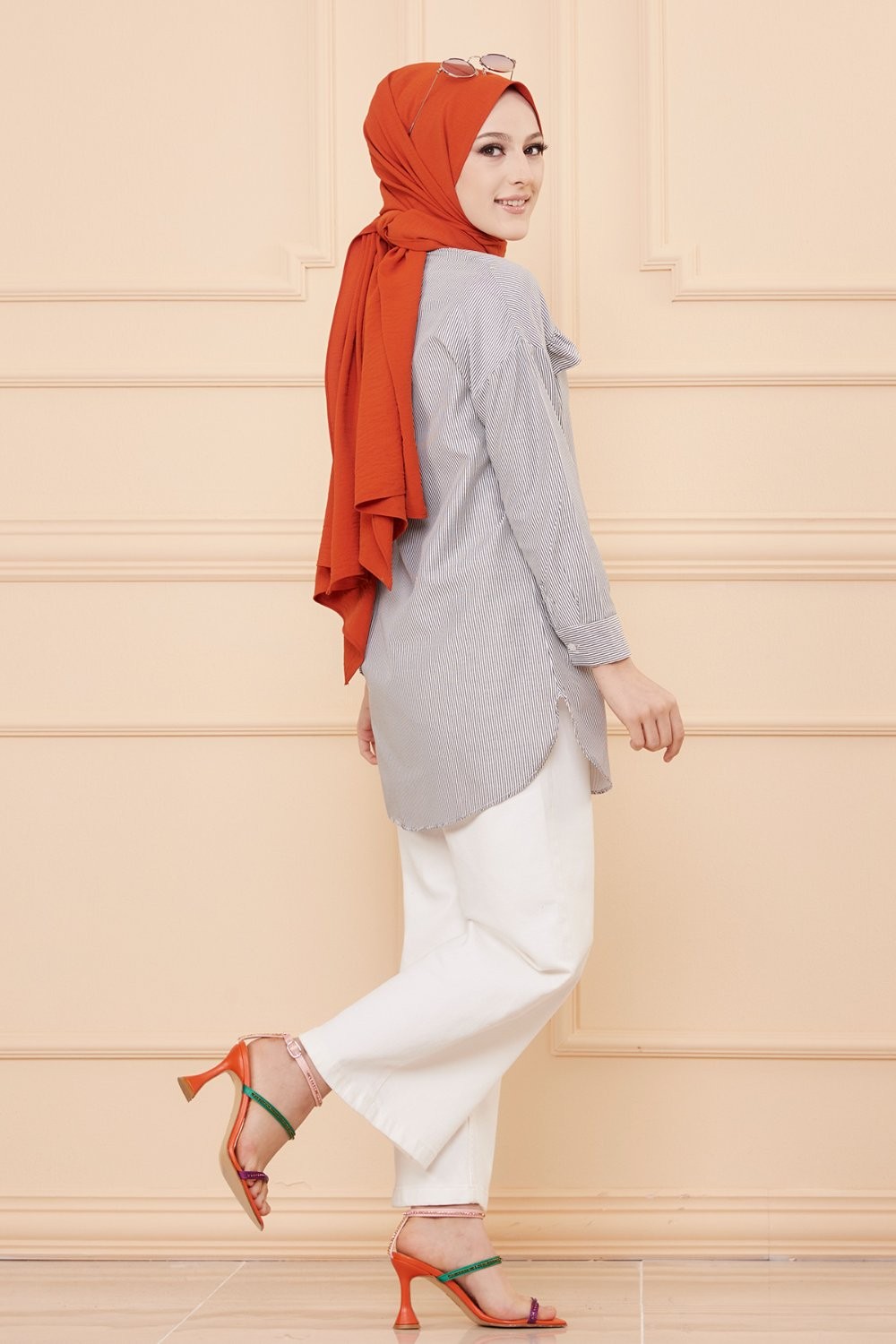 Tunique style habillé pour femme (Vêtement chic pour hijab) - Couleur beige et blanc - REF. 36576 (29.90 €)