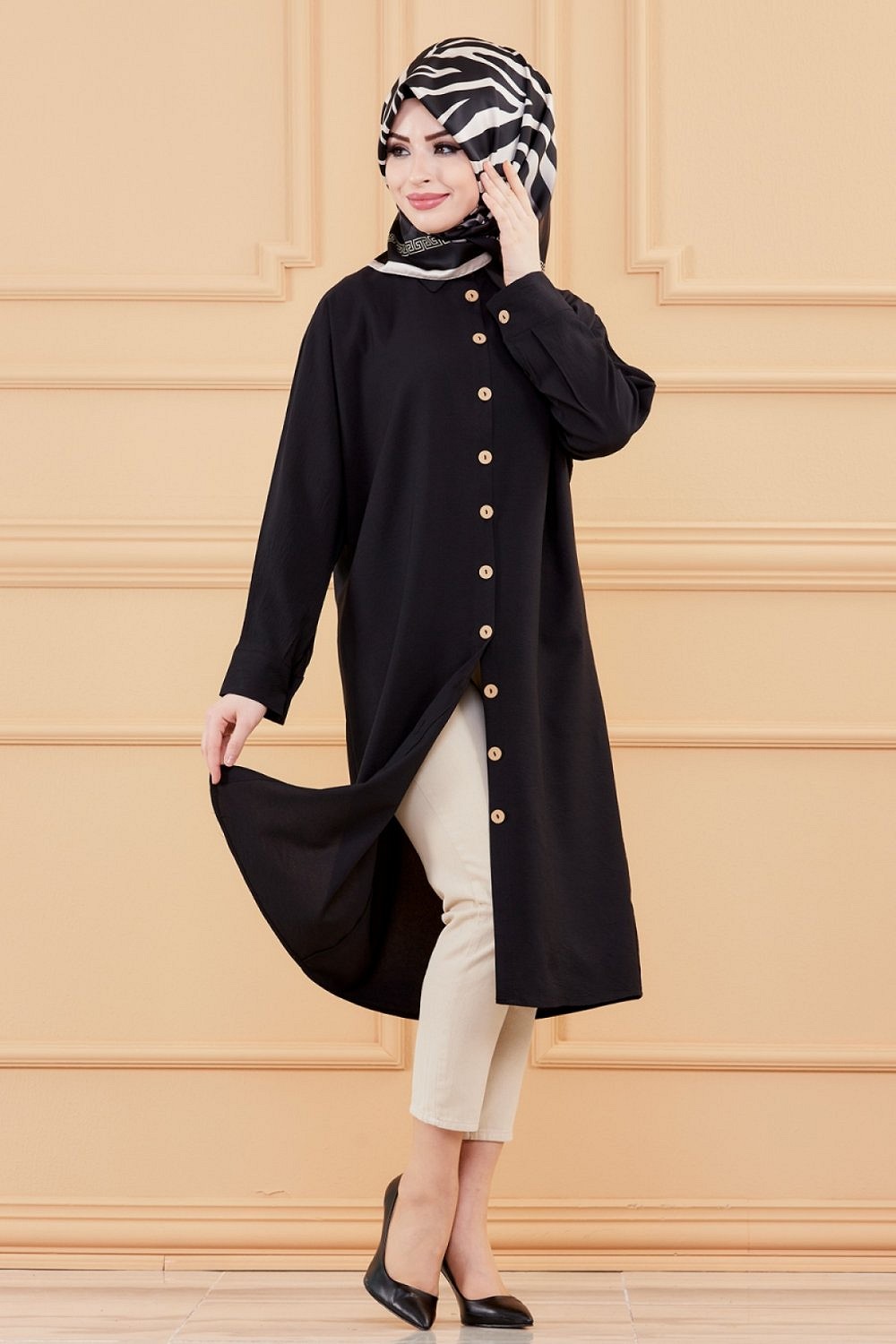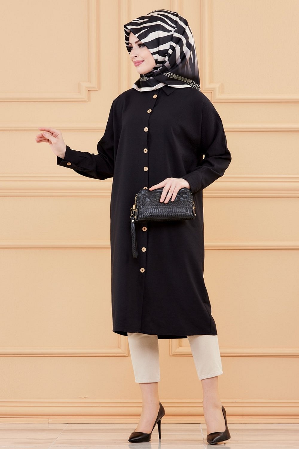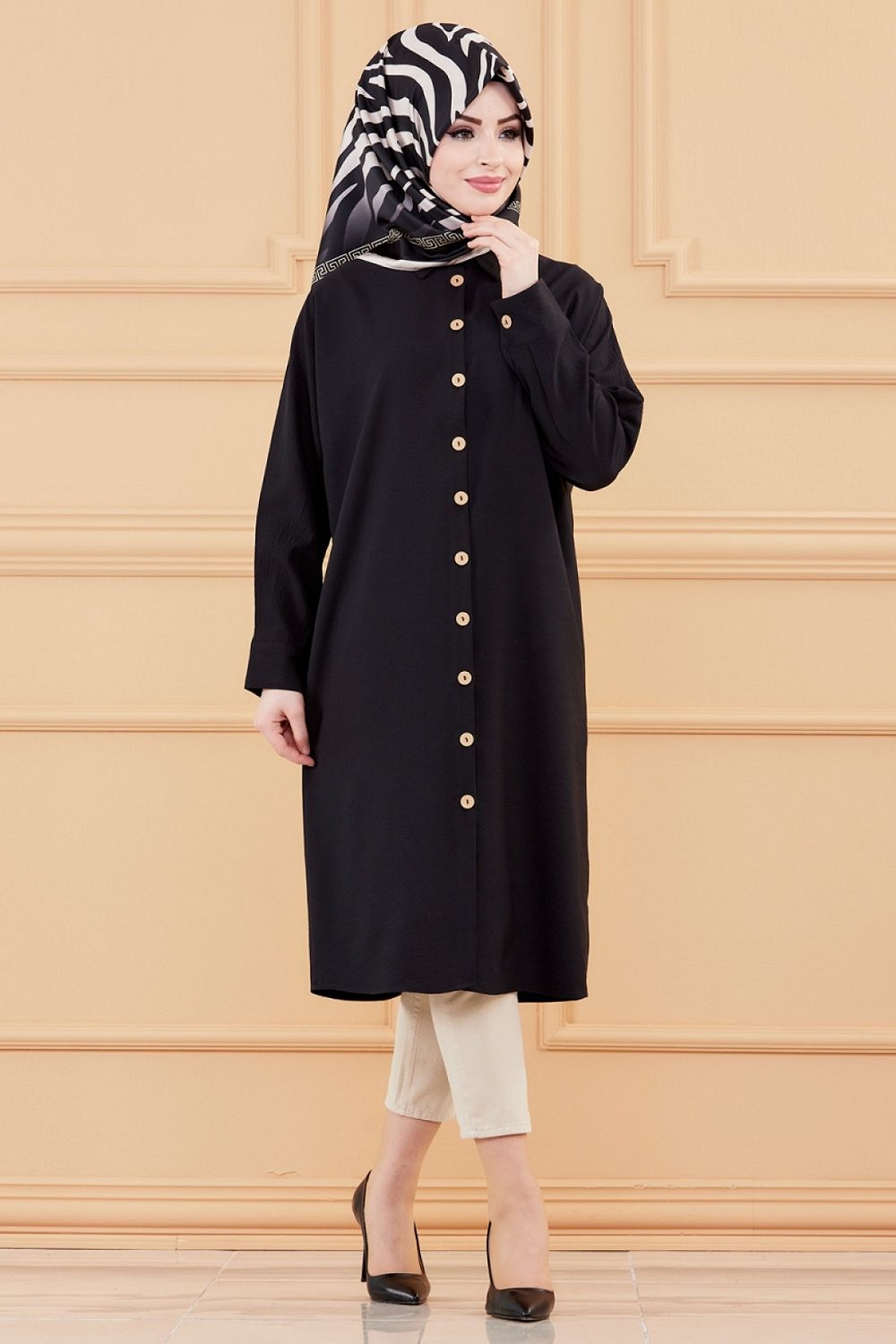 Tunique longue pour femme - Chemise boutonnée ample - Couleur noir Vetement & Accessoire