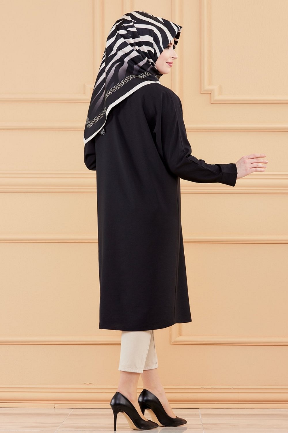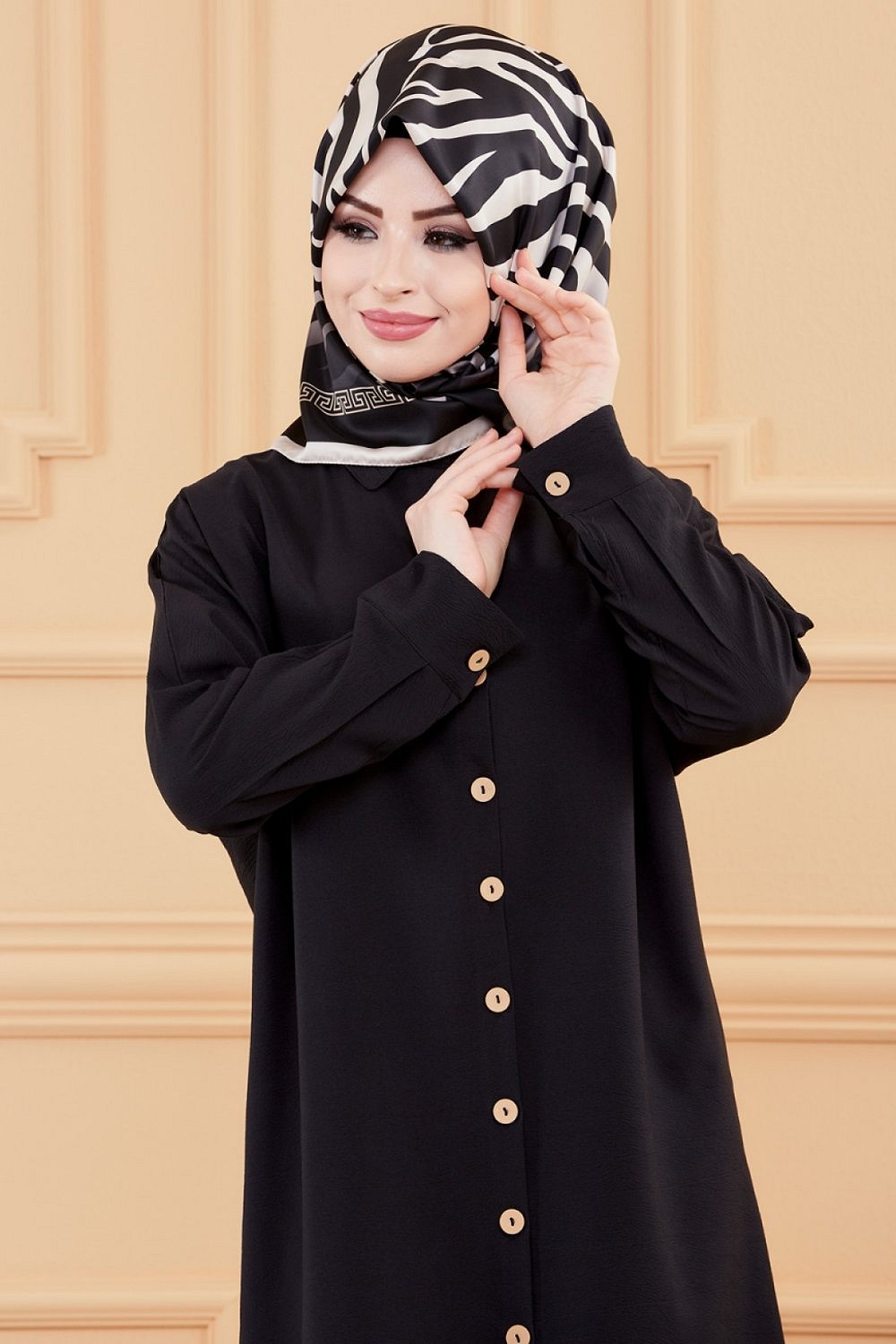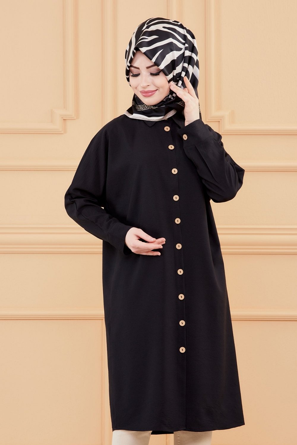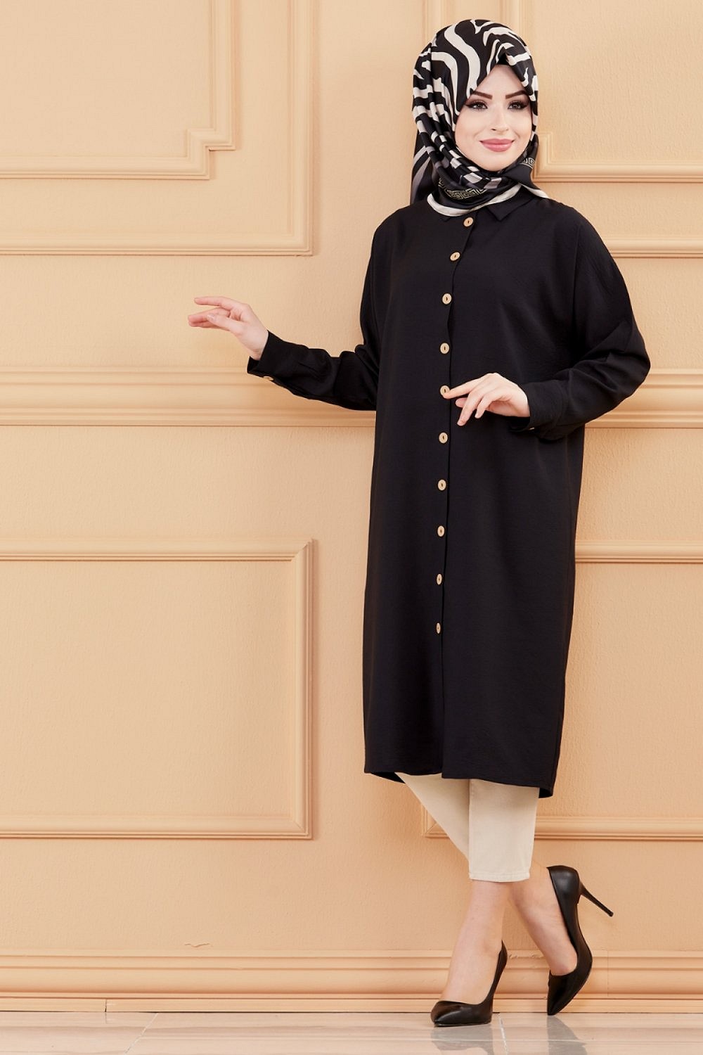 Tunique longue pour femme - Chemise boutonnée ample - Couleur noir Vetement & Accessoire
