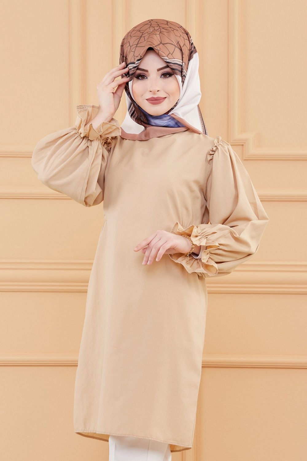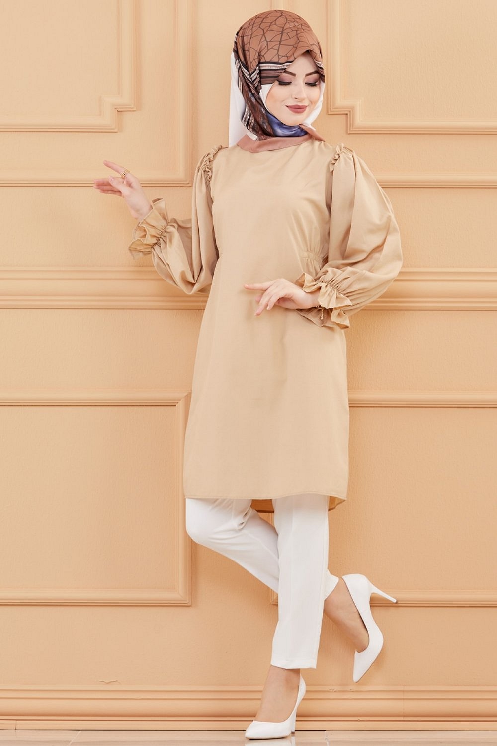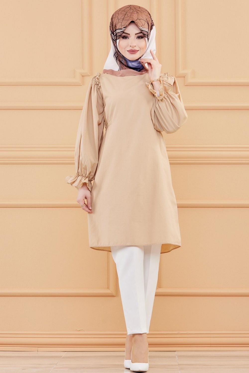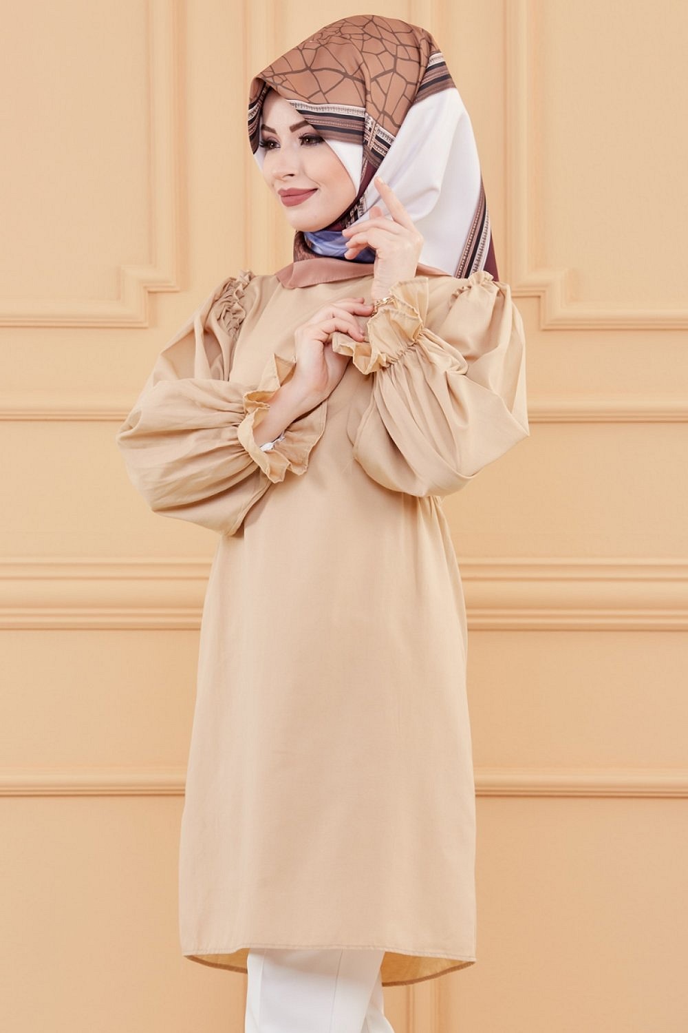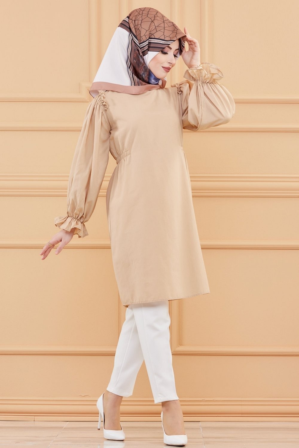 Tunique manches ballon (Tenue habillee pour femme voilee) - Couleur beige