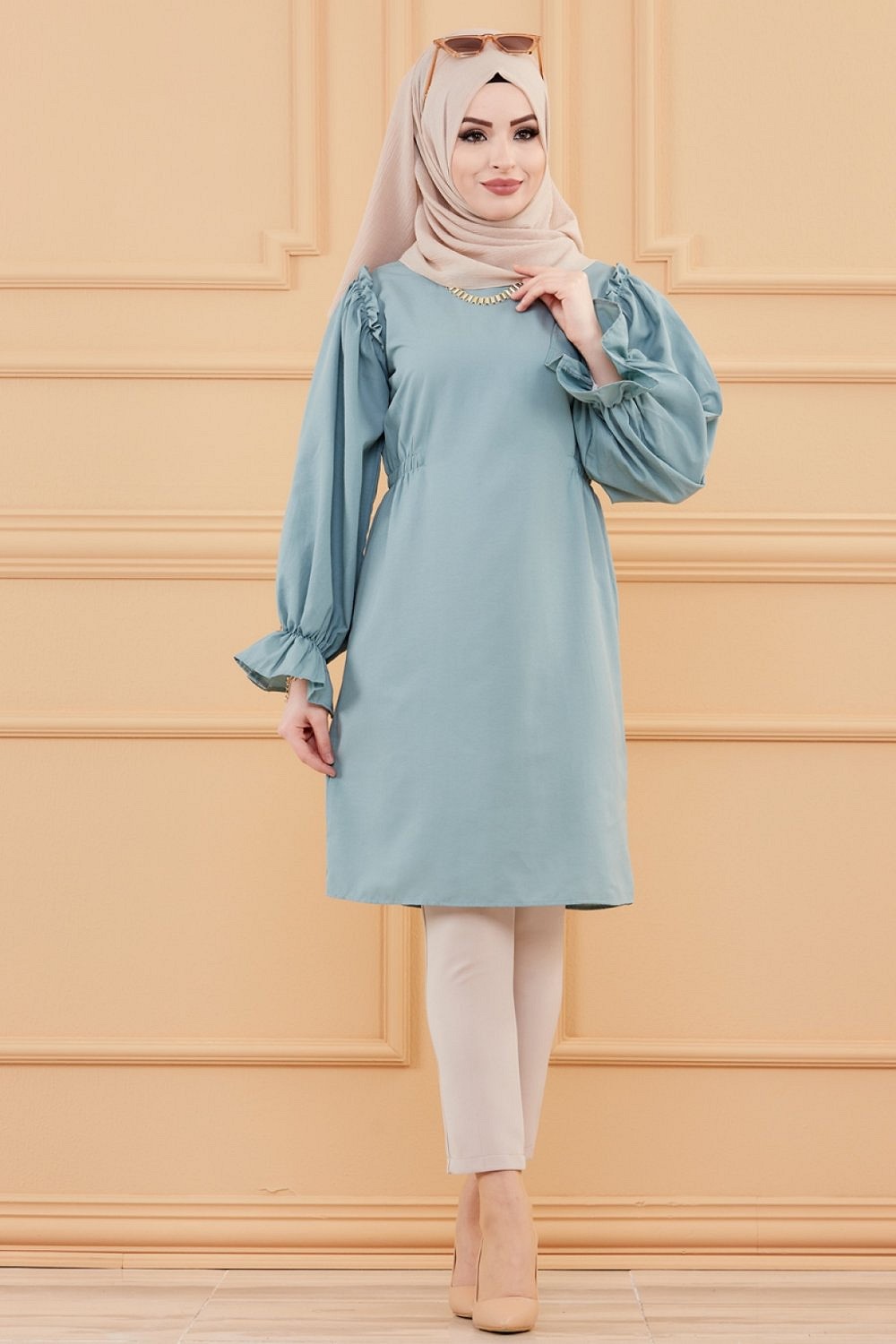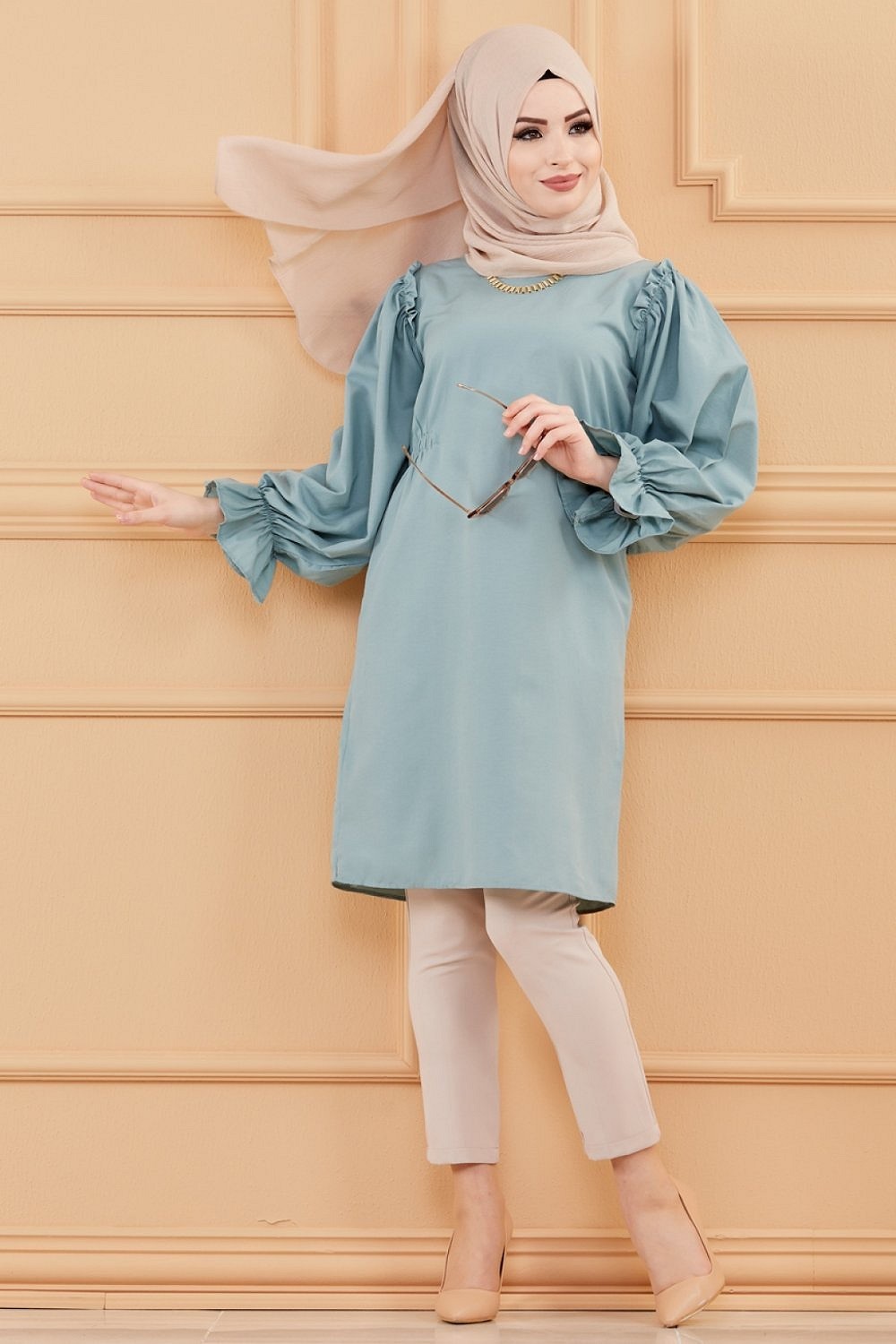 Tunique manches ballon (Vêtement habillé pour femme voilée) - Couleur menthe Vetement & Accessoire