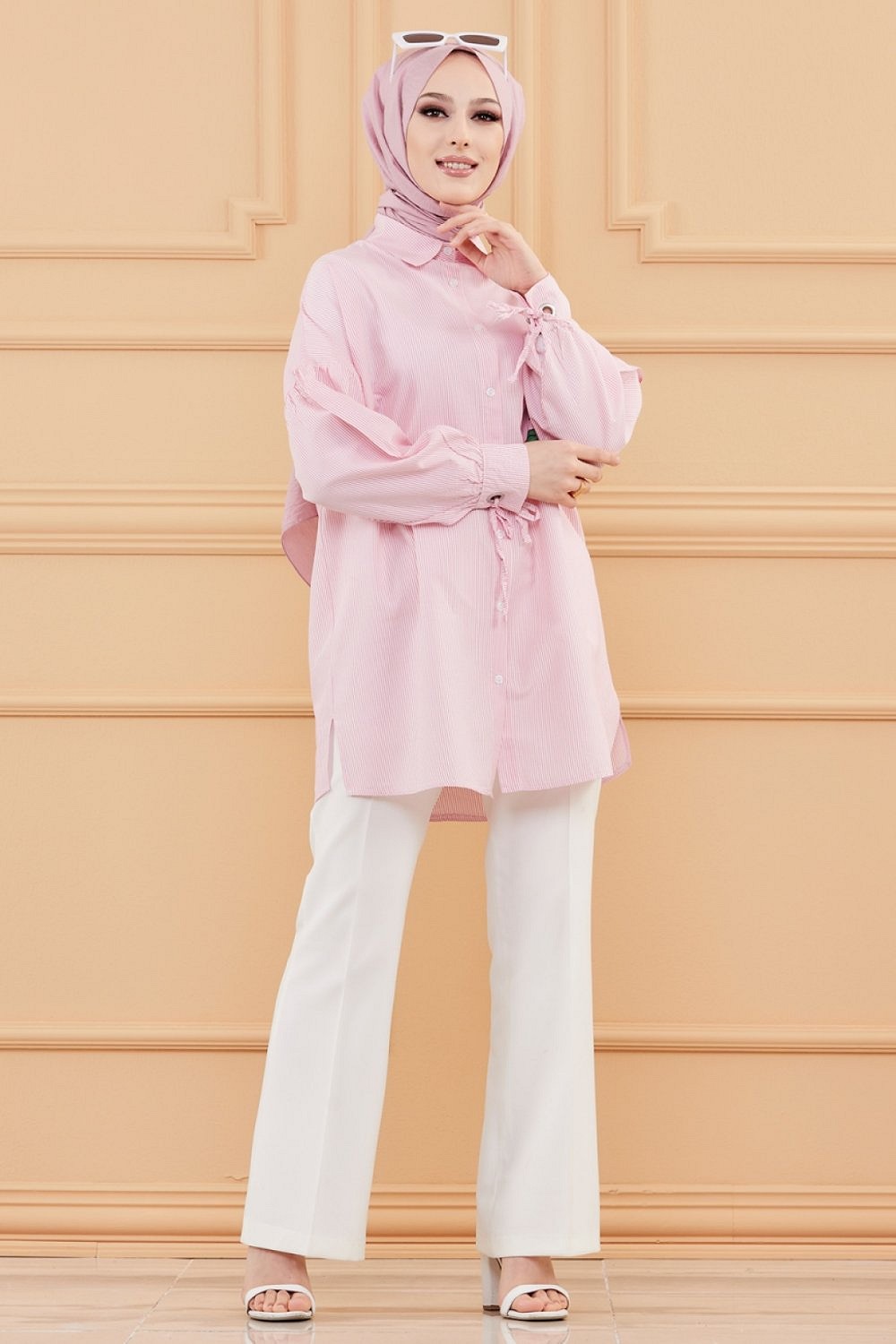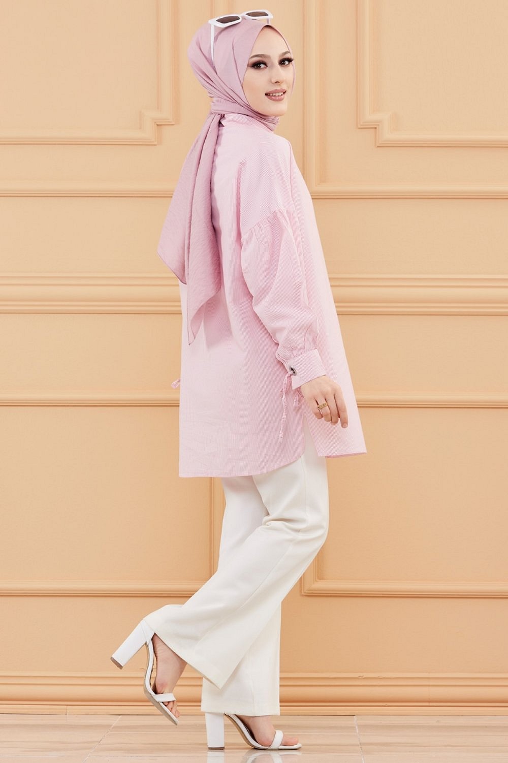 Tunique à froufrous pour femme (Tenue Hijab) - Rayures couleur rose poudré - REF. 35912 (19.90 €)