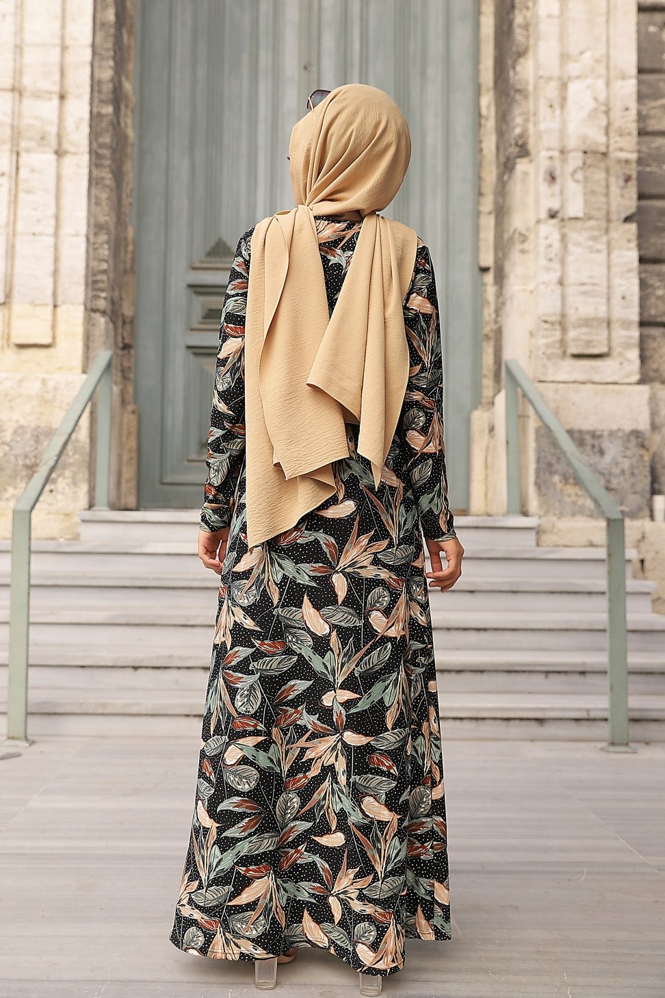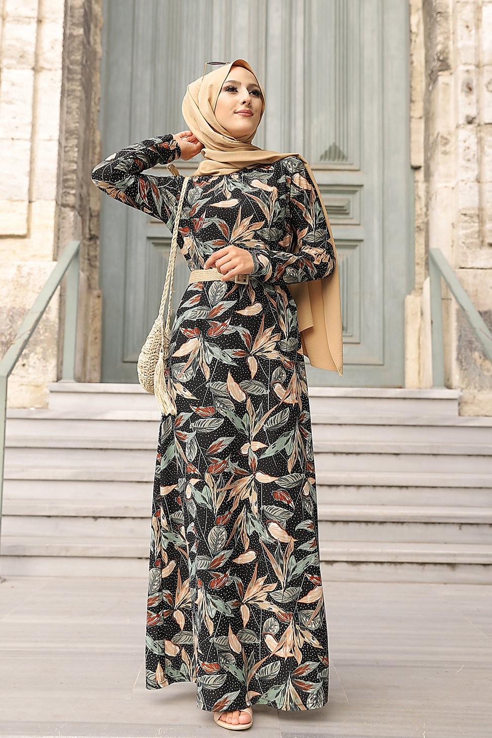 Robe longue en crêpe (Robes pour femmes voilées) - Couleur noir et menthe Vetement & Accessoire