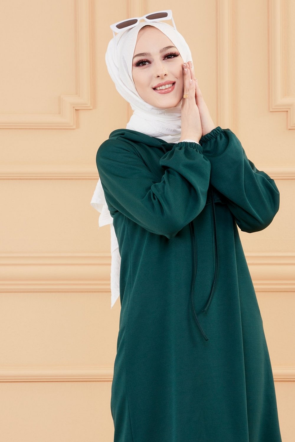 Tunique avec strass et capuche (Tenue décontractée moderne pour femme voilée) - Couleur vert émeraude Vetement & Accessoire