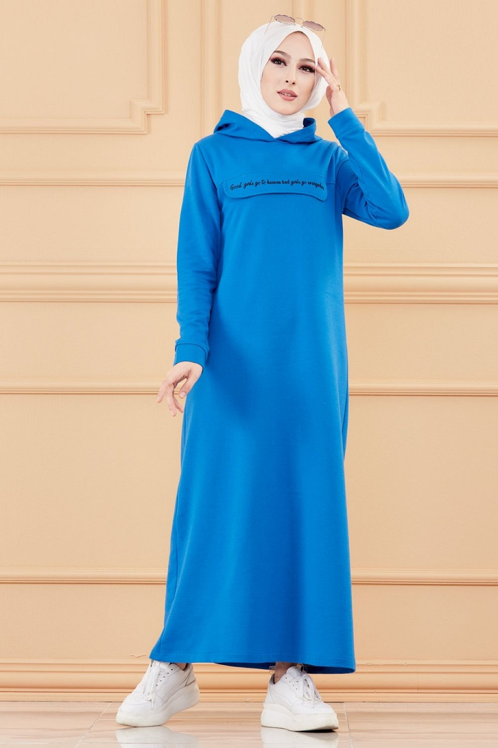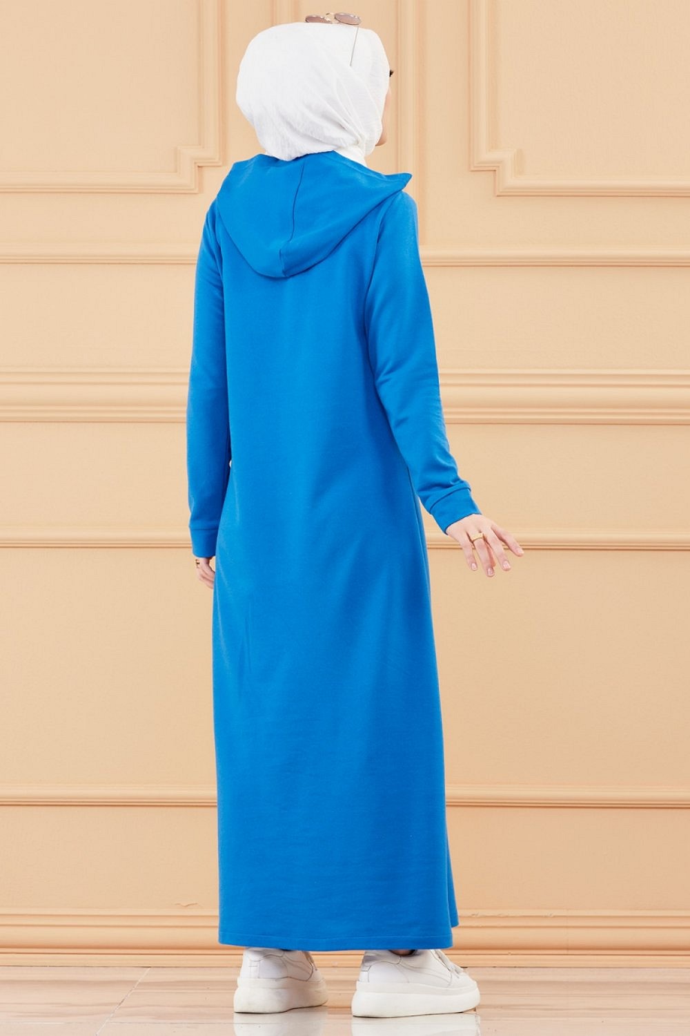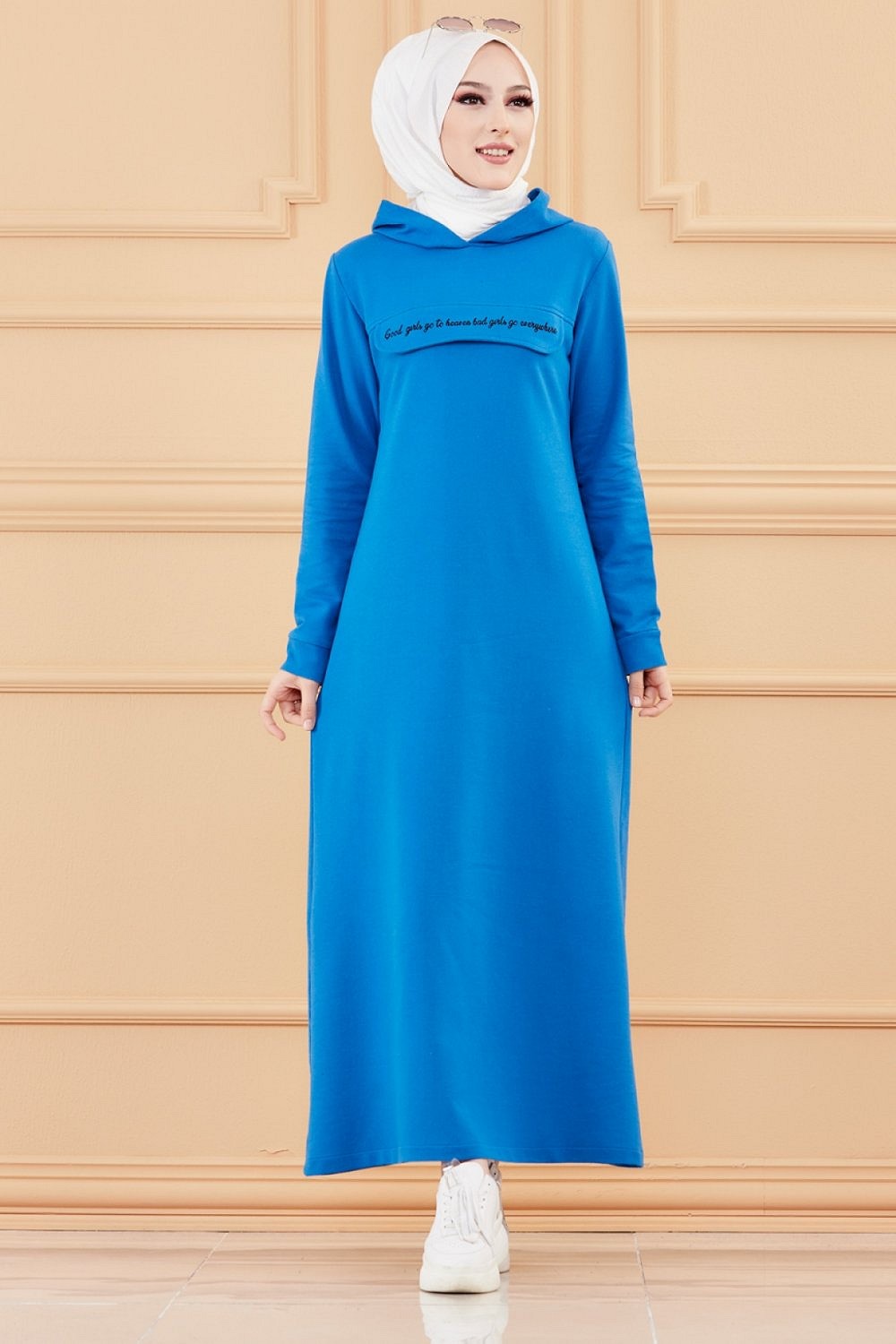 Robe longue style moderne avec capuche (Vetement hijab - Mode musulmane) - Couleur bleu