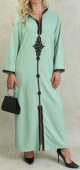 Djellaba marocaine à capuche brodée et décorée de strass - Couleur Vert clair - REF. 32388 (25.00 €)