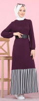 Robe longue bi-matière fluide pour femme (Vetement moderne musulmane) - Couleur aubergine - REF. 32517 (25.00 €) - En Promotion à 19.00 €