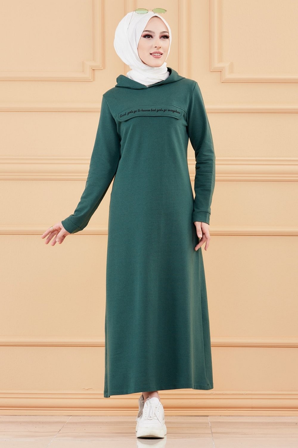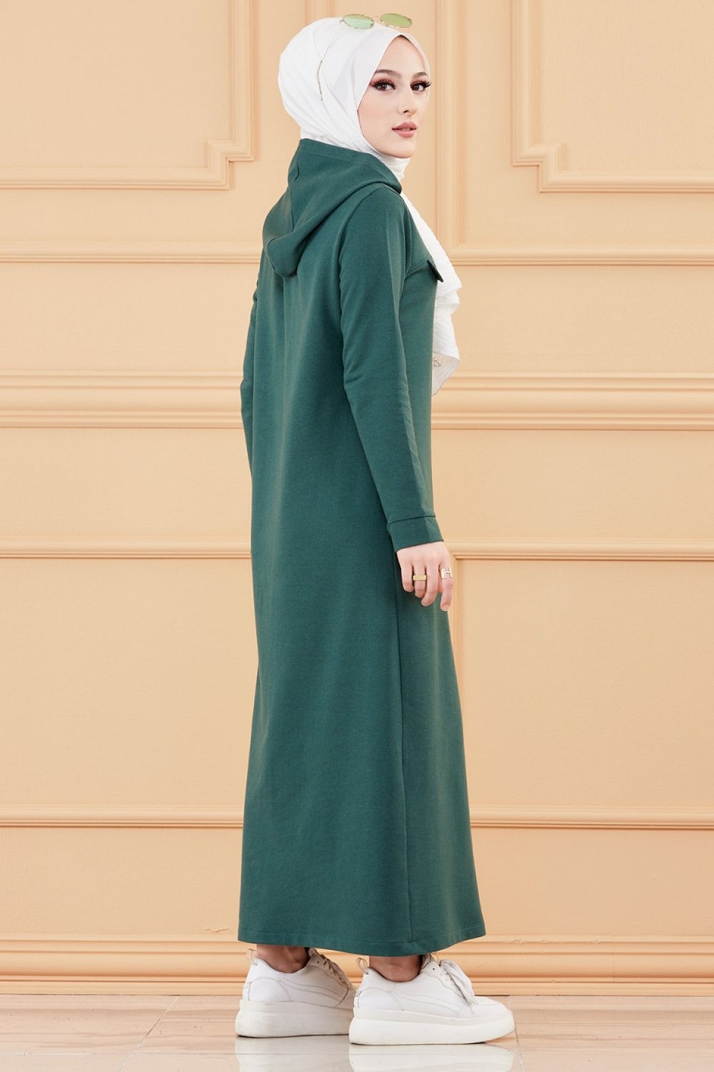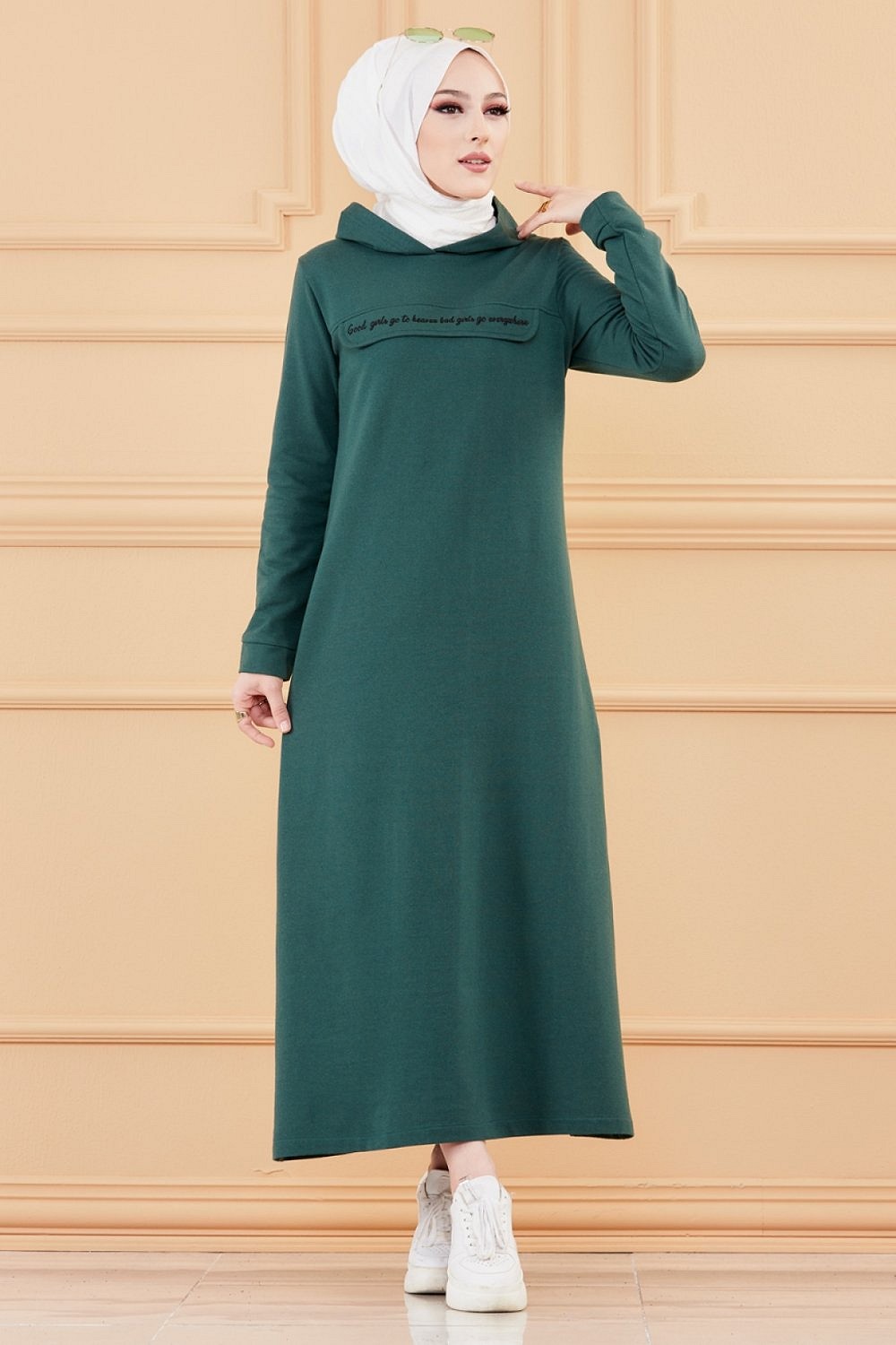 Robe avec capuche style moderne et sport (Vêtement adapté pour Hijab) - Couleur vert émeraude foncé - REF. 35838 (19.90 €)