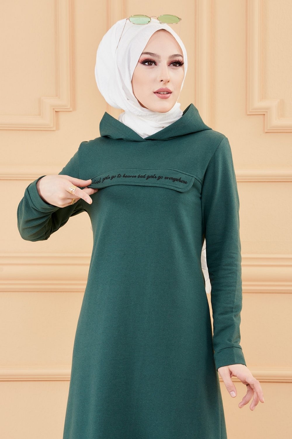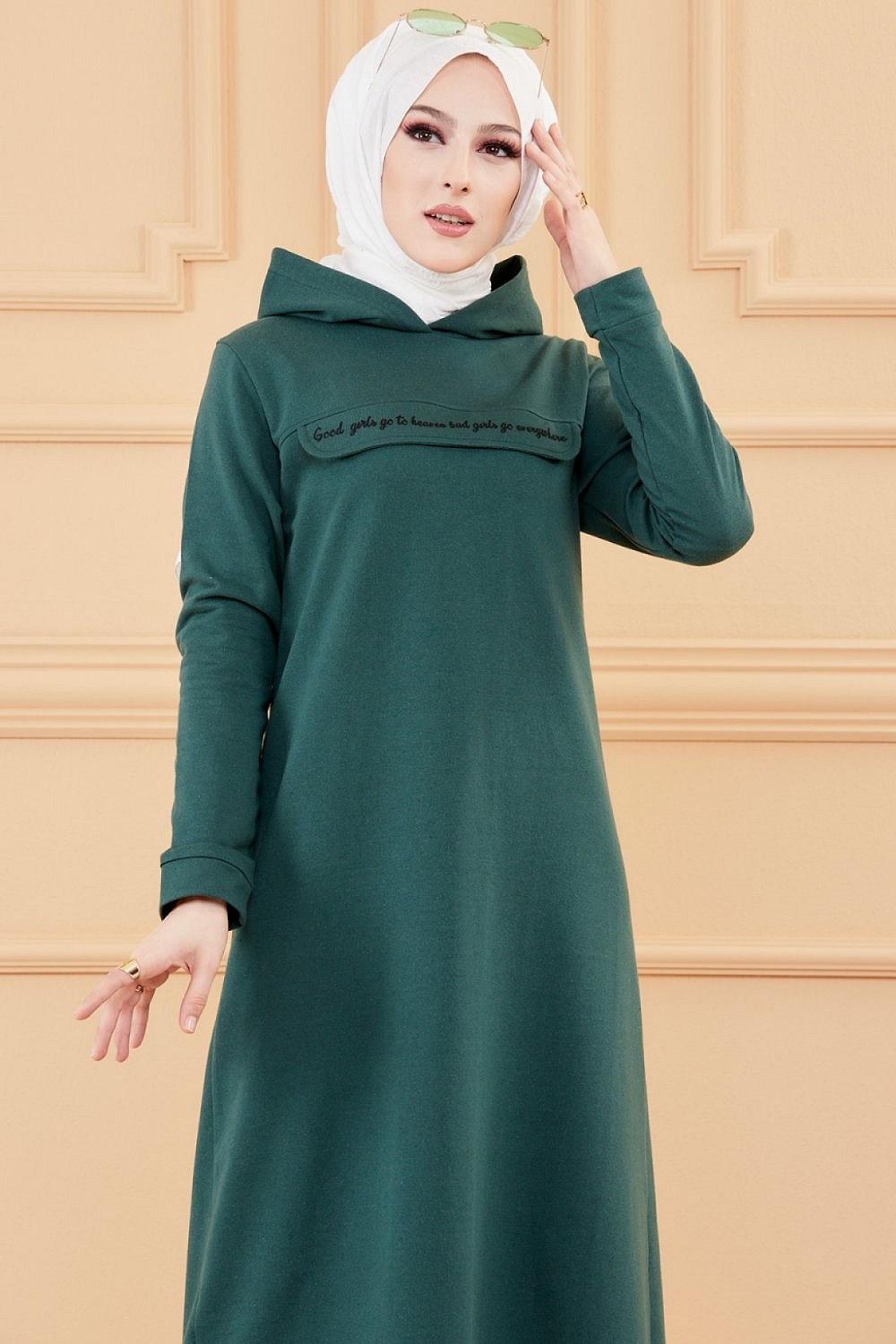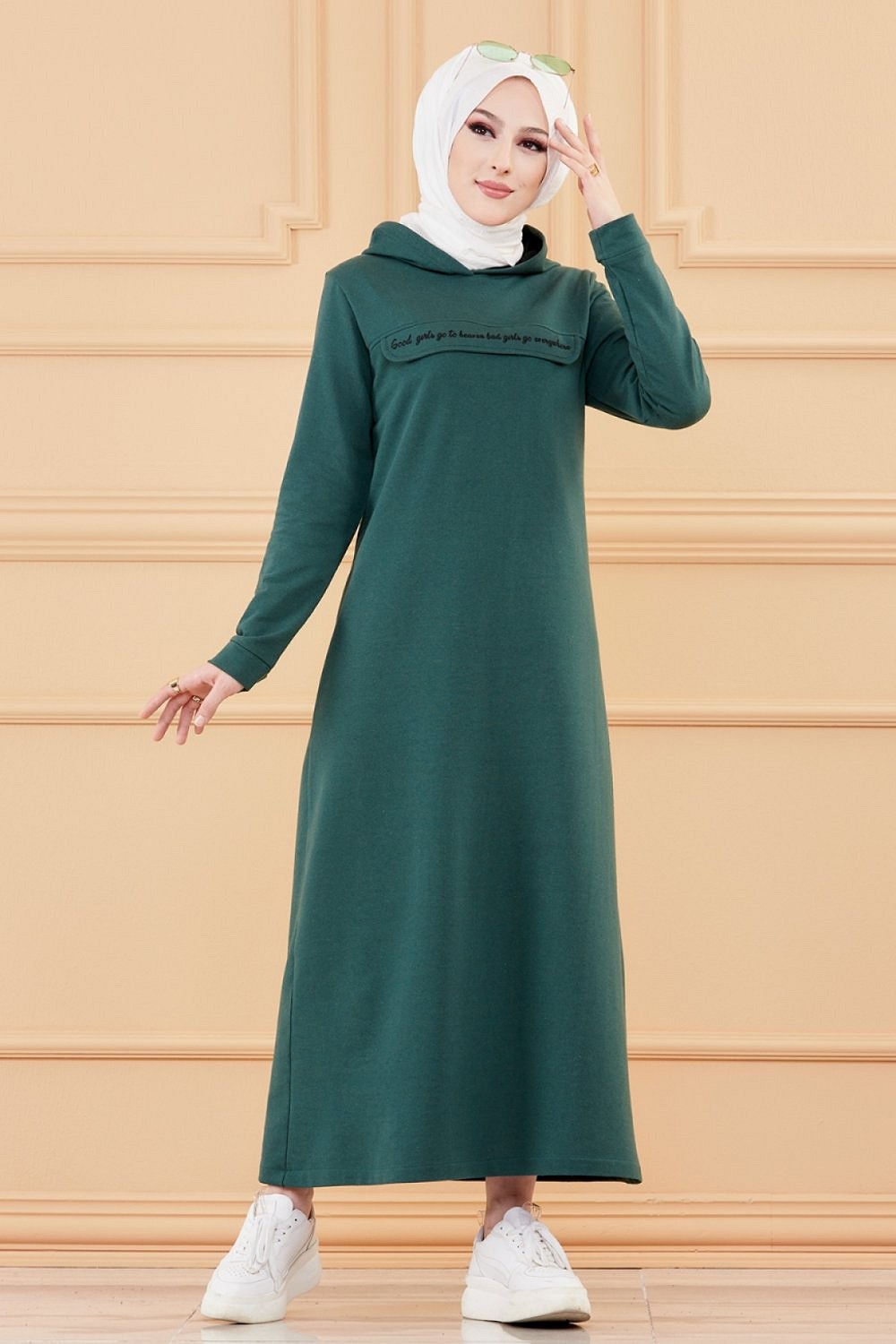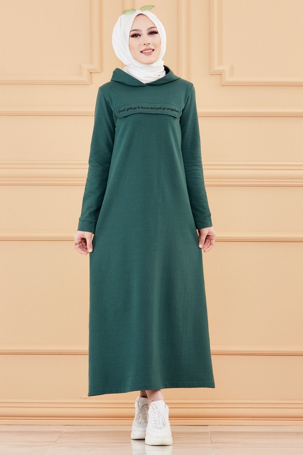 Robe avec capuche style moderne et sport (Vêtement adapté pour Hijab) - Couleur vert émeraude foncé - REF. 35838 (19.90 €)