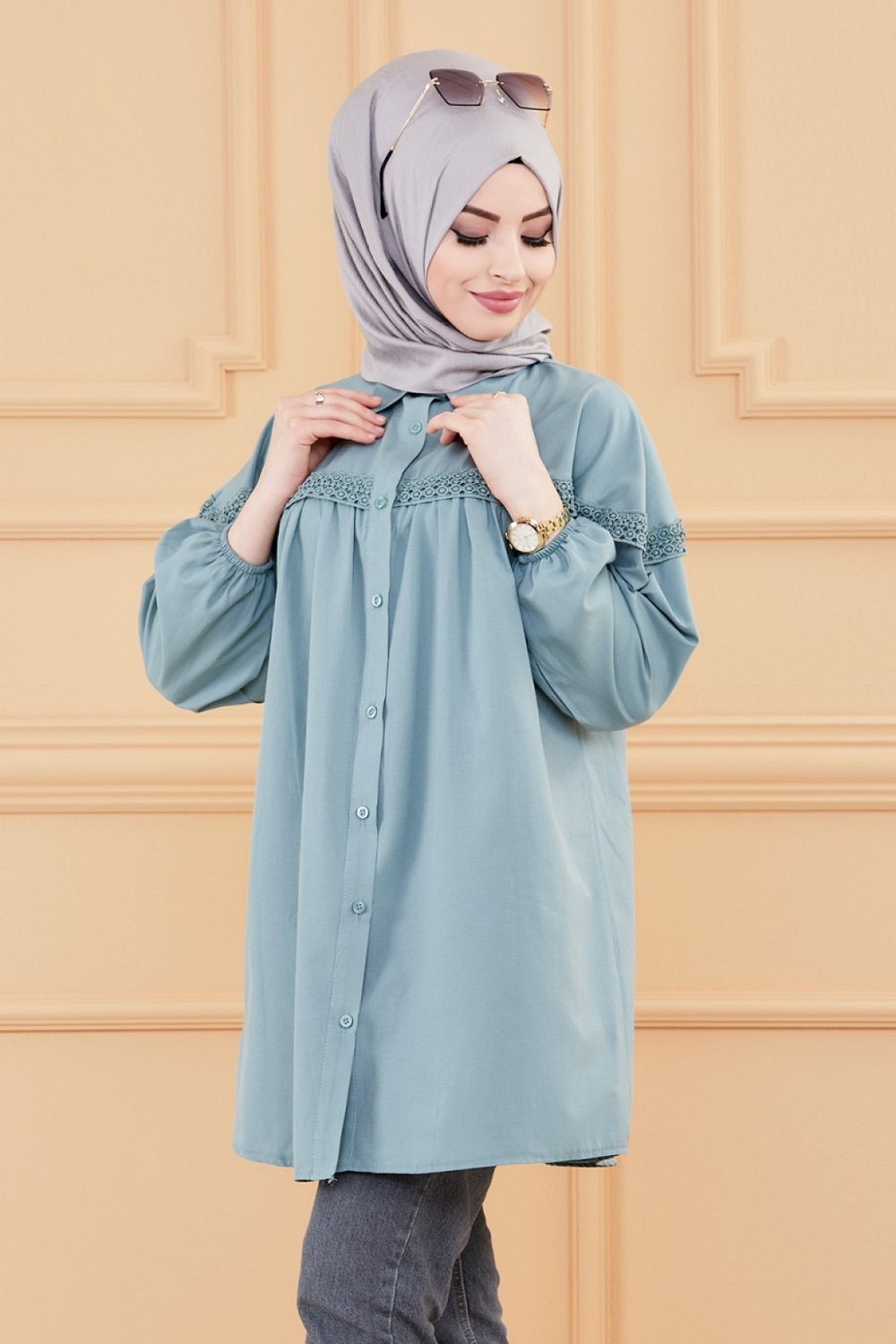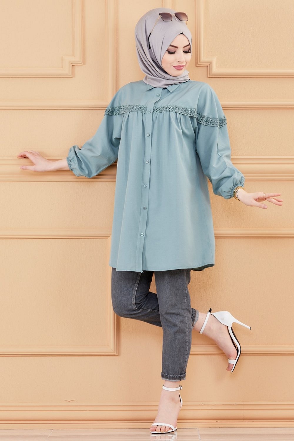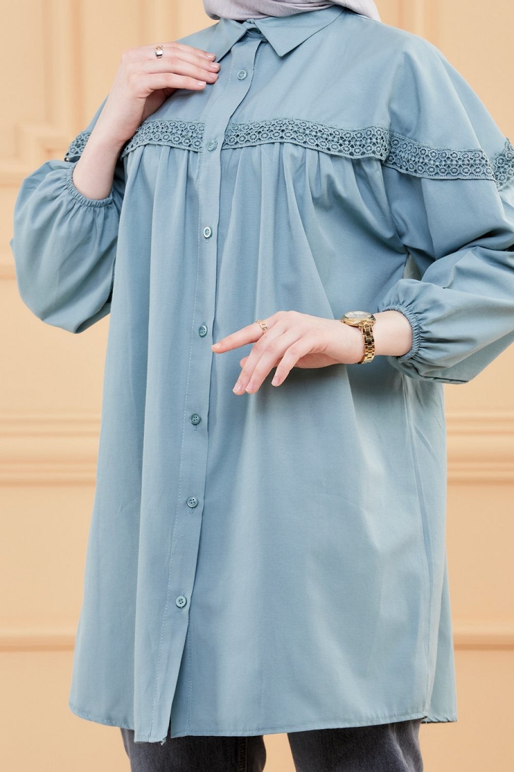 Tunique-Chemise en dentelle pour femme (Vetement habille pour hijab) - Couleur menthe