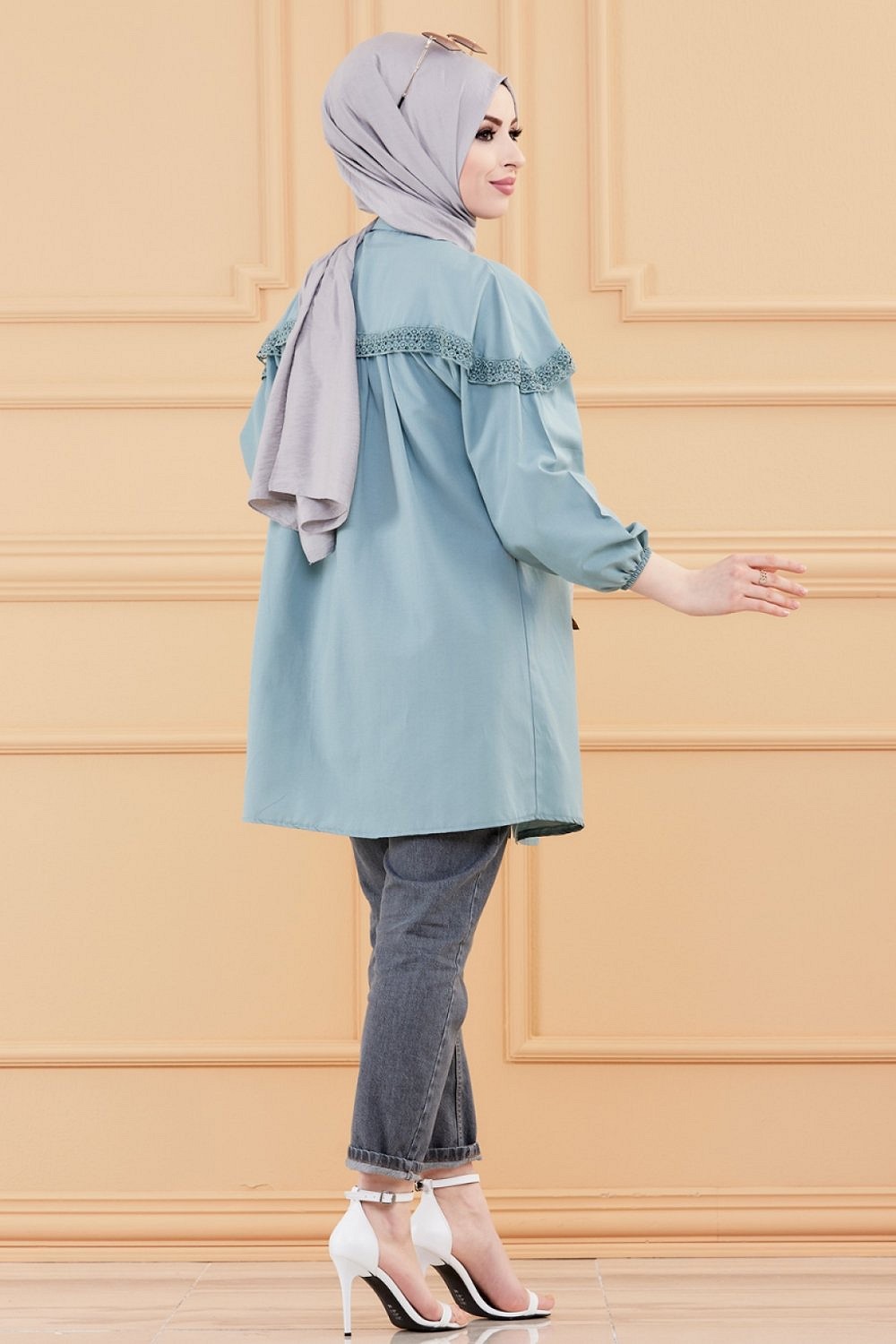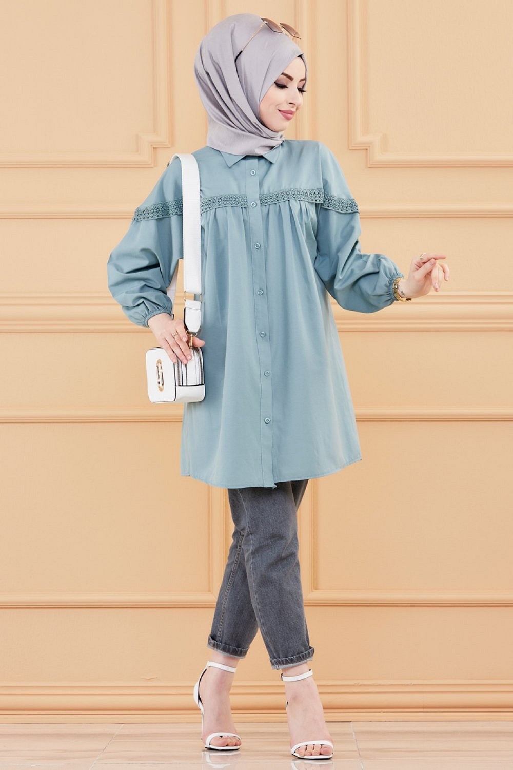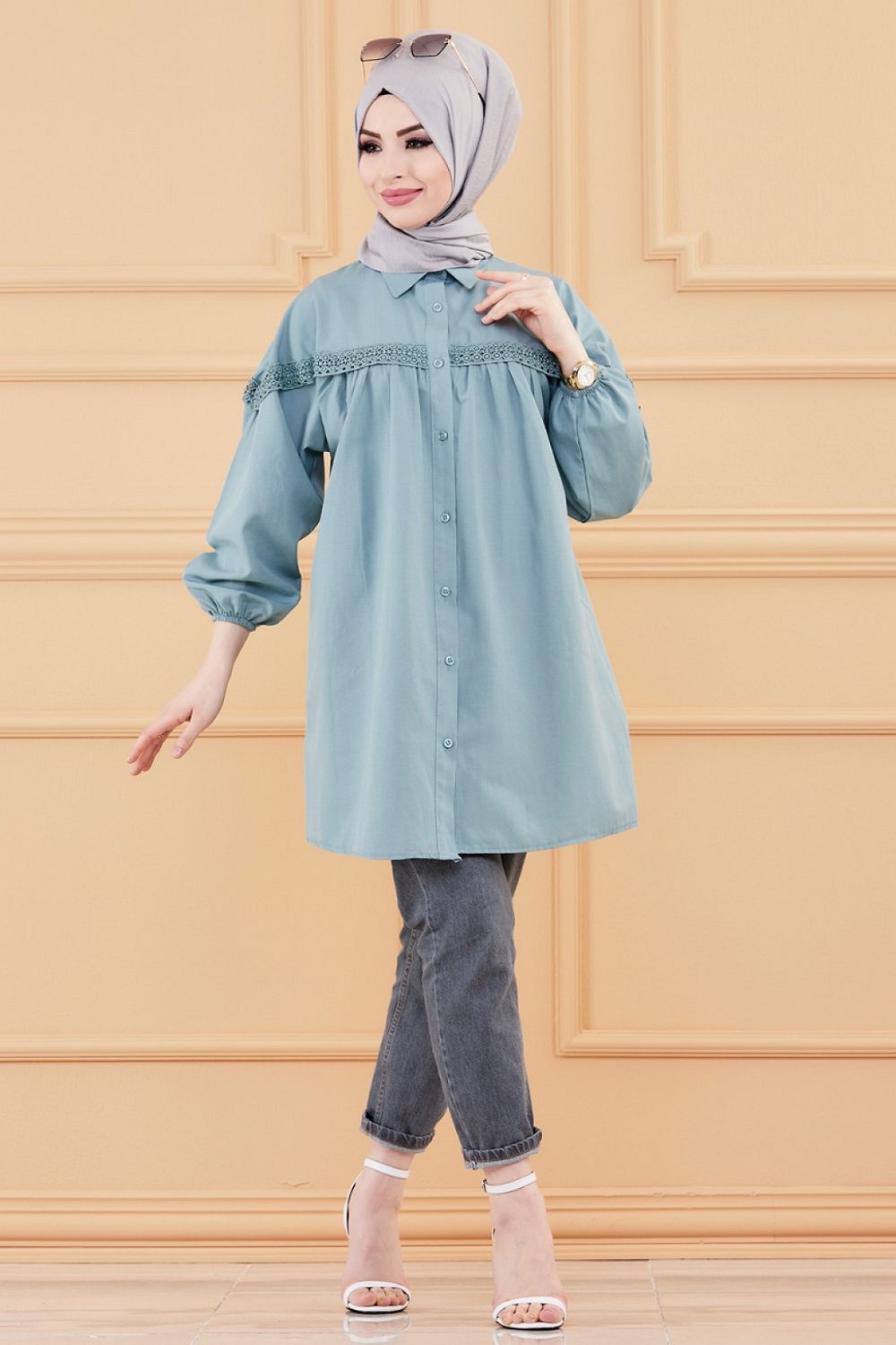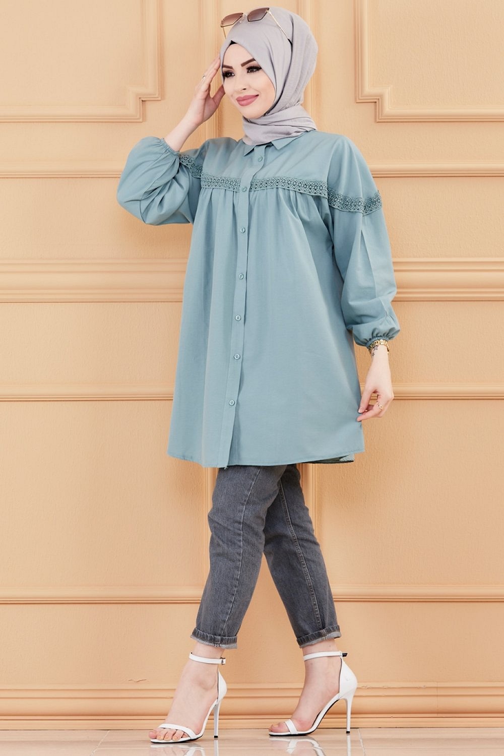 Tunique-Chemise en dentelle pour femme (Vetement habille pour hijab) - Couleur menthe