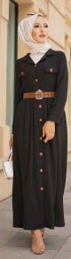 Robe longue casual boutonnée avec sa ceinture (Vetement hijab chic pour femme) - Couleur Noir - REF. 33929 (35.00 €)