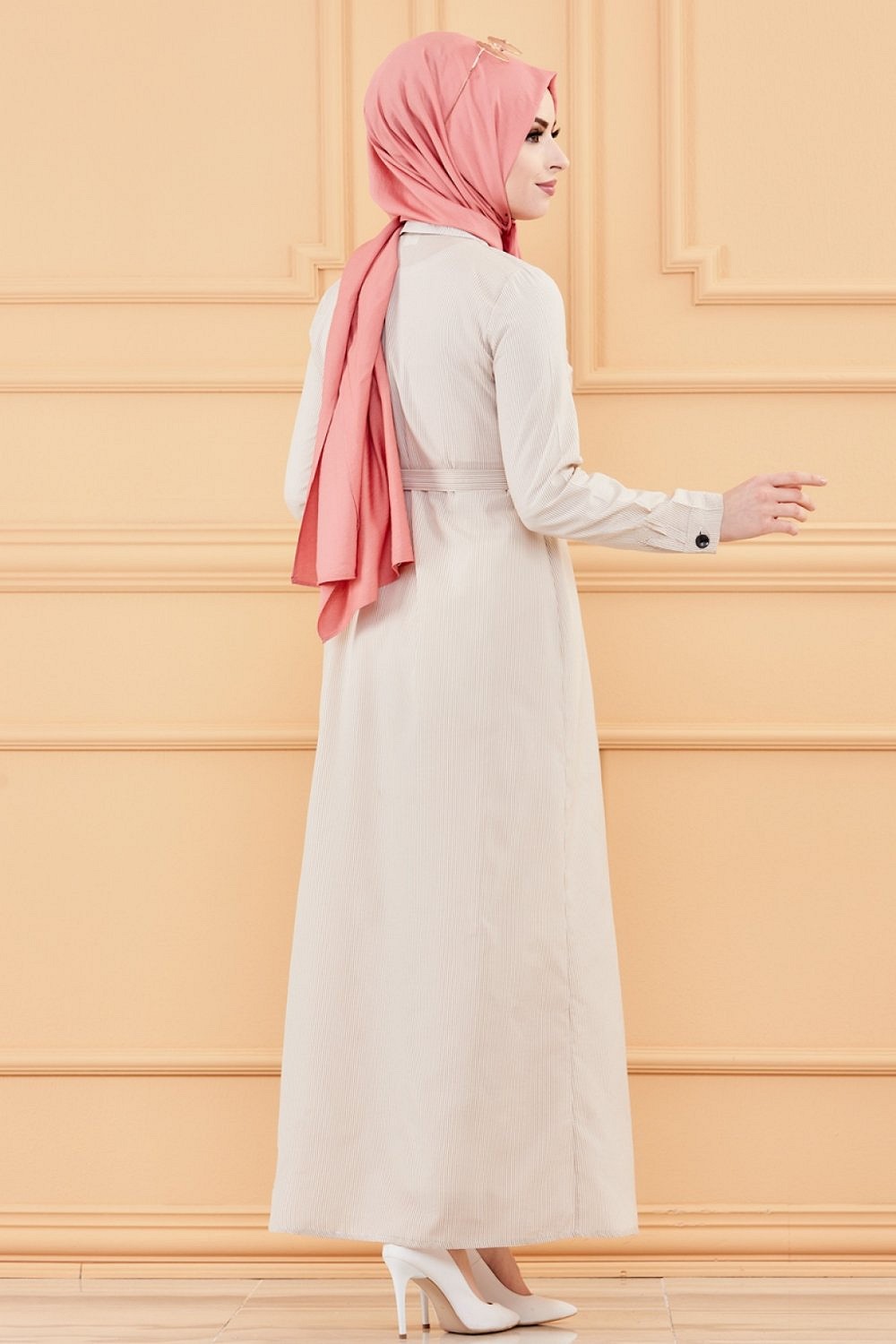 Robe chemise entièrement boutonnée avec ceinture couleur kaki - Marque Amelis Paris Gamme Modest Fashion - REF. 28154 (38.00 €) - En Promotion à 29.00 €