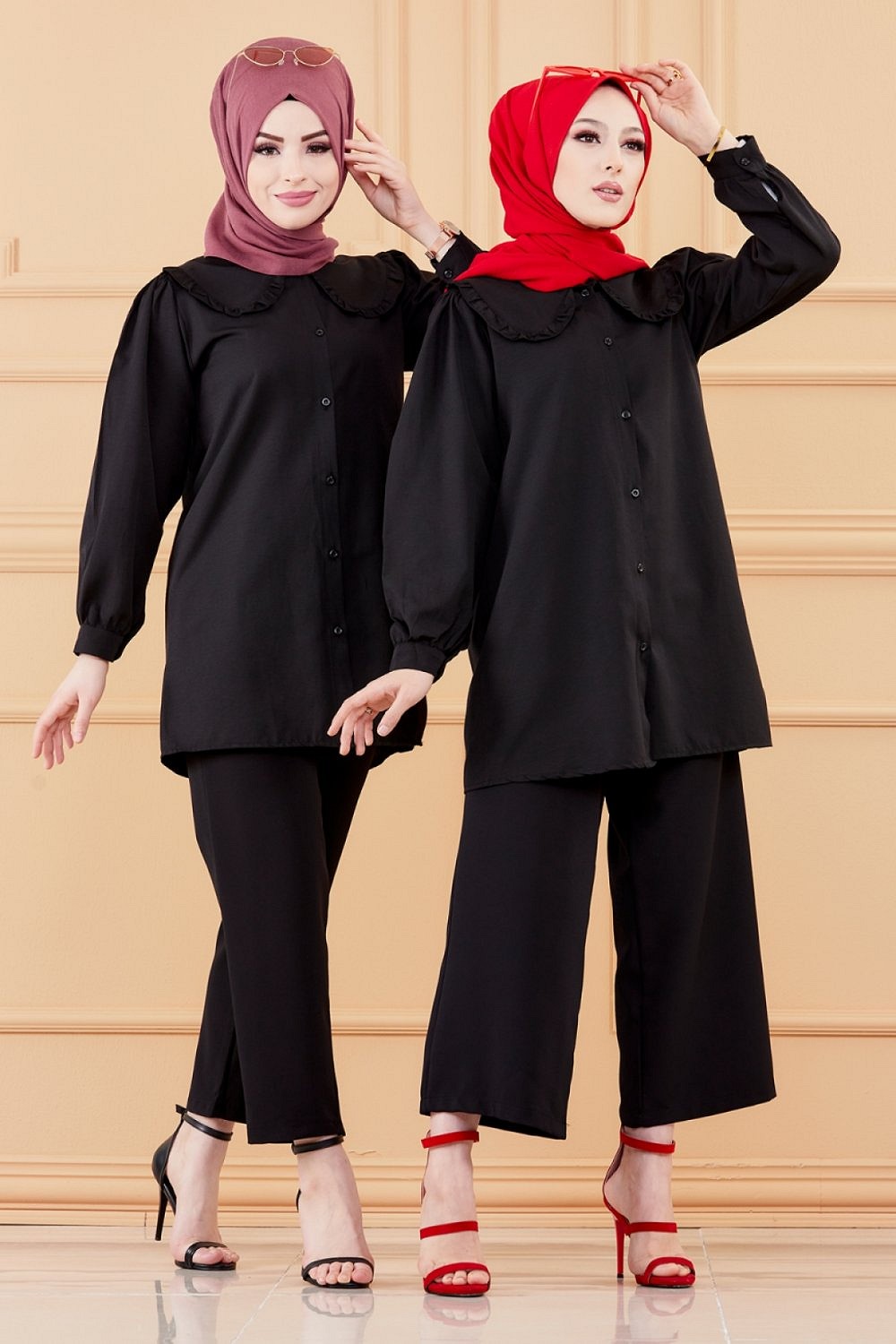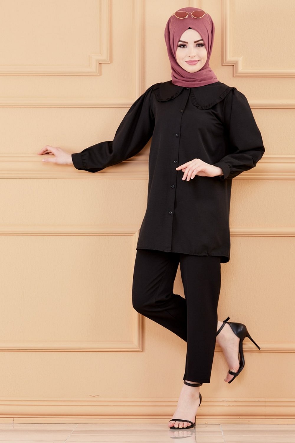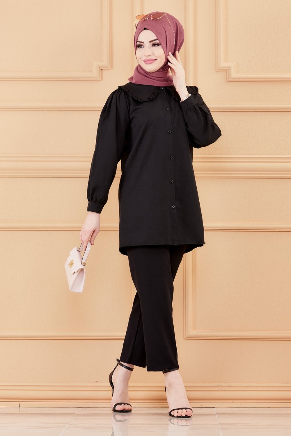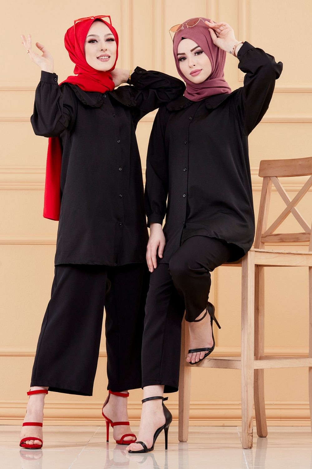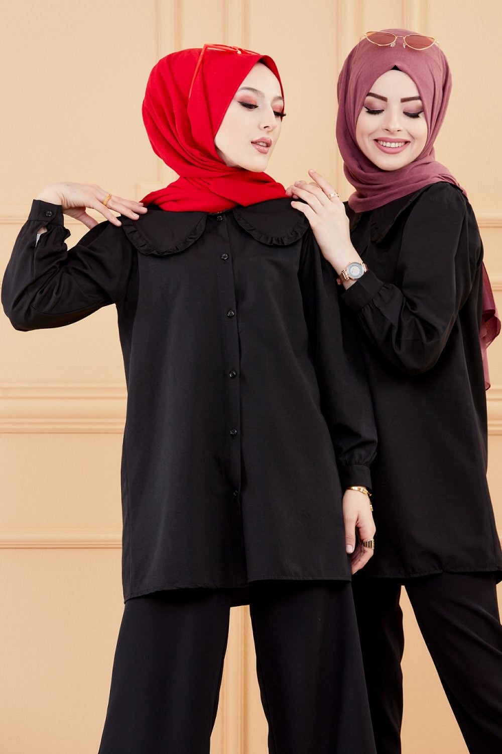 Tunique-chemise style classique pour femmes (Vetements Chic Modeles Hijab - Mode musulmane) - Couleur noir