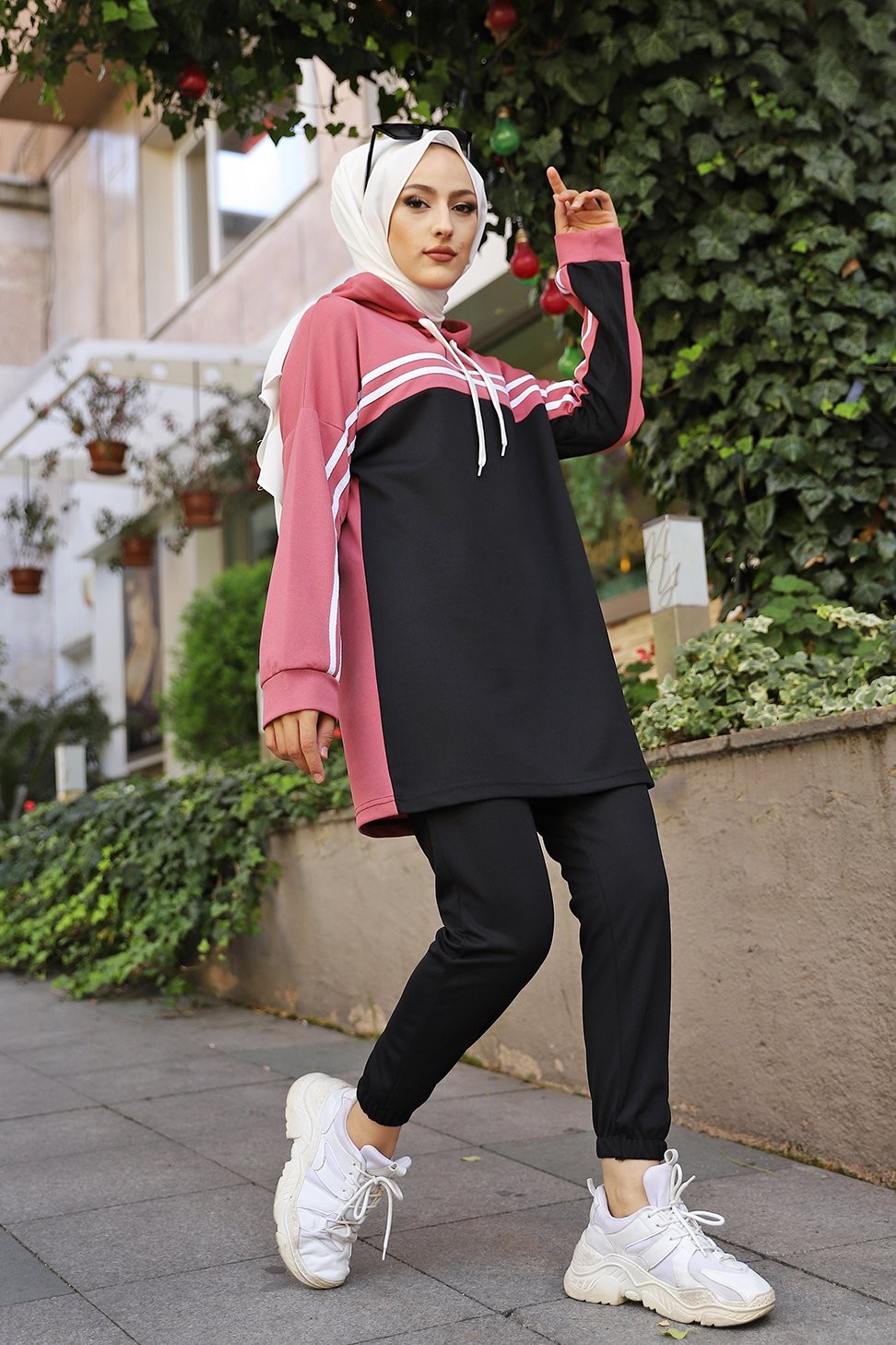 Survêtement femme (Tenue Décontractée et Sport pour Hijab) - Couleur noir et rose Vetement & Accessoire