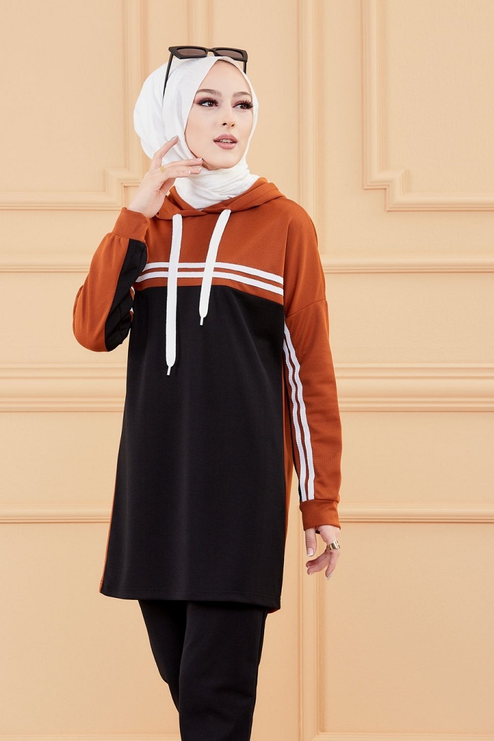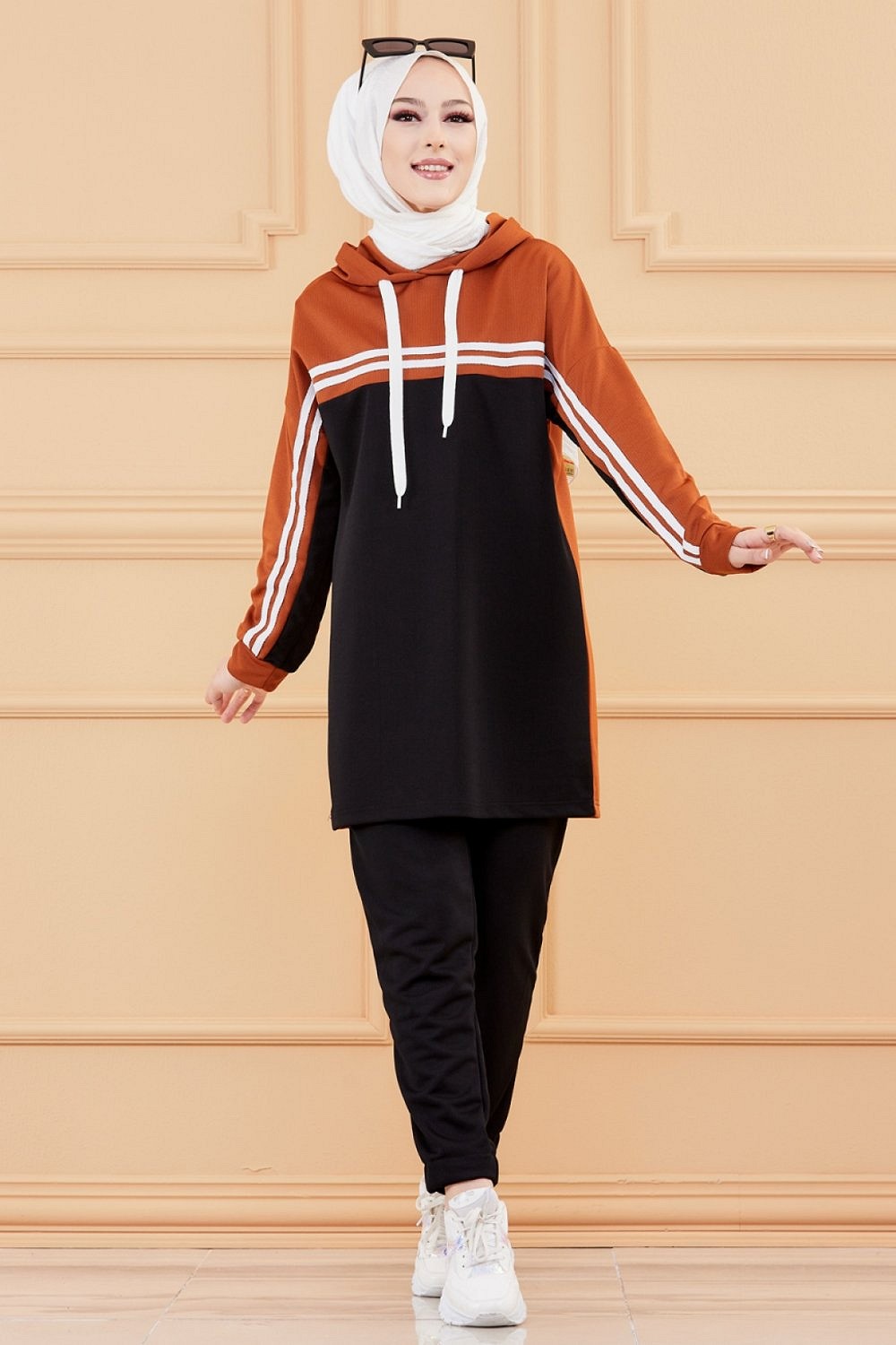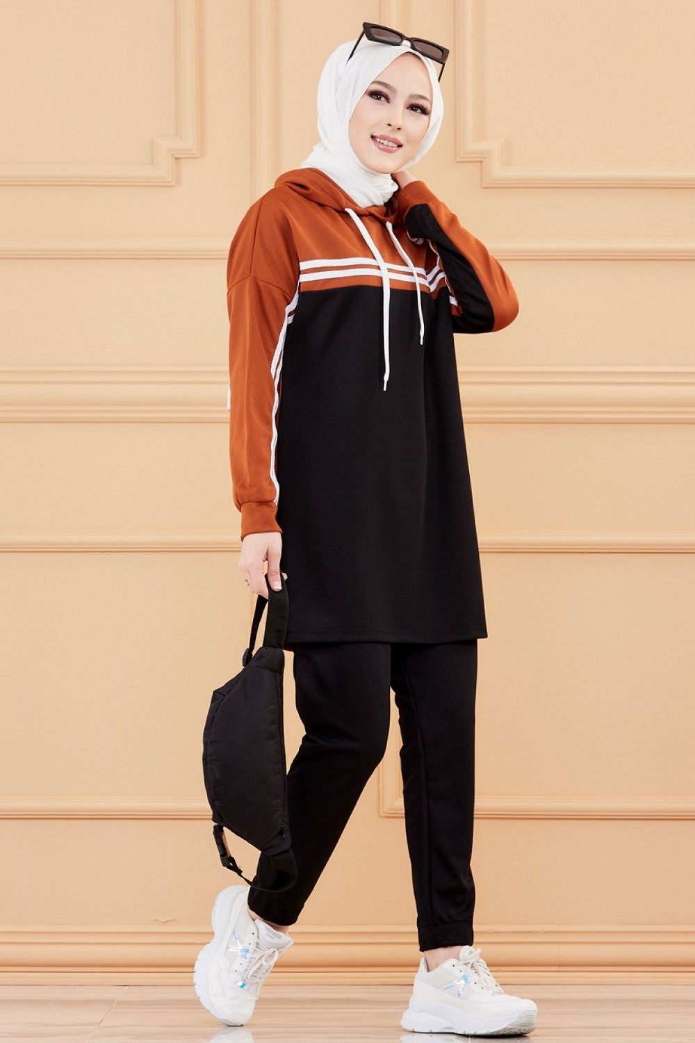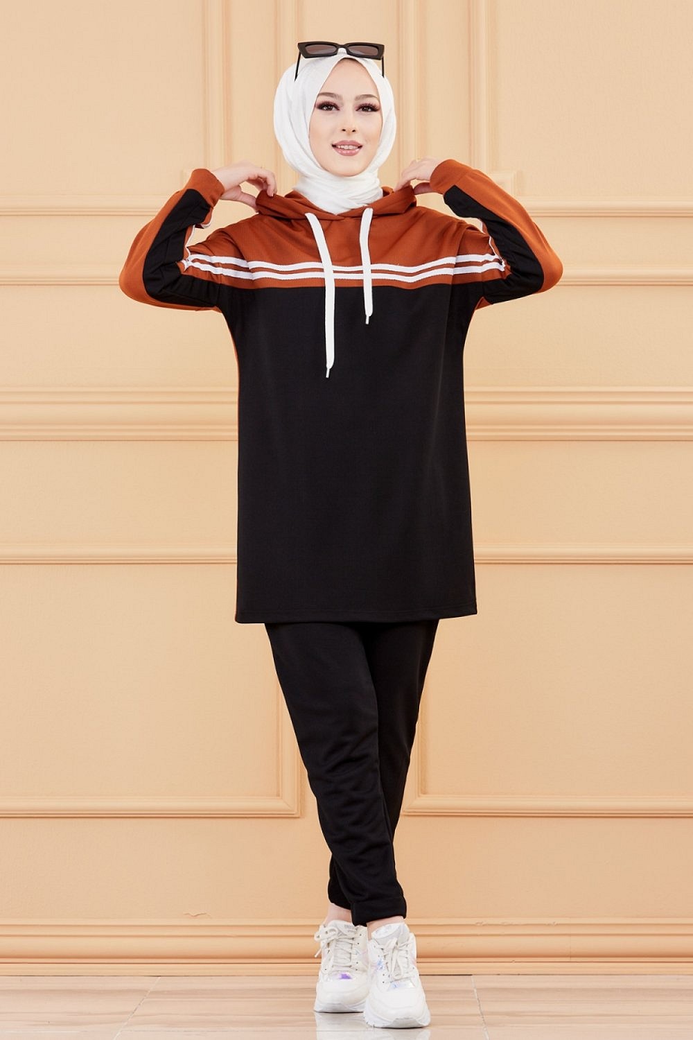 Survêtement femme (Tenue Décontractée et Sport pour Hijab) - Couleur noir et brique Vetement & Accessoire