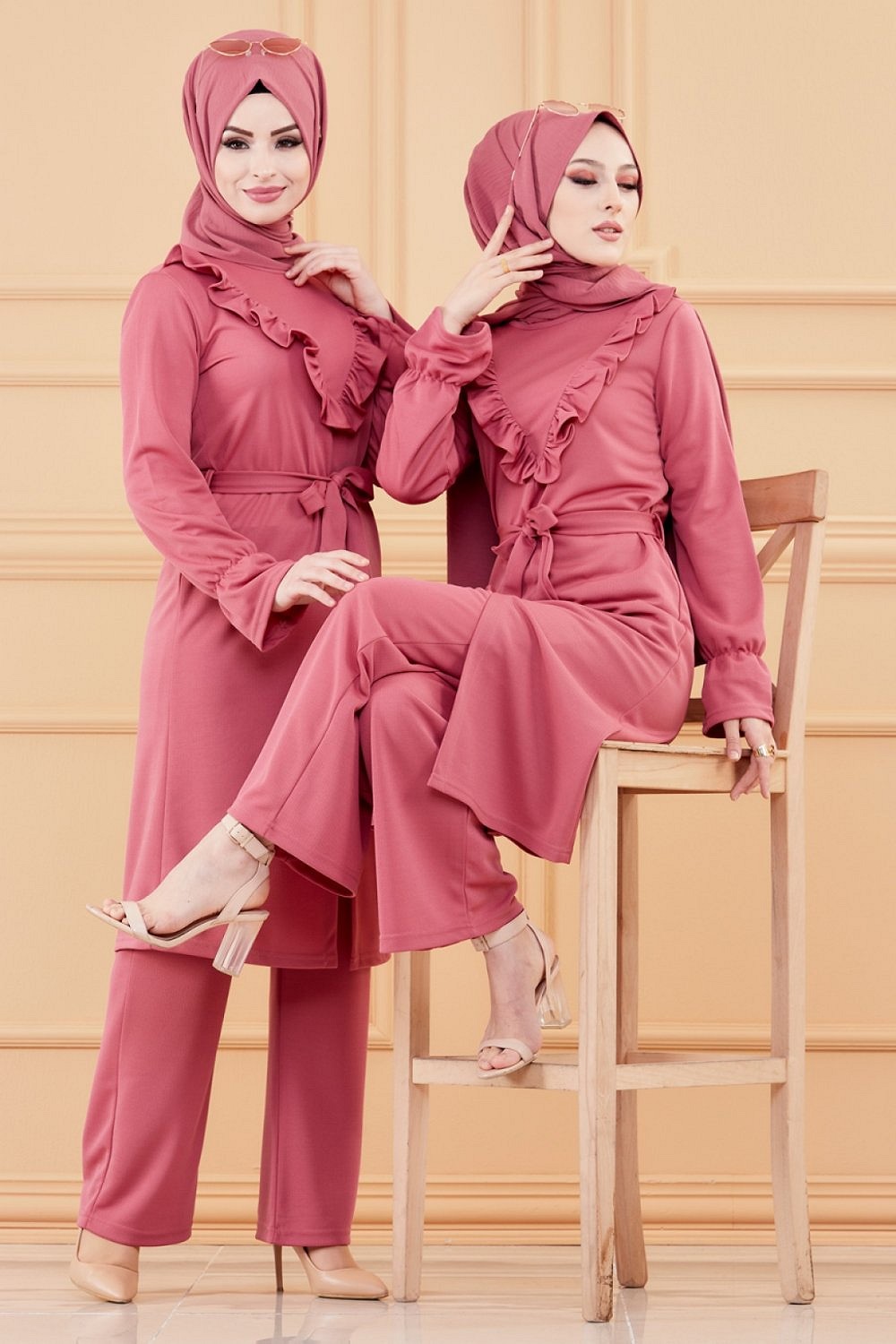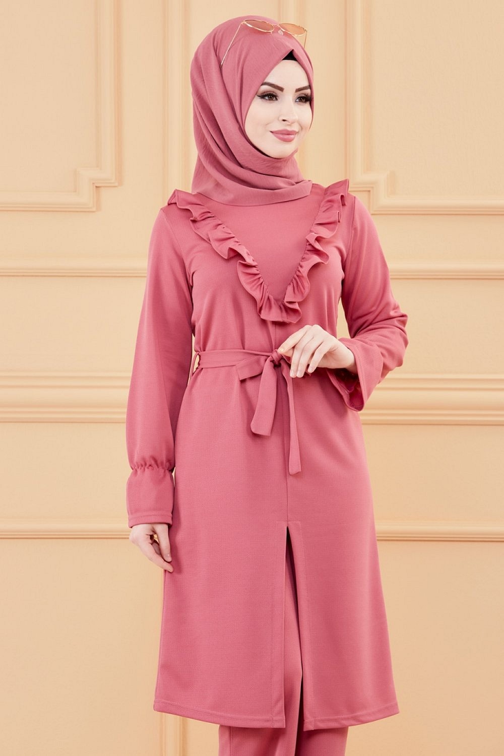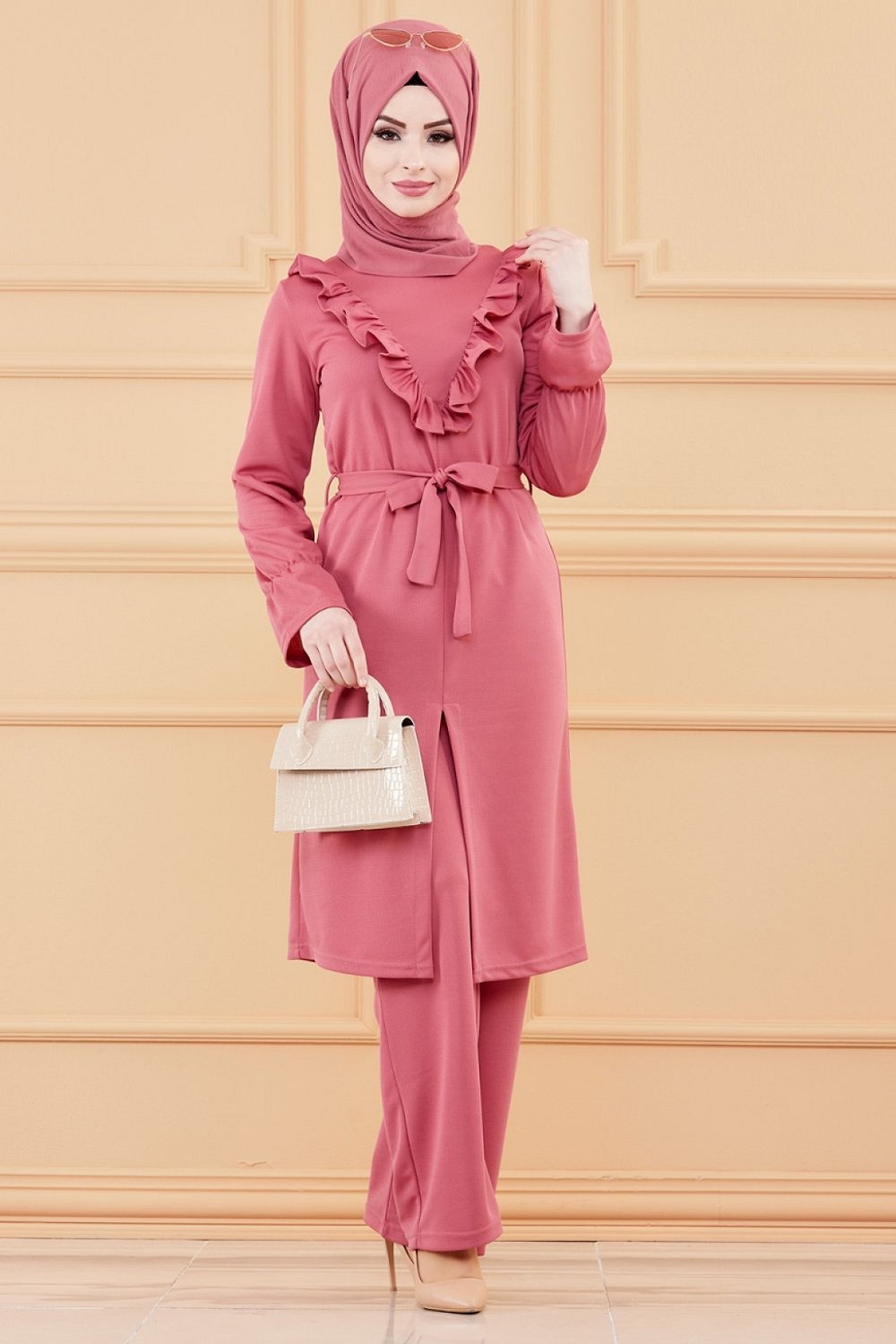 Ensemble classique deux pièces tunique et pantalon (Tenue mastoura pour femme musulmane) - Couleur rose Vetement & Accessoire