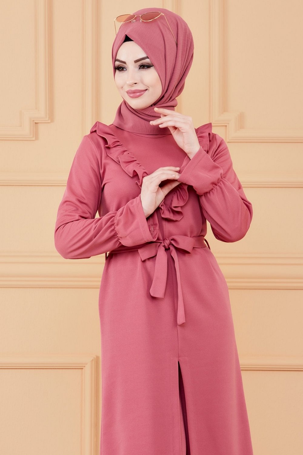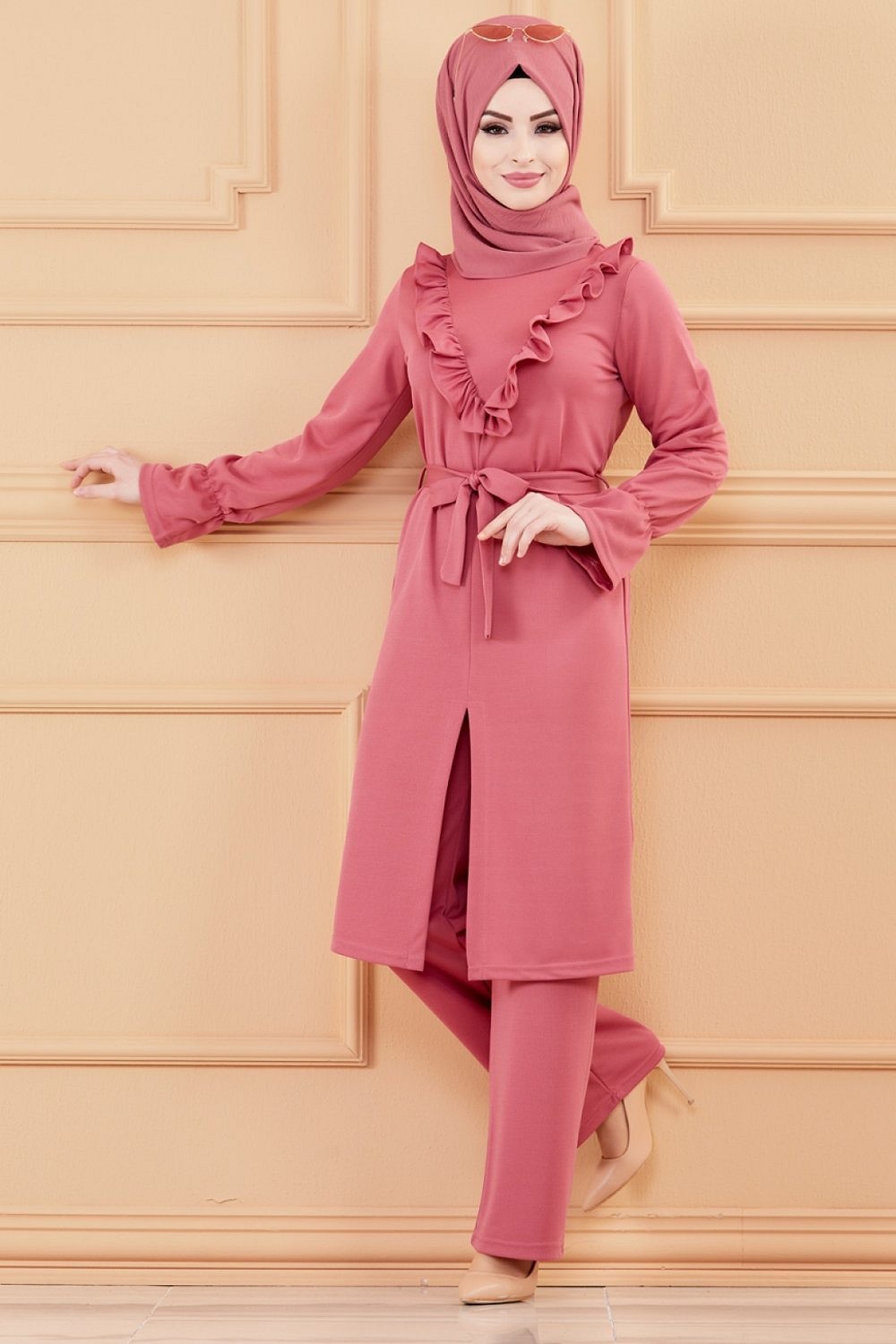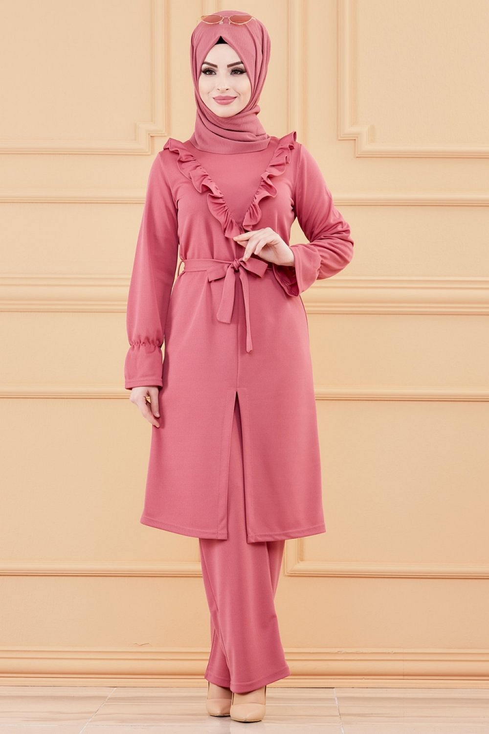 Ensemble classique deux pièces tunique et pantalon (Tenue mastoura pour femme musulmane) - Couleur rose Vetement & Accessoire