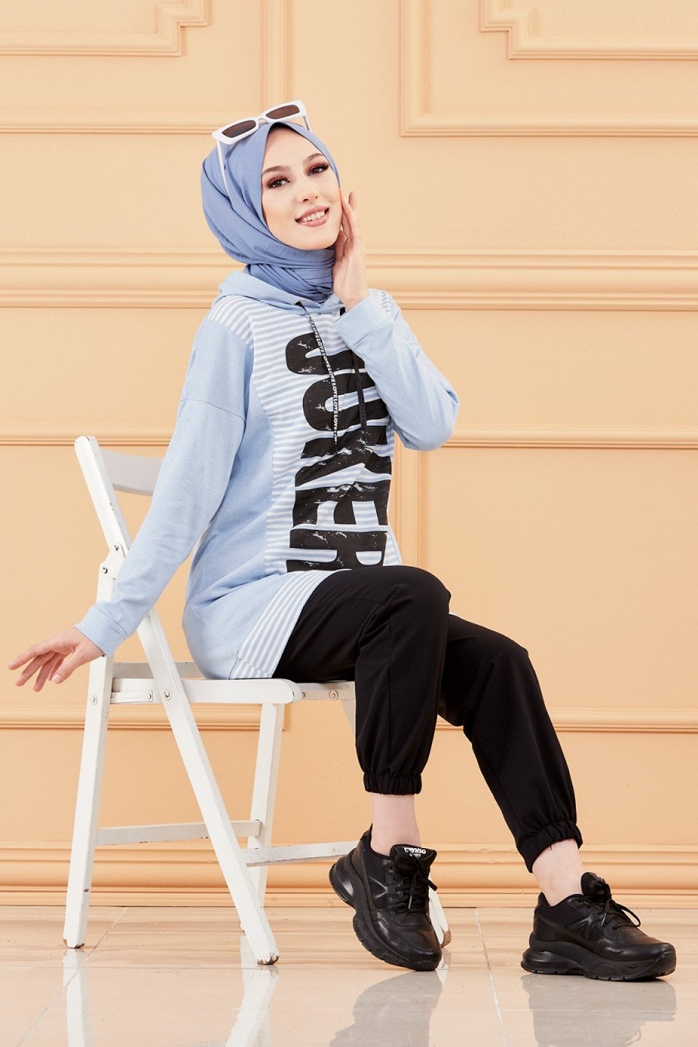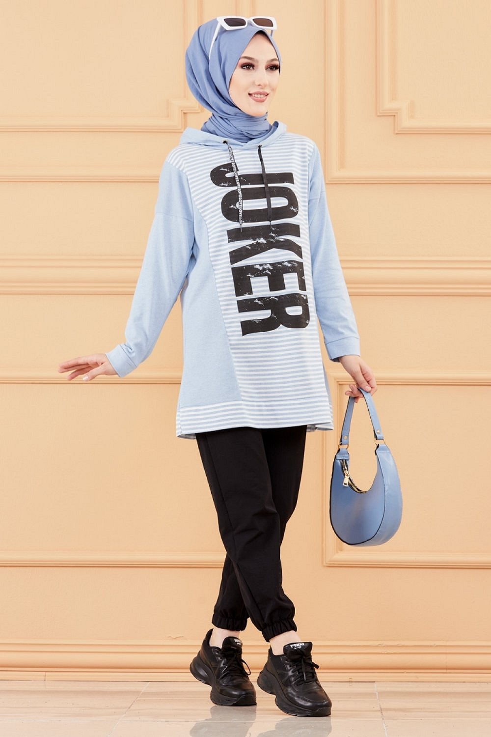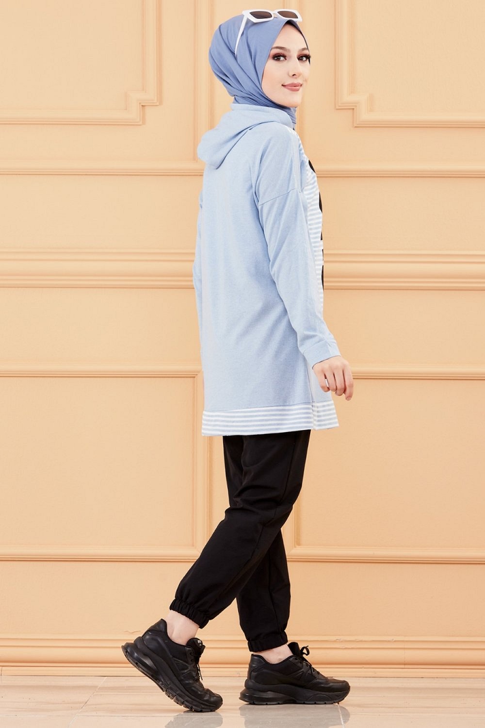 Tunique avec capuche (Tenue style Sportswear pour femme musulmane) - Couleur bleu indigo - REF. 37470 (28.00 €)