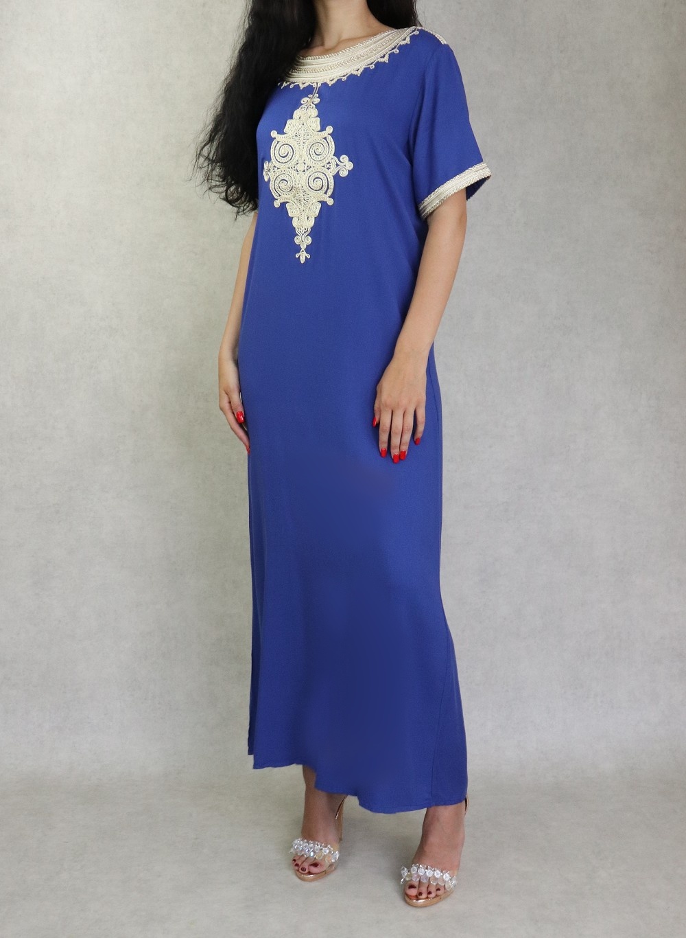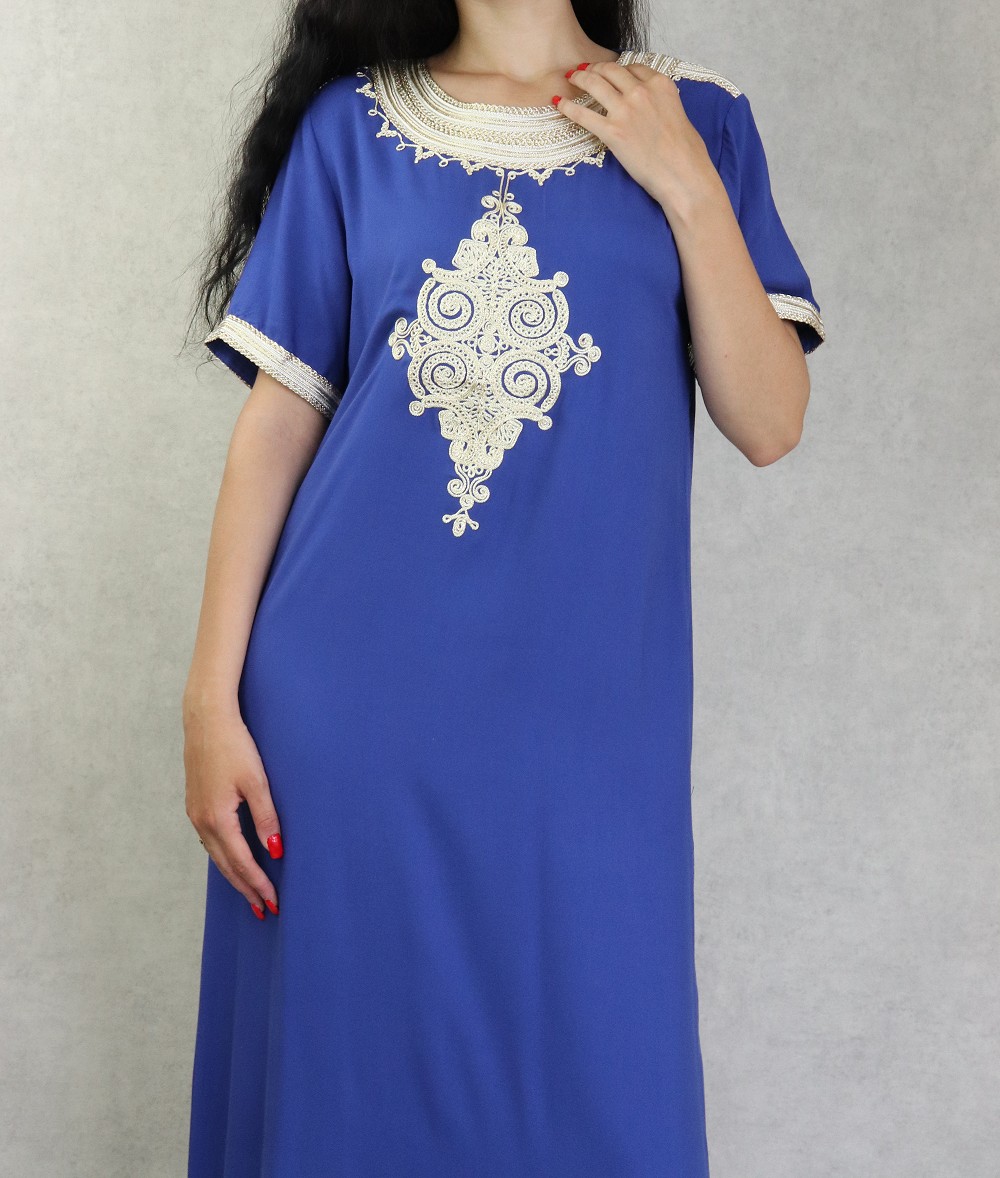 Robe tunisienne manches courtes avec broderies - Couleur Bleu roi