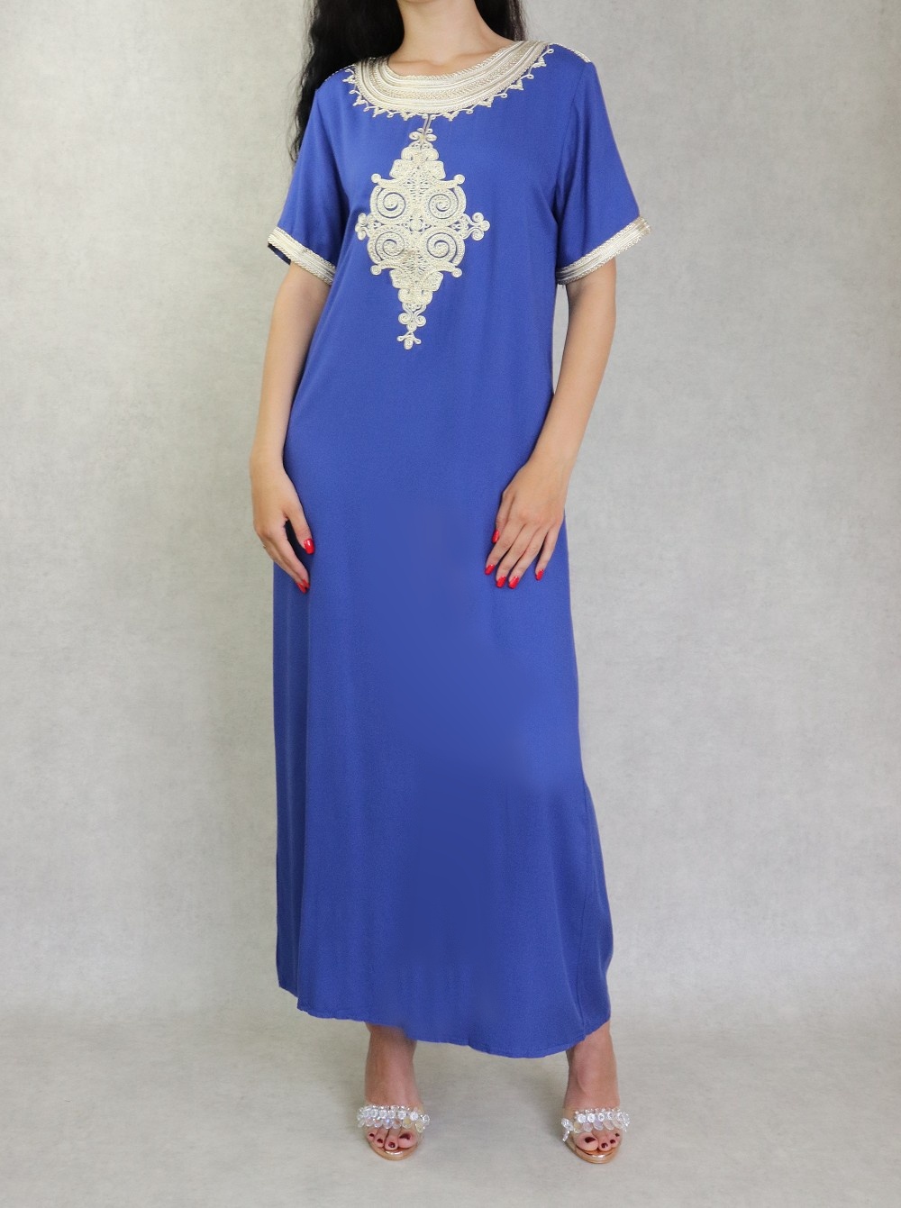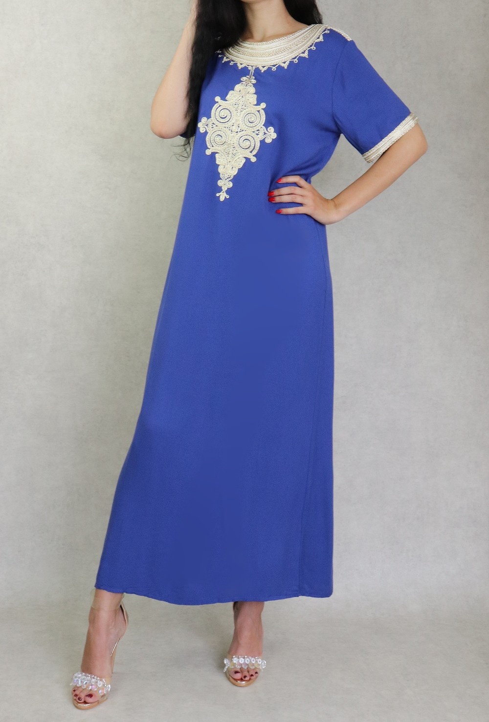 Robe tunisienne manches courtes avec broderies - Couleur Bleu roi Vetement & Accessoire