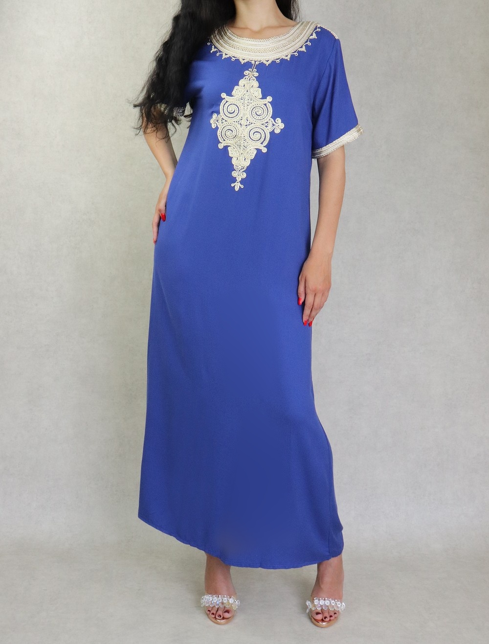 Robe orientale longue brodée manches courtes (Plusieurs couleurs disponibles) - REF. 33026 (29.00 €)