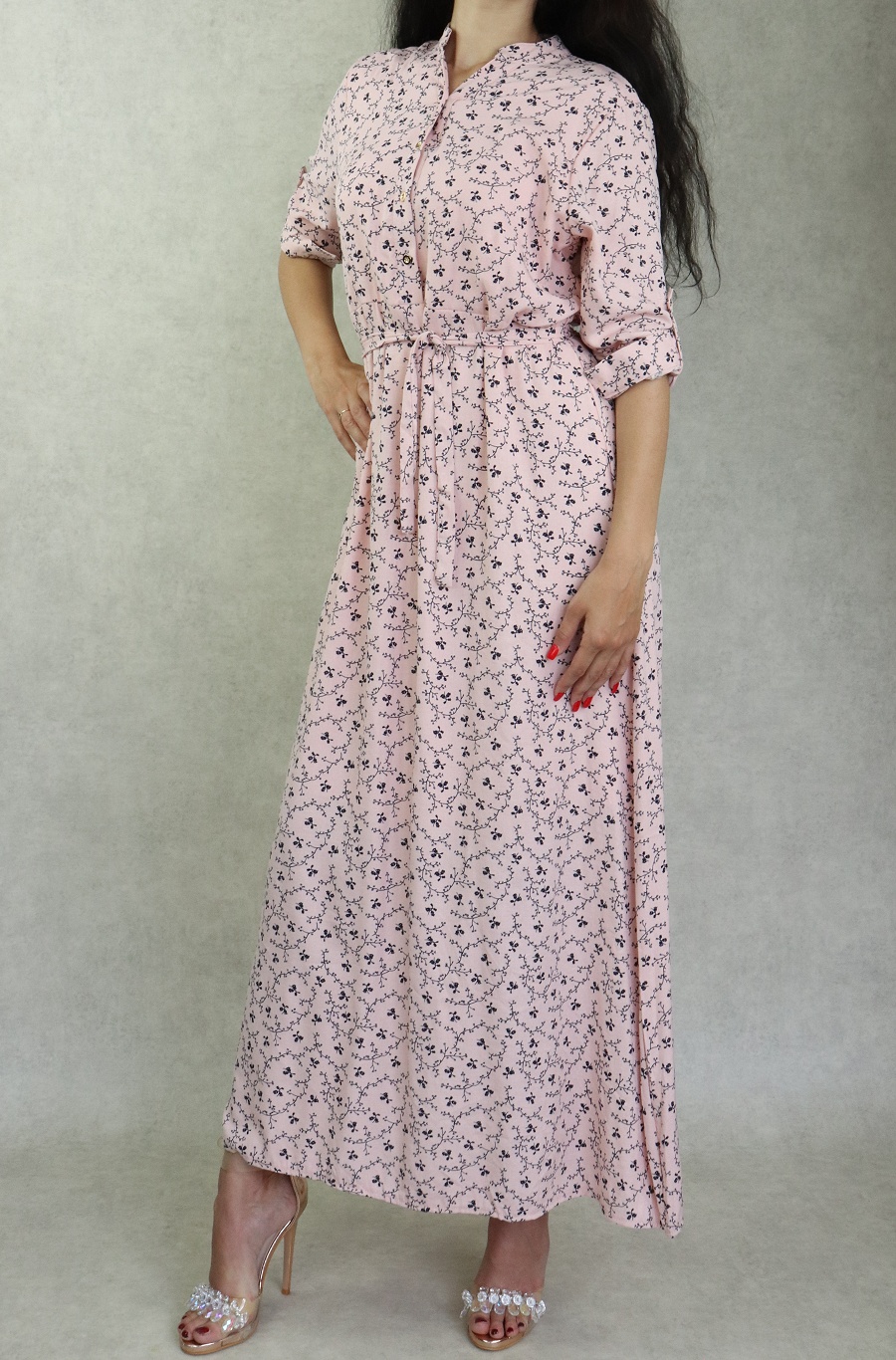 Robe longue casual col chemise pour femmes - Couleur Vieux rose - REF. 31686 (35.00 €)