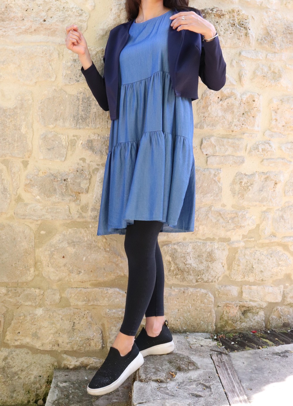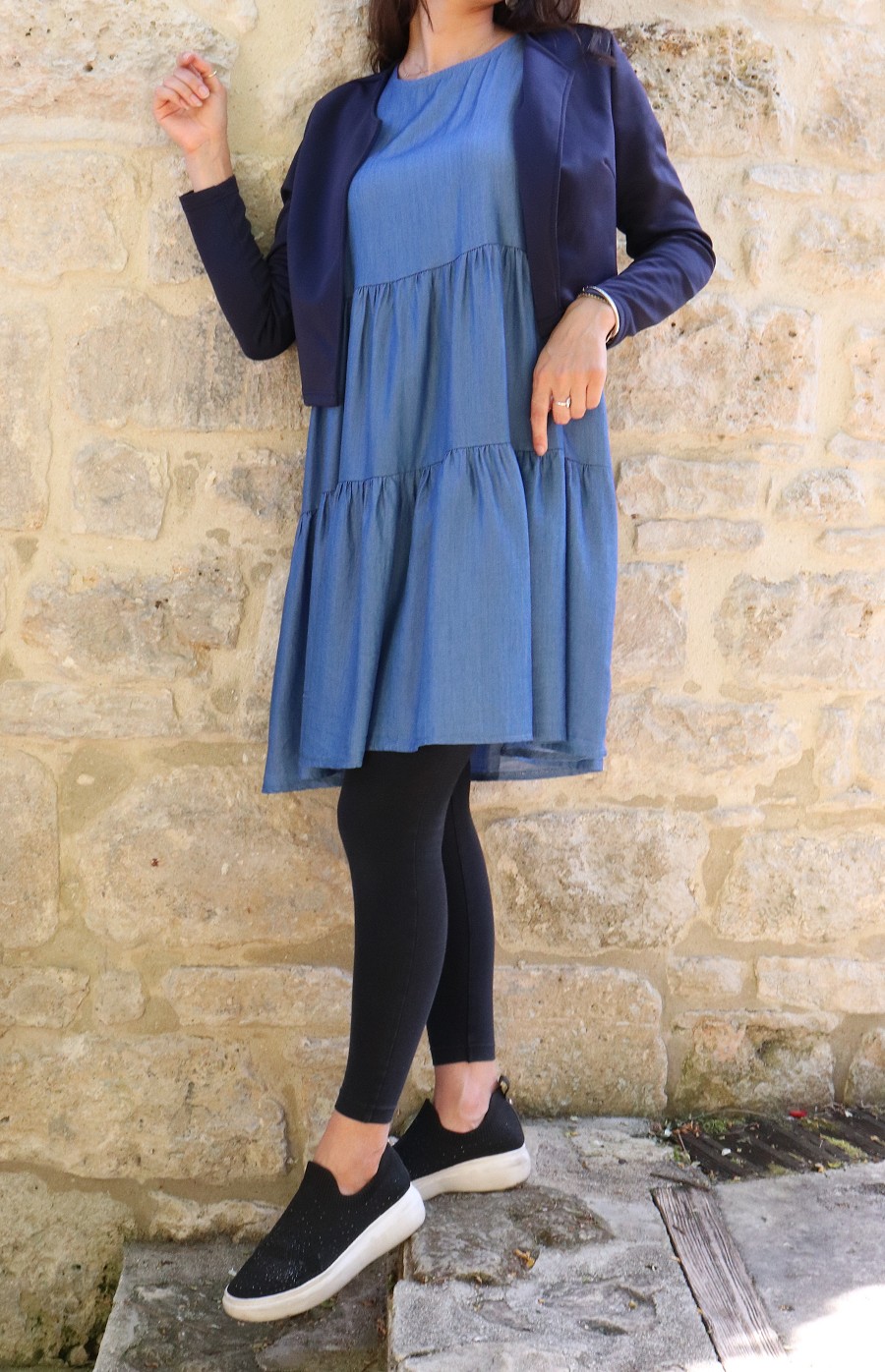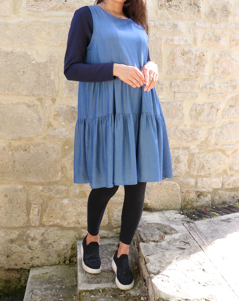 Tunique - Robe courte à volant couleur unie bleu jean Vetement & Accessoire
