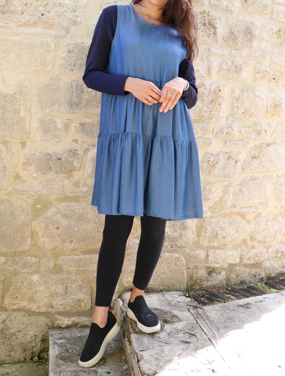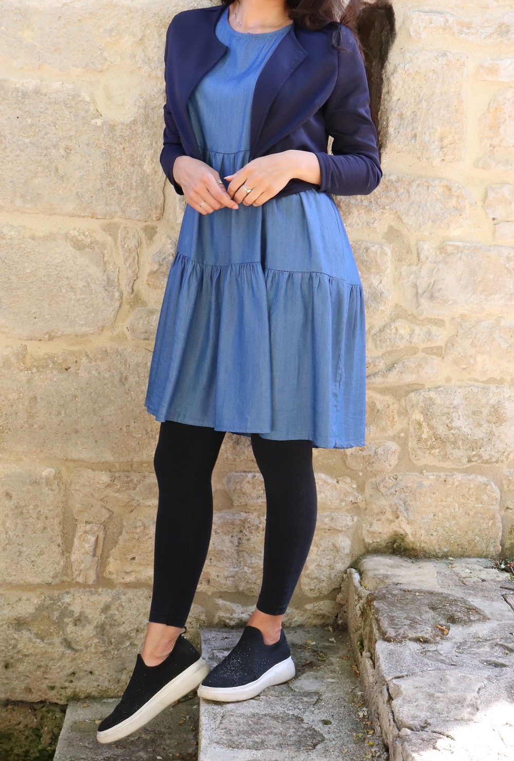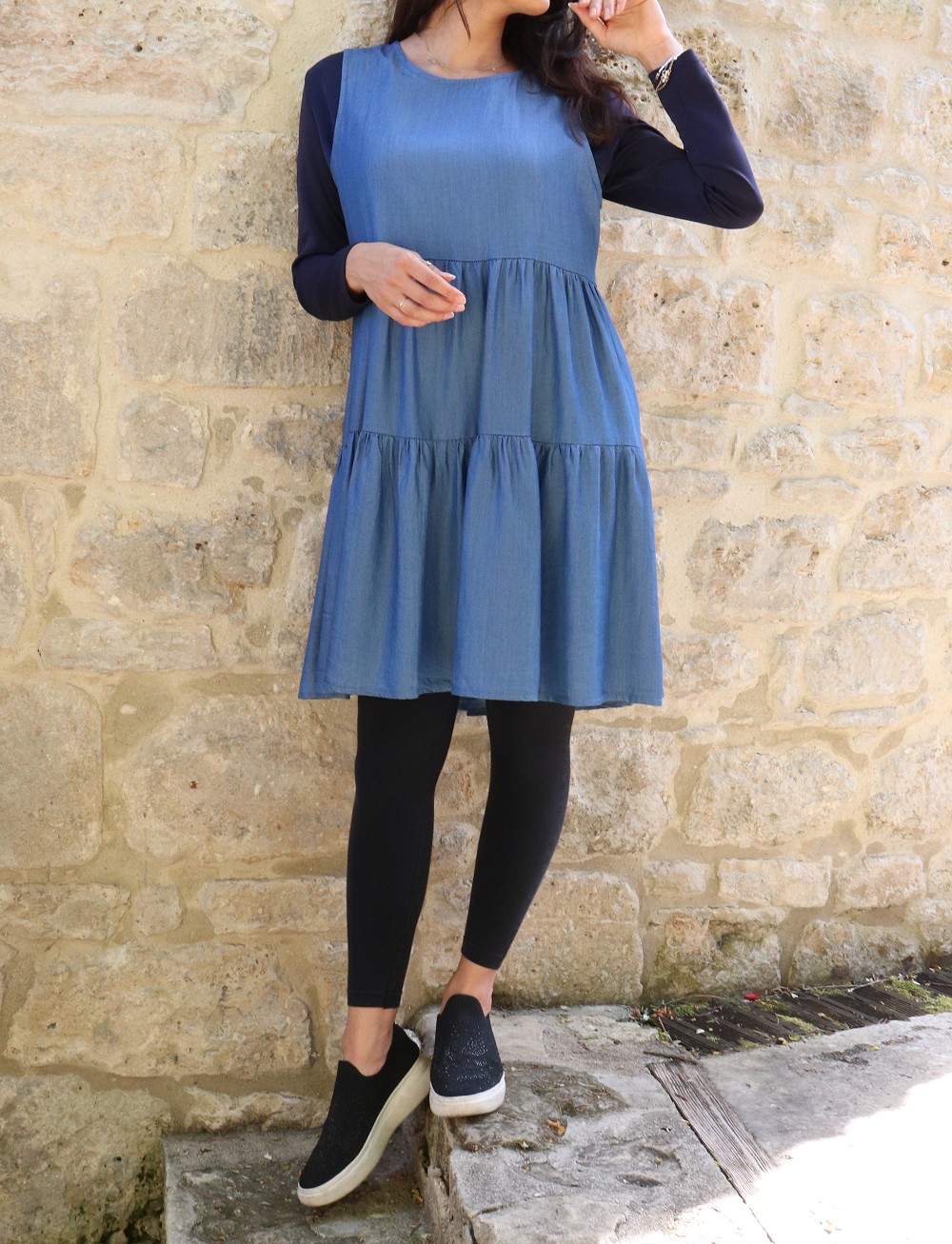 Tunique - Robe courte à volant couleur unie bleu jean Vetement & Accessoire
