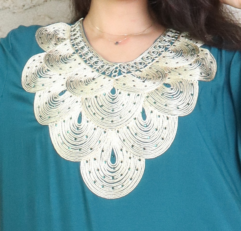 Robe orientale longue avec borderies pour femme - Couleur bleu turquoise - REF. 37668 (19.90 €)