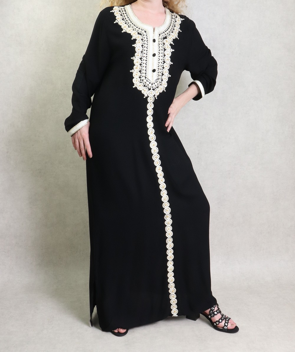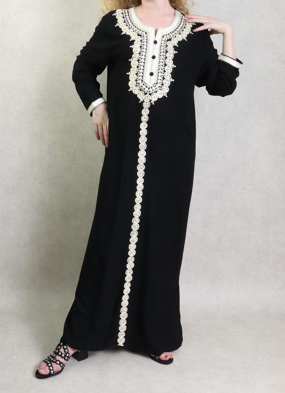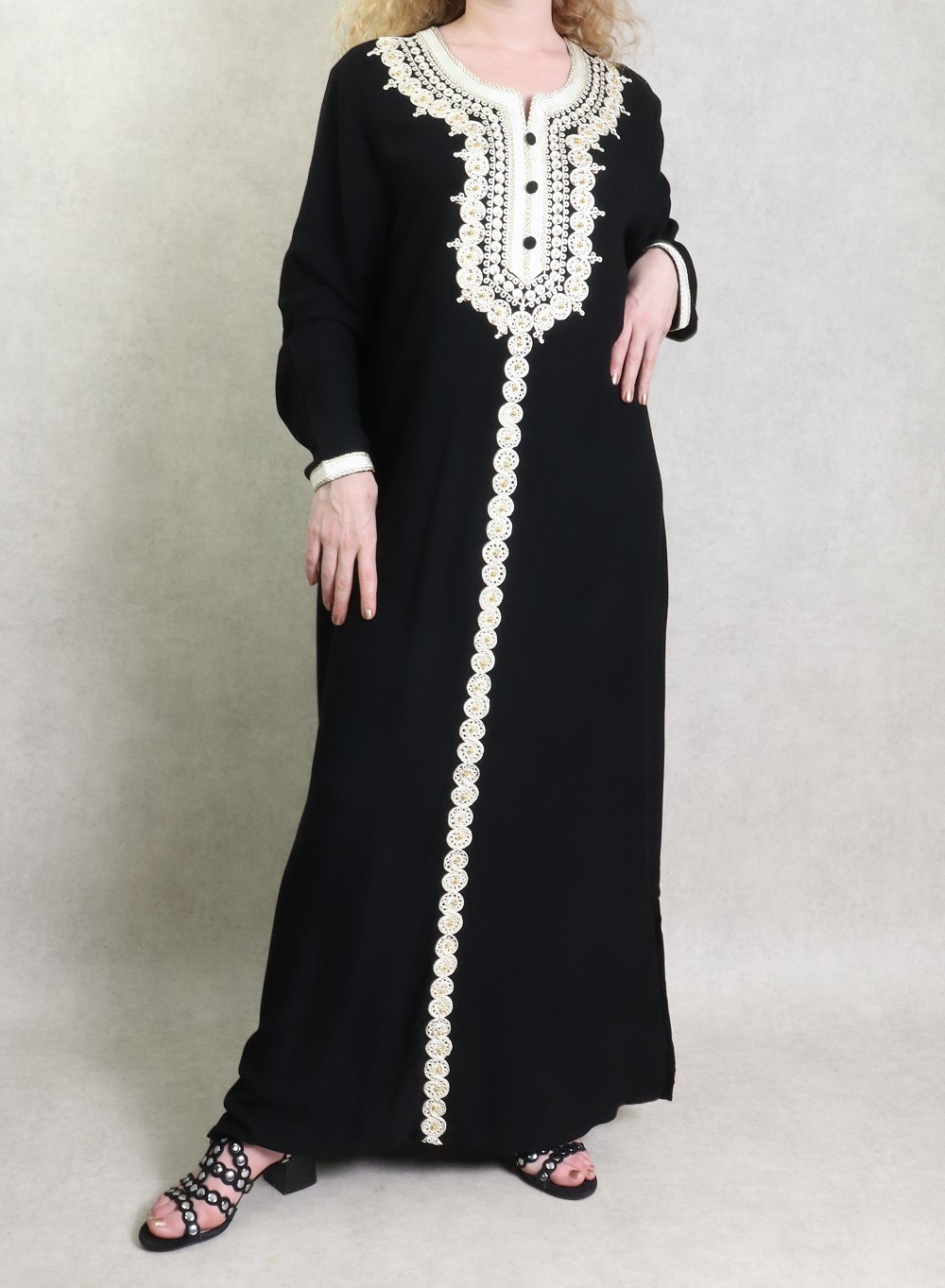Robe longue avec broderies et strass style caftan marocaine pour femme - Couleur Noir Vetement & Accessoire
