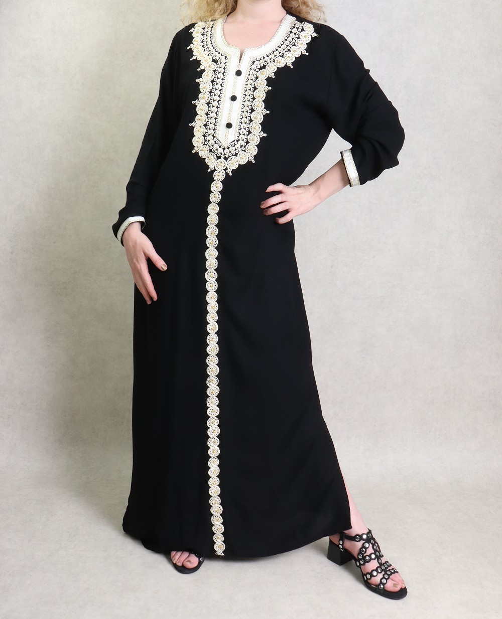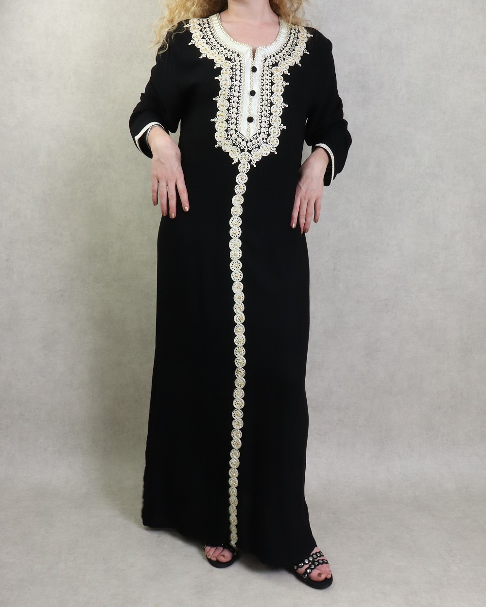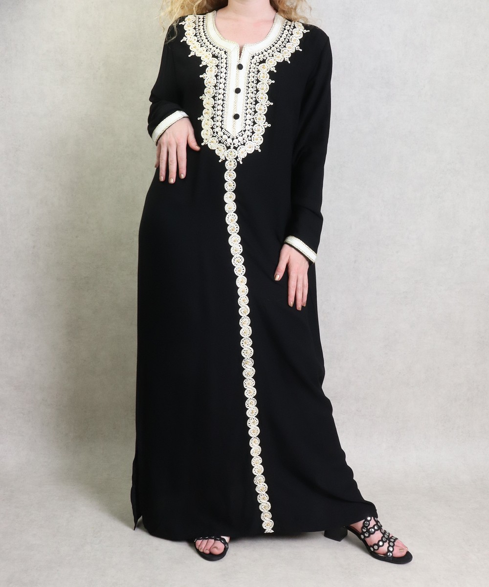 Robe longue avec broderies et strass style caftan marocaine pour femme - Couleur Noir Vetement & Accessoire