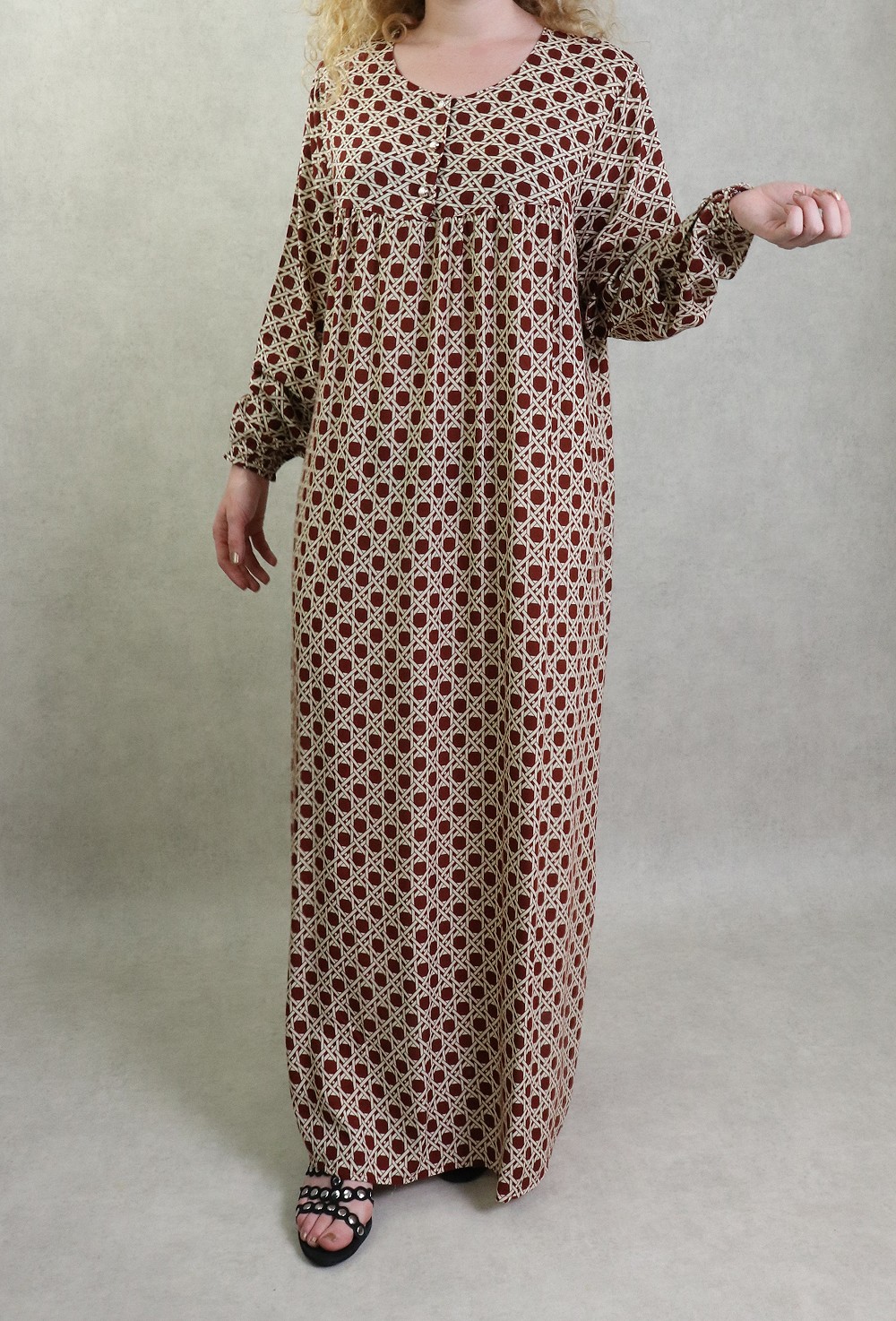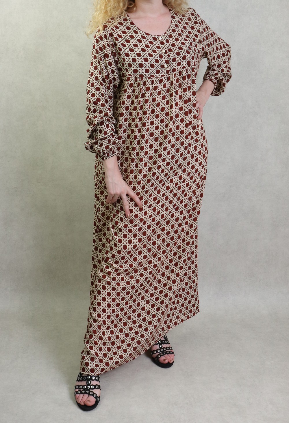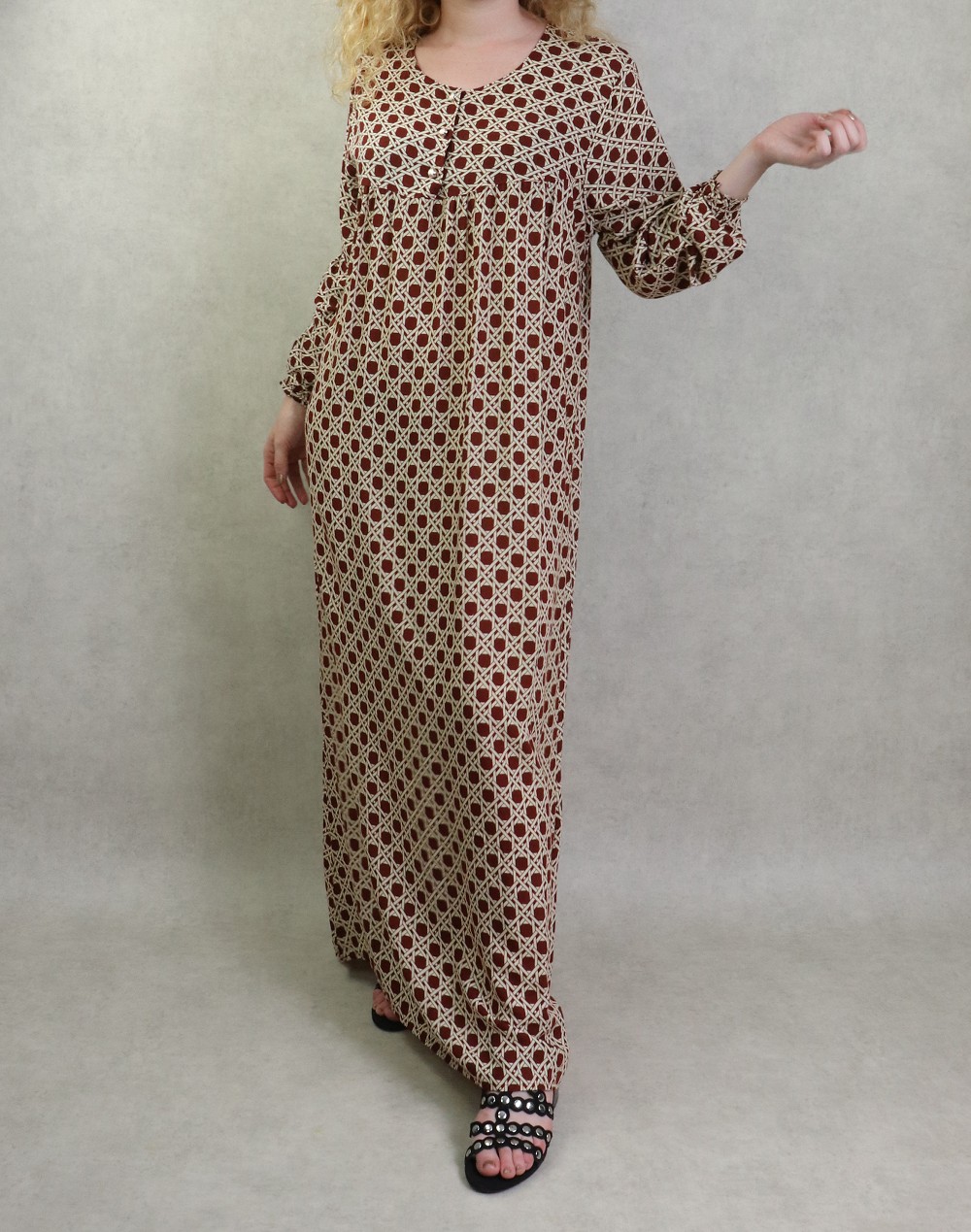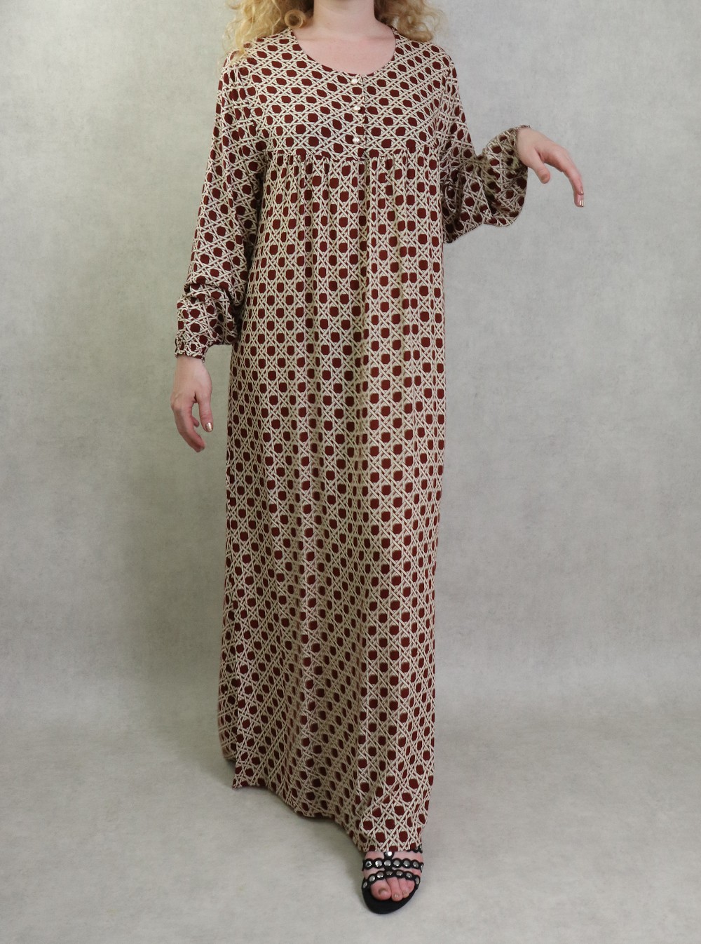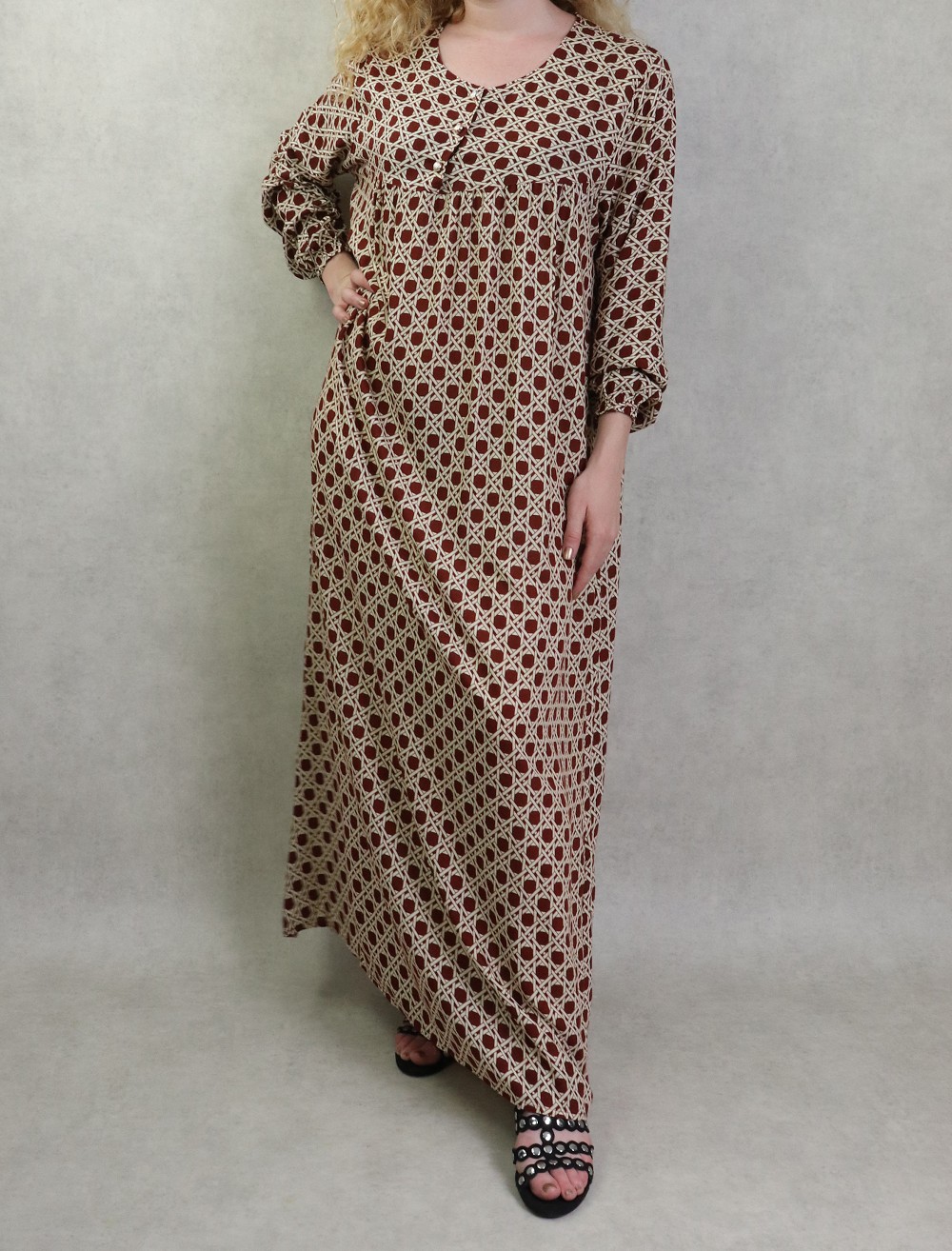 Robe longue avec motif pour femme - Couleur Crème et Rouille Vetement & Accessoire