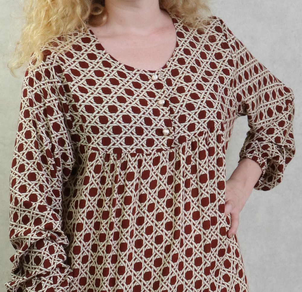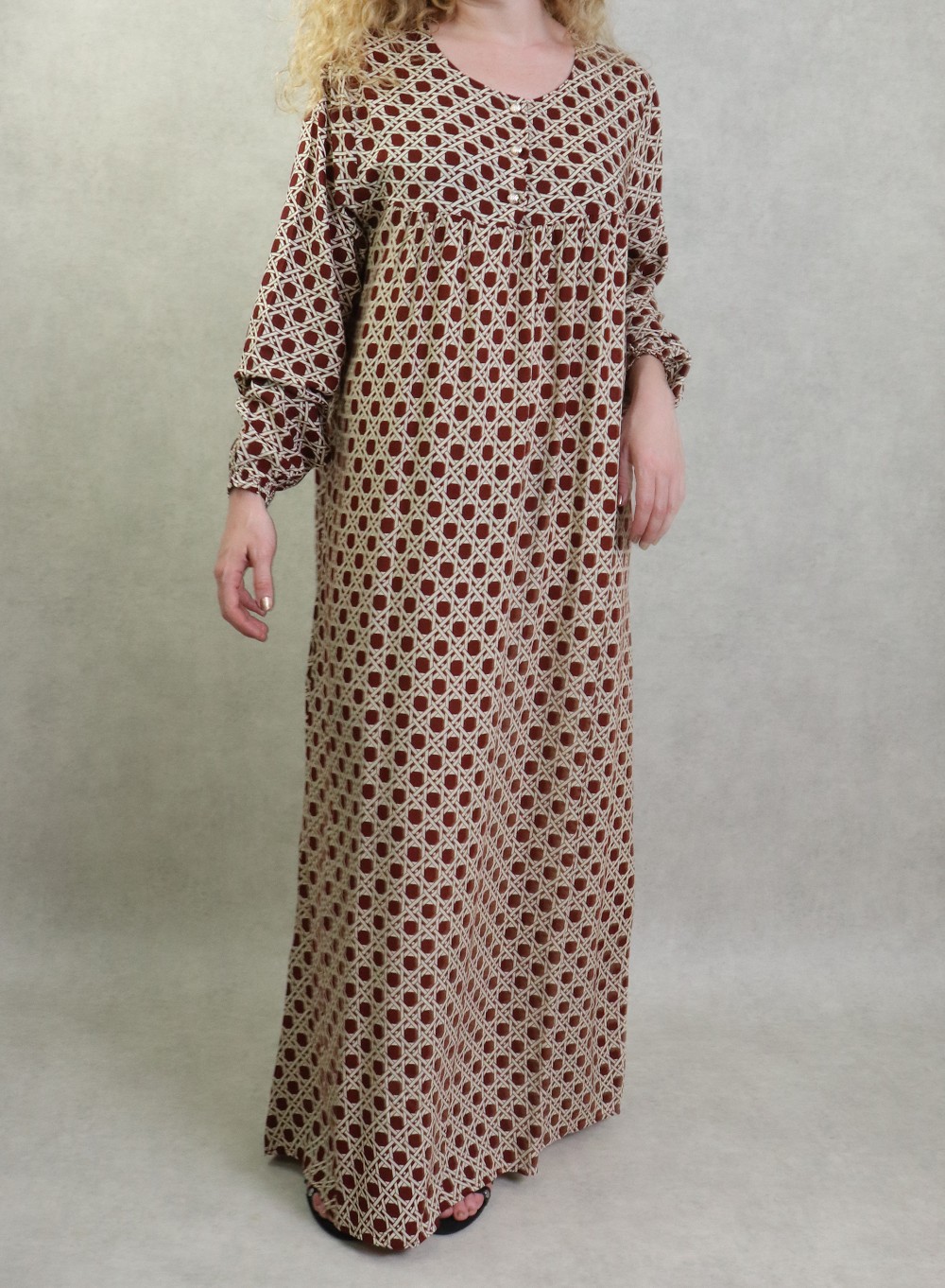 Robe longue avec motif pour femme - Couleur Creme et Rouille