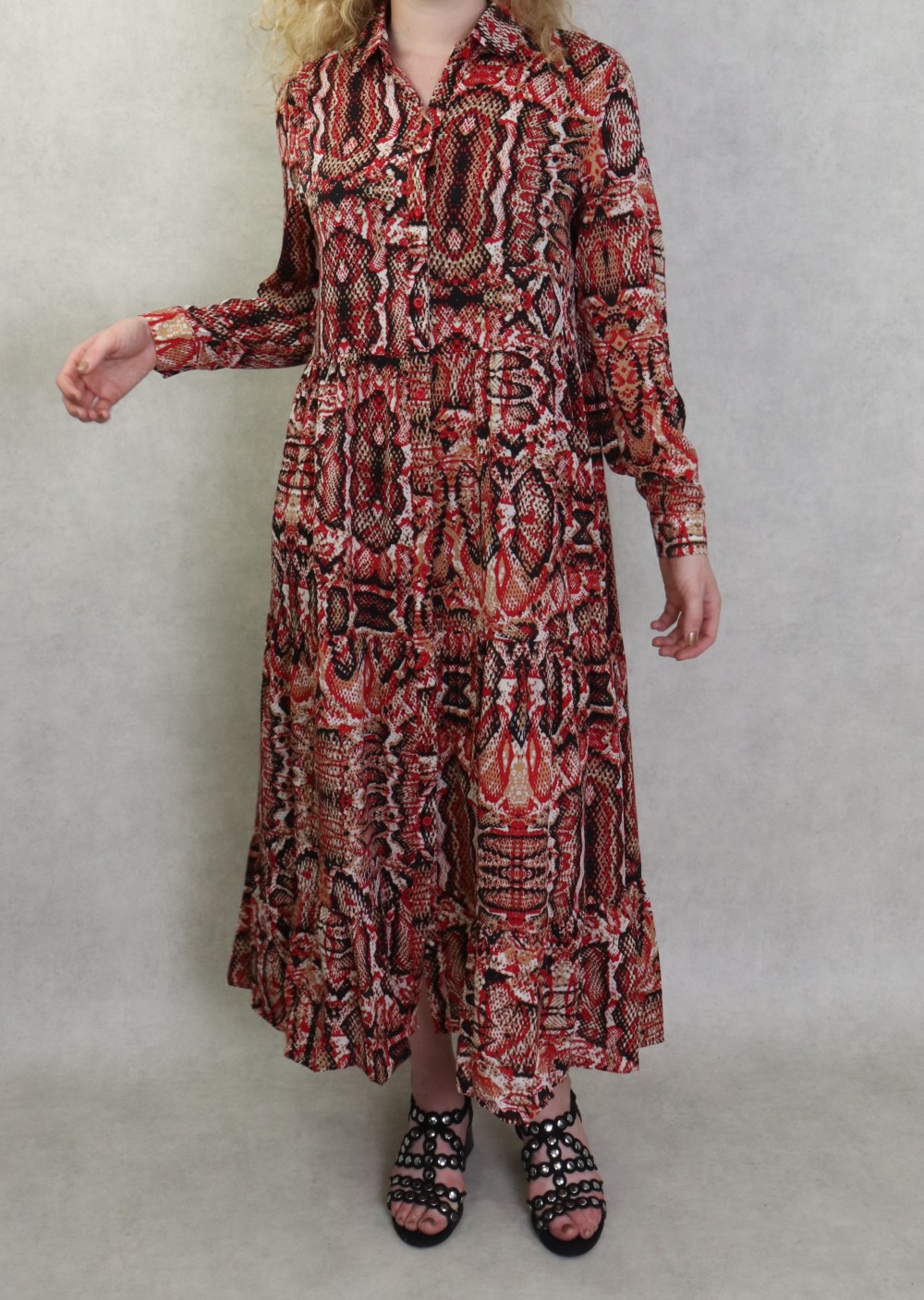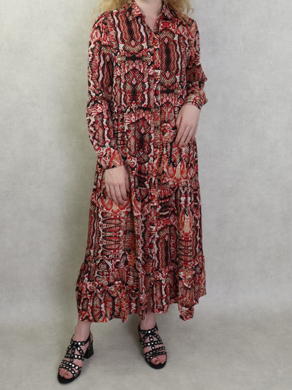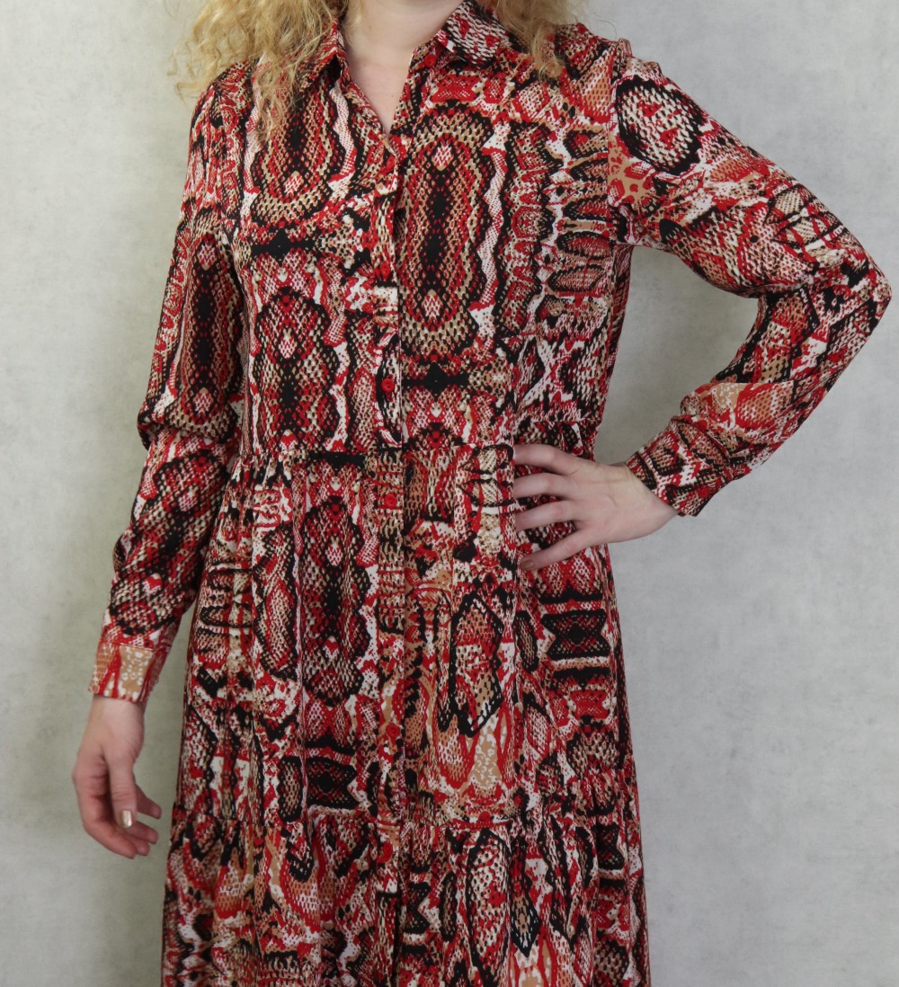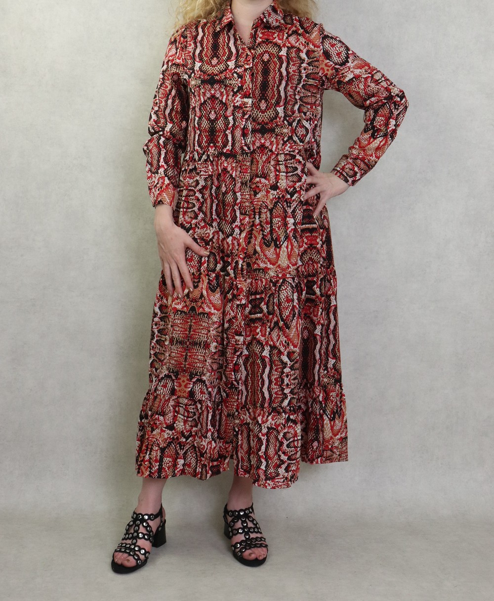 Robe chemisier longue imprimé python pour femme - Couleur Rouge Vetement & Accessoire