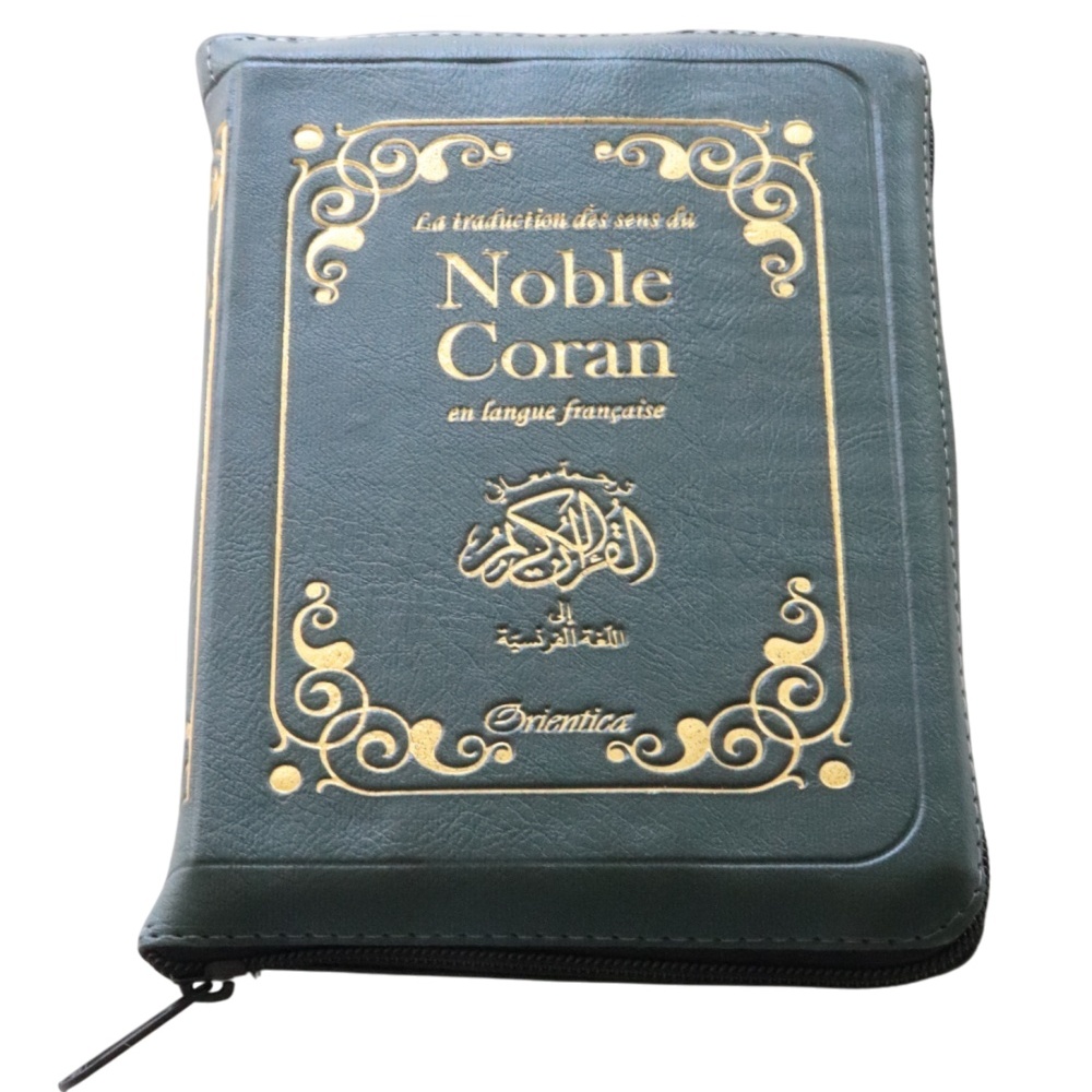 Le Noble Coran en francais - La traduction des sens en langue francaise (Fermeture zip) - Couleur vert fonce