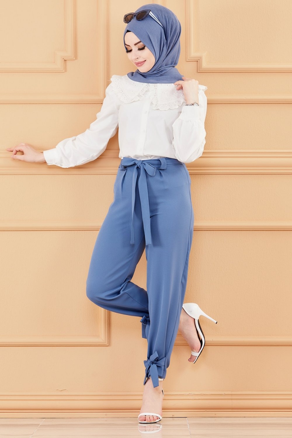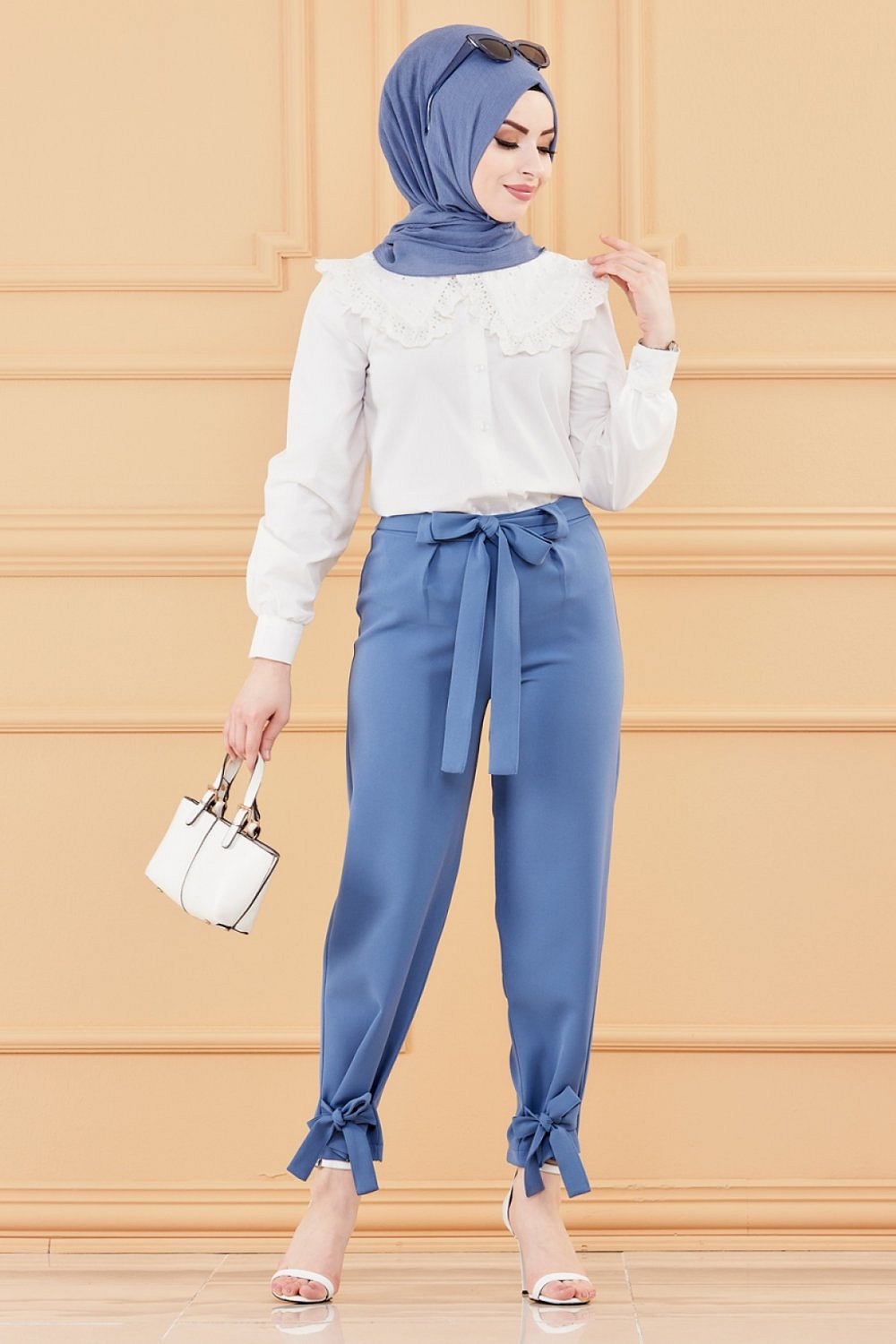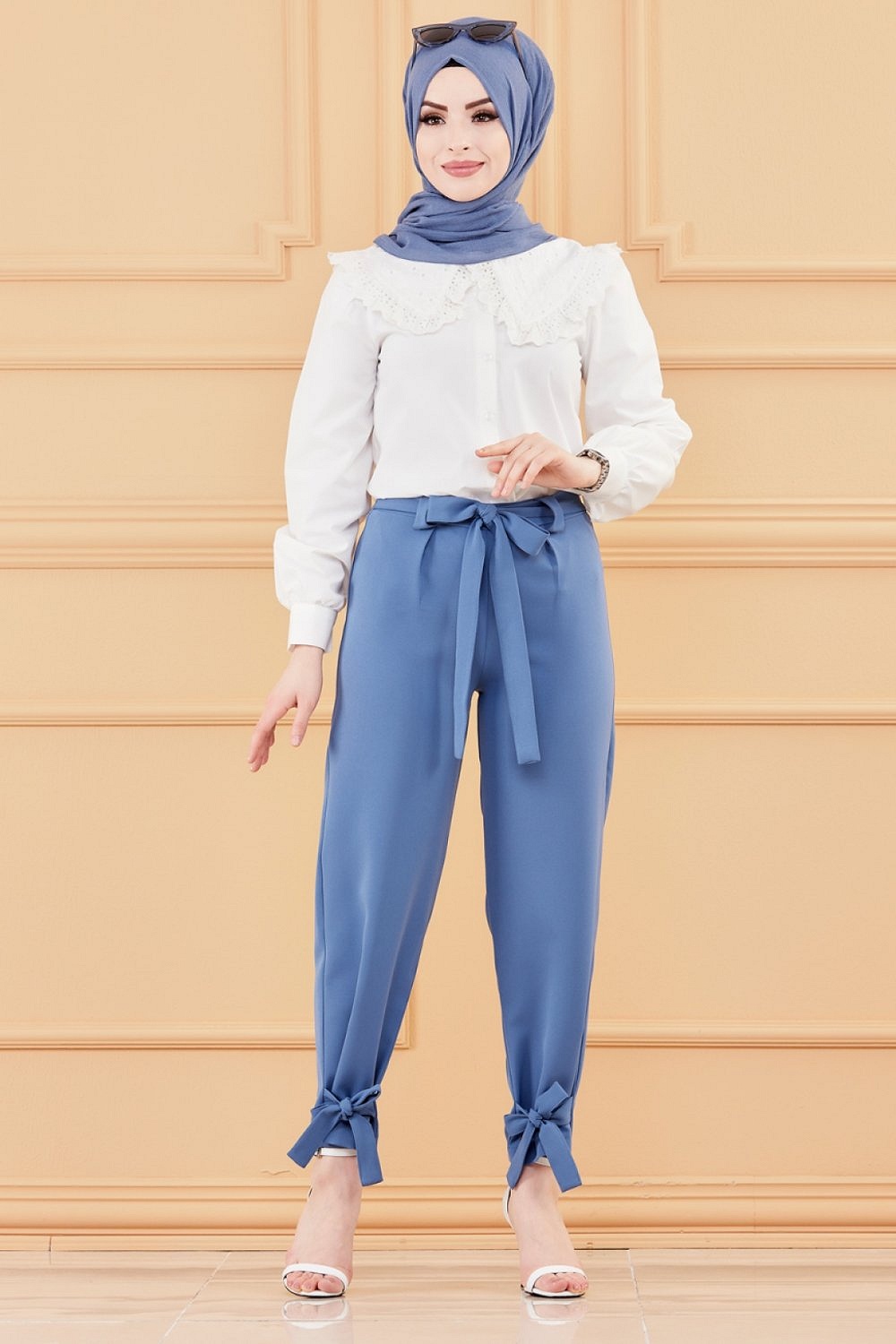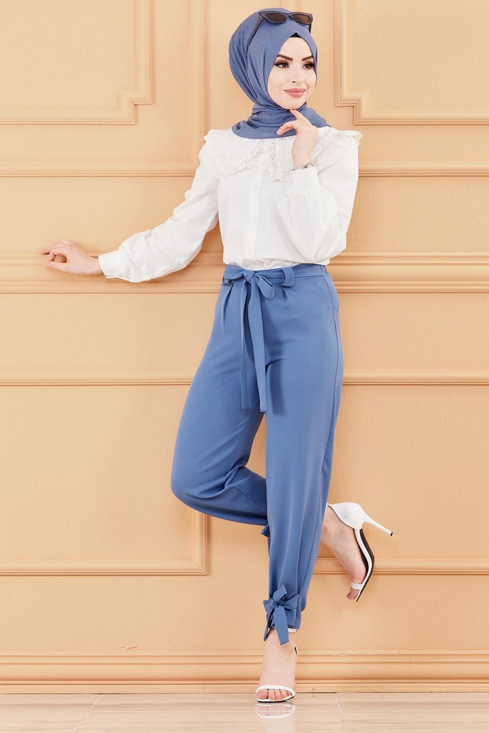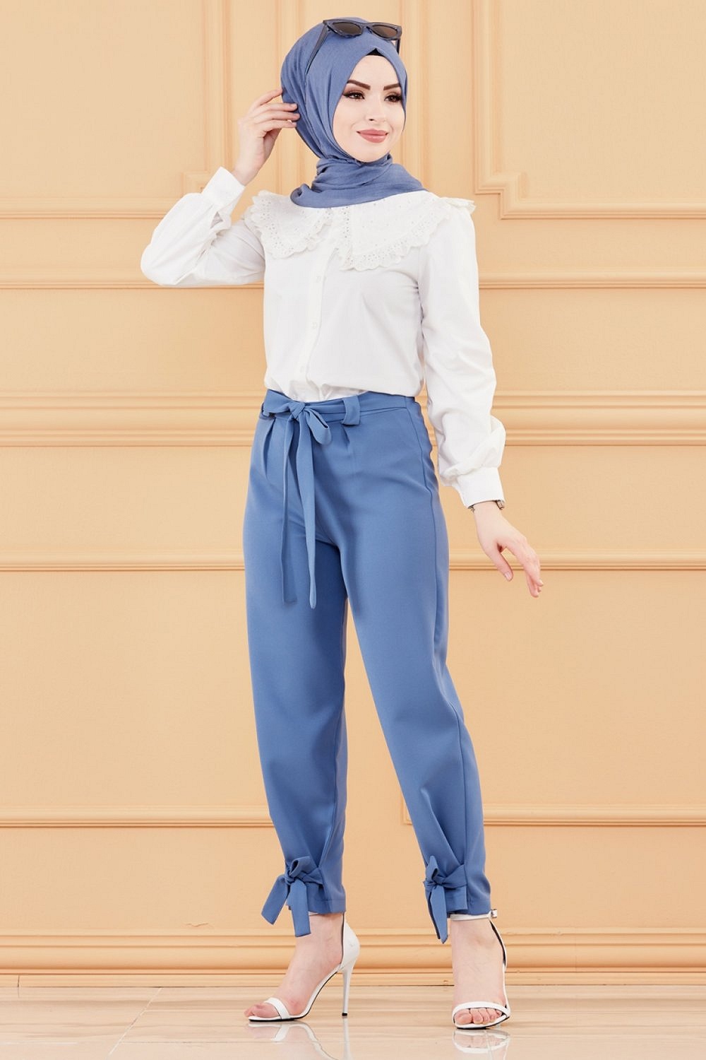 Pantalon cigarette pour femme (Vetement Hijab - Grande taille disponible) - Couleur bleu - REF. 32761 (24.90 €) - En Promotion à 19.00 €