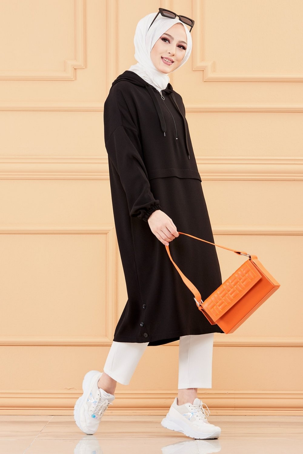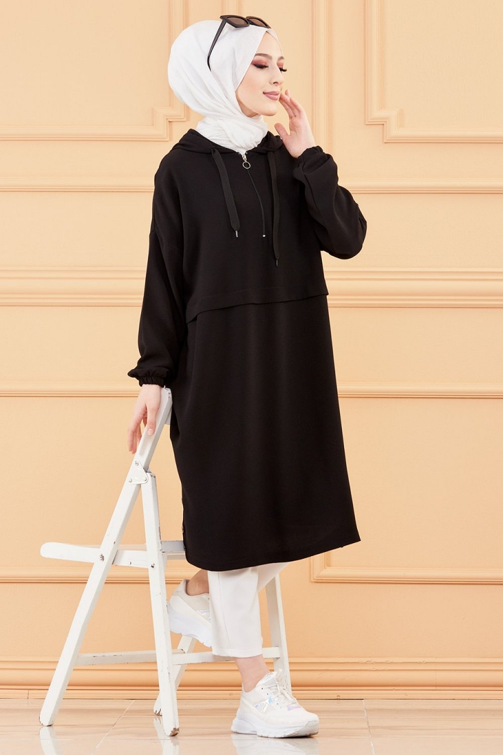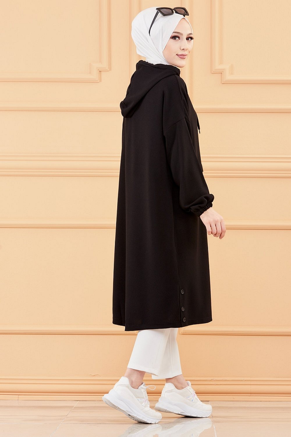 Tunique décontractée ample avec capuche (Tenue style sportwear pour femme musulmane) - Couleur noir Vetement & Accessoire