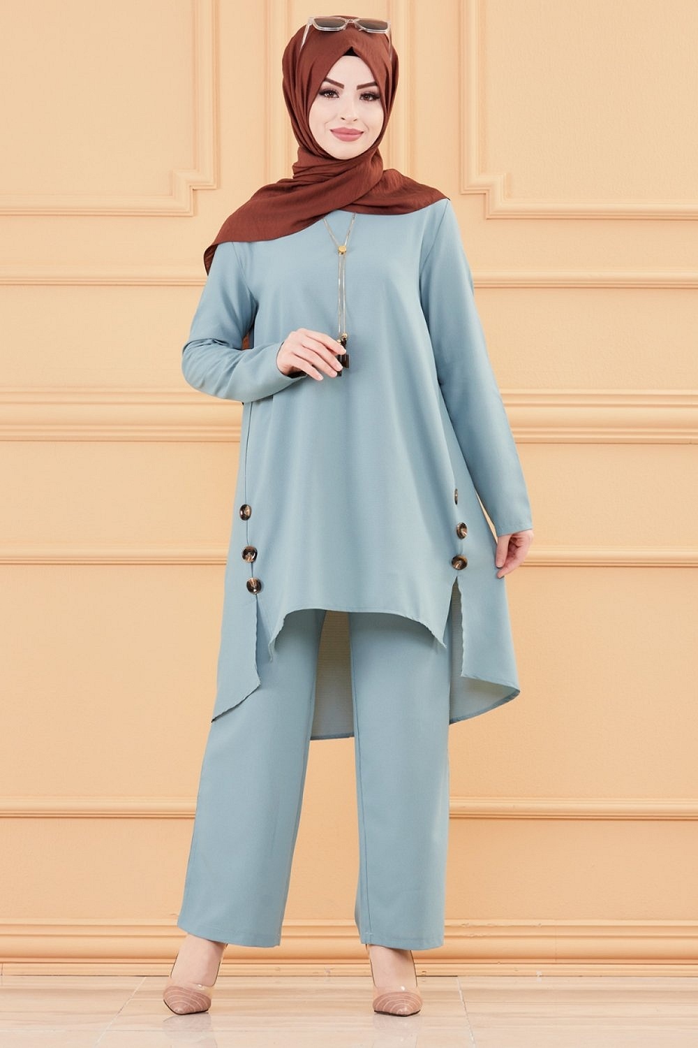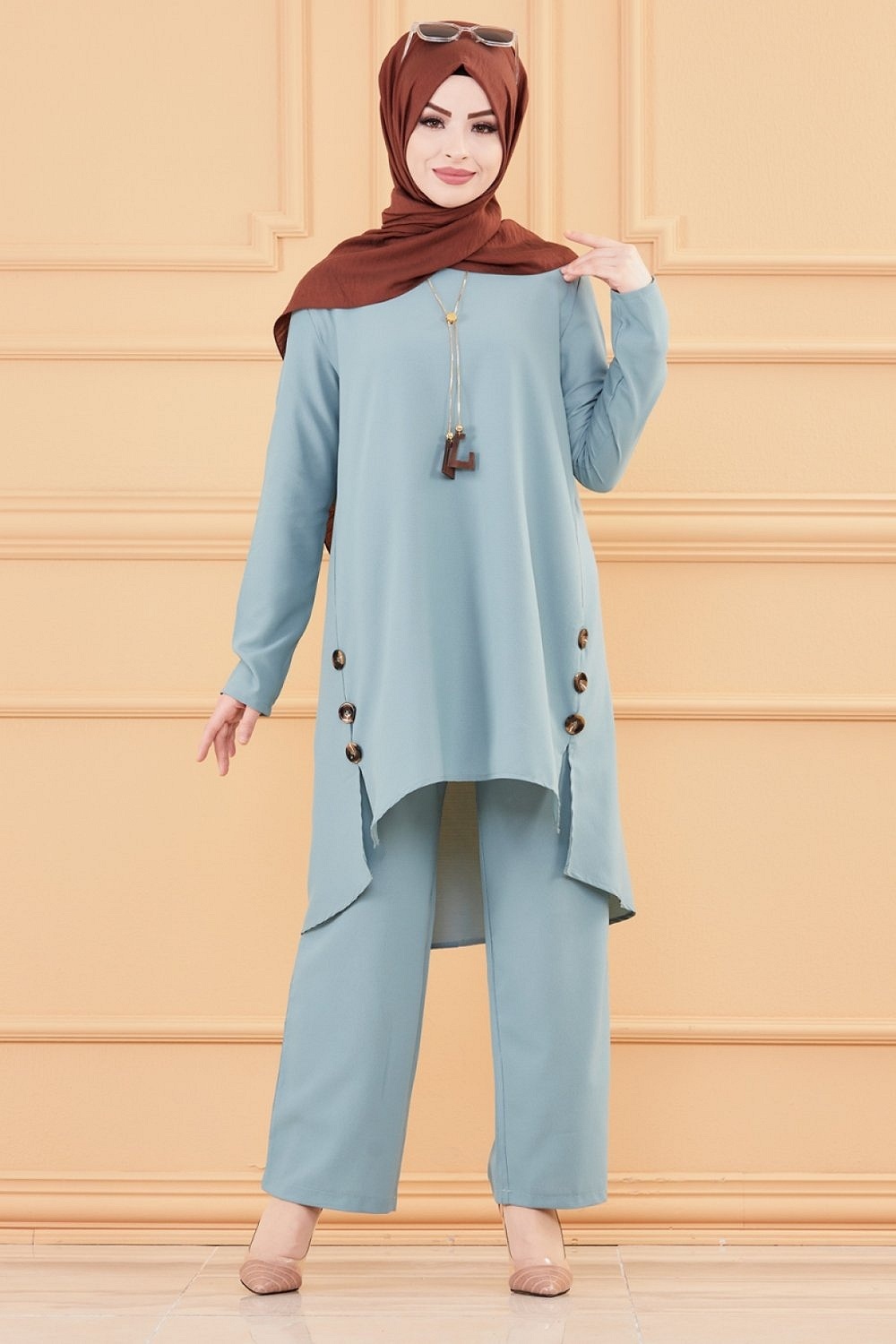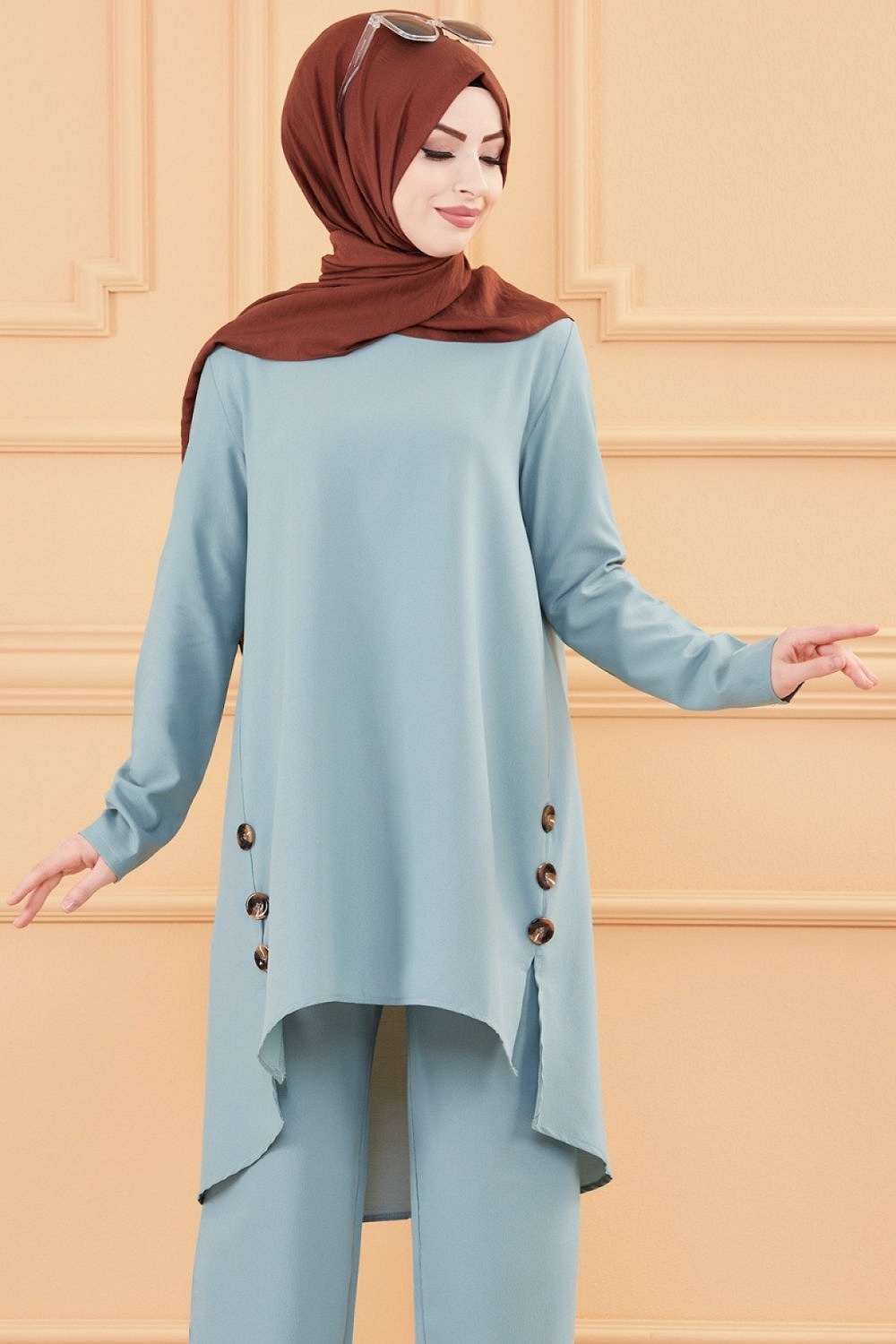 Ensemble femme deux pièces : Tunique évasée et Pantalon assorti (Tenue habillée pour hijab) - Couleur menthe Vetement & Accessoire