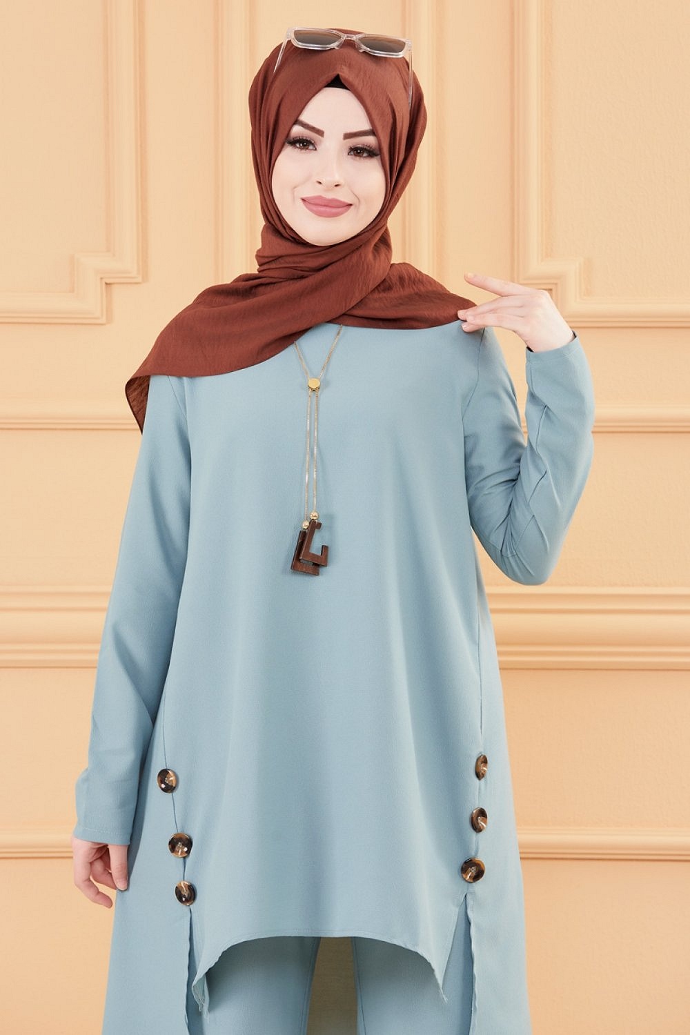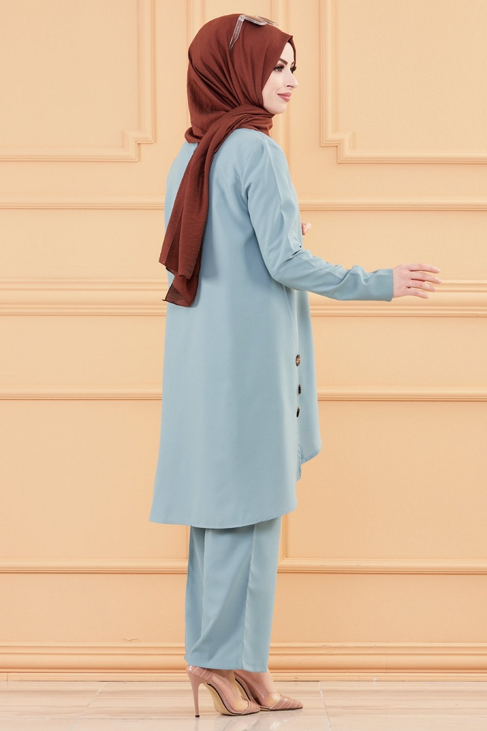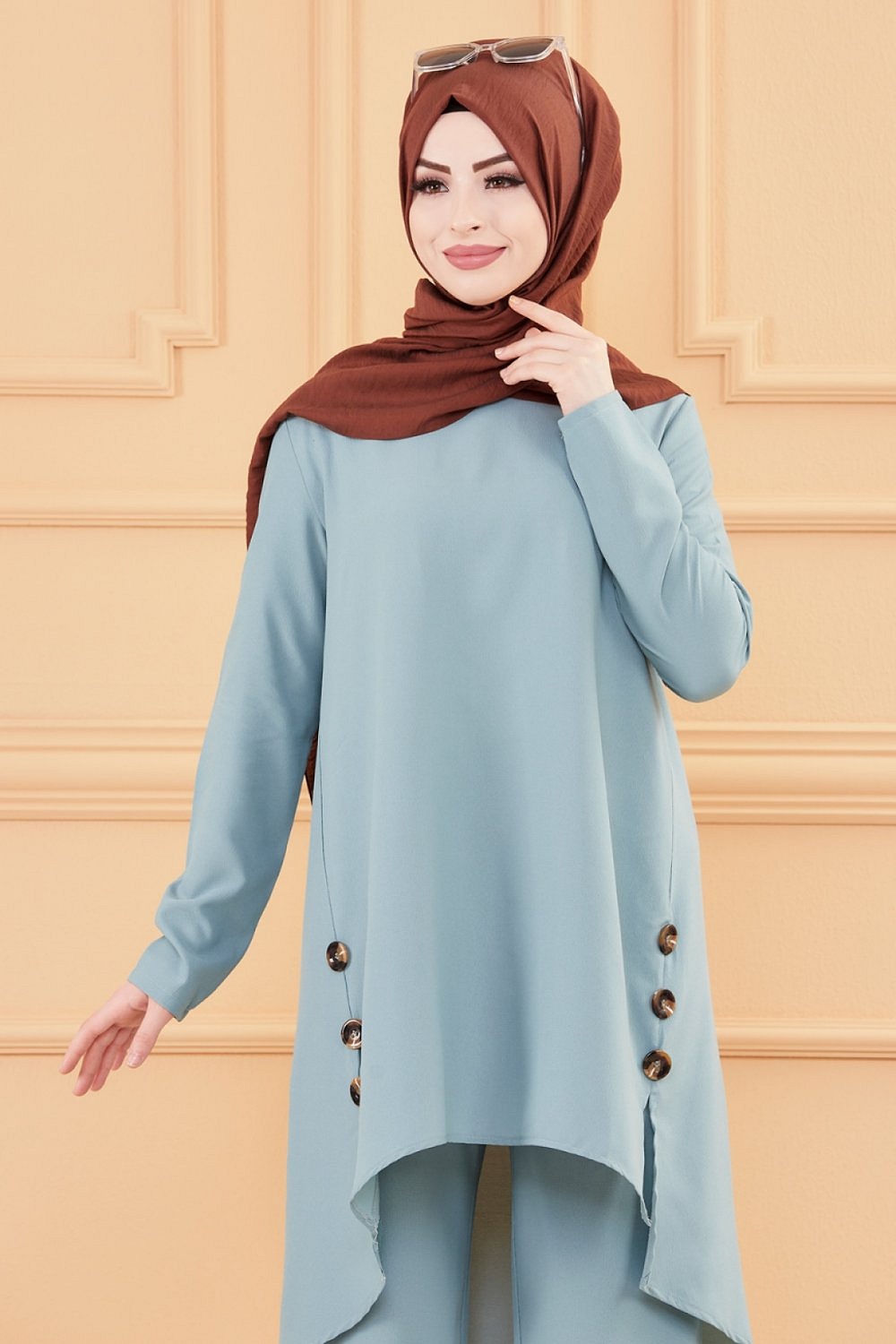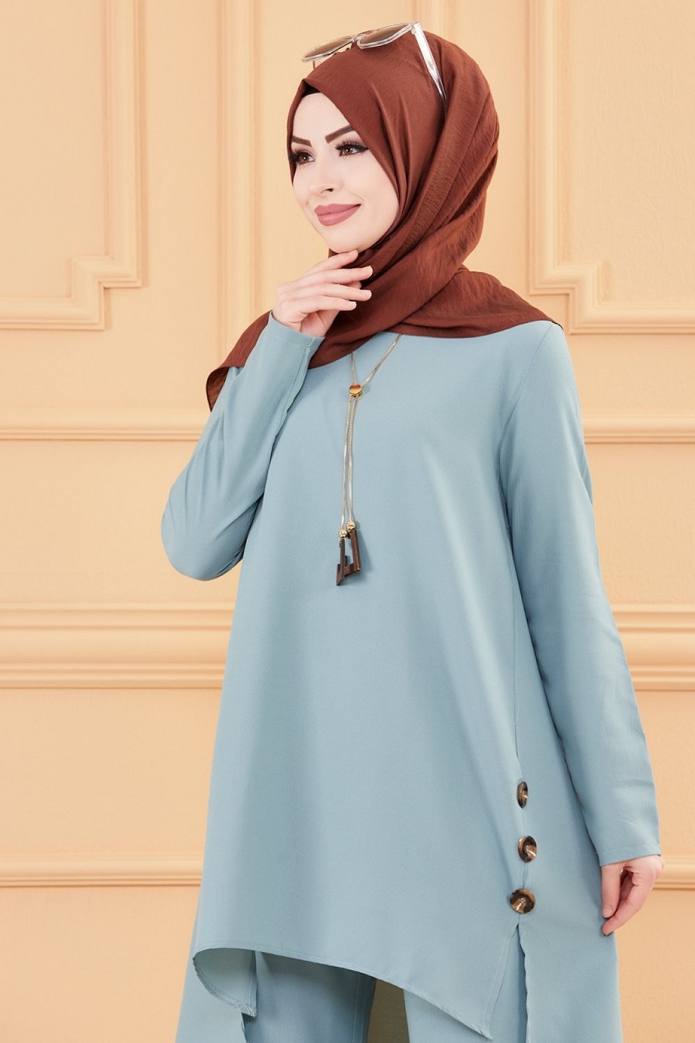 Ensemble femme deux pièces : Tunique évasée et Pantalon assorti (Tenue habillée pour hijab) - Couleur menthe Vetement & Accessoire