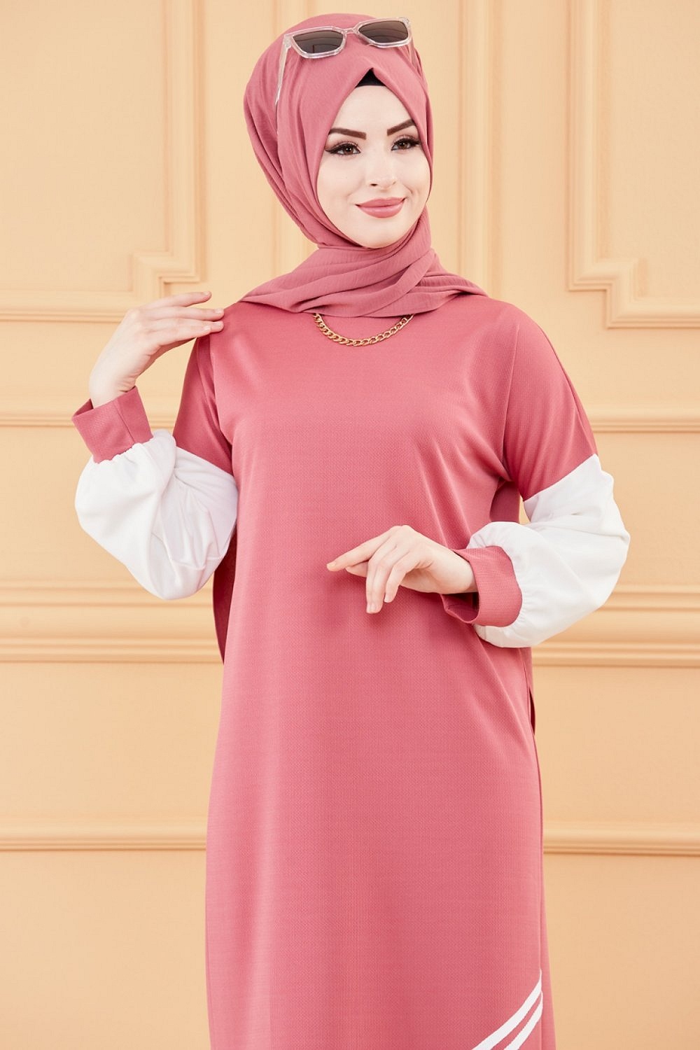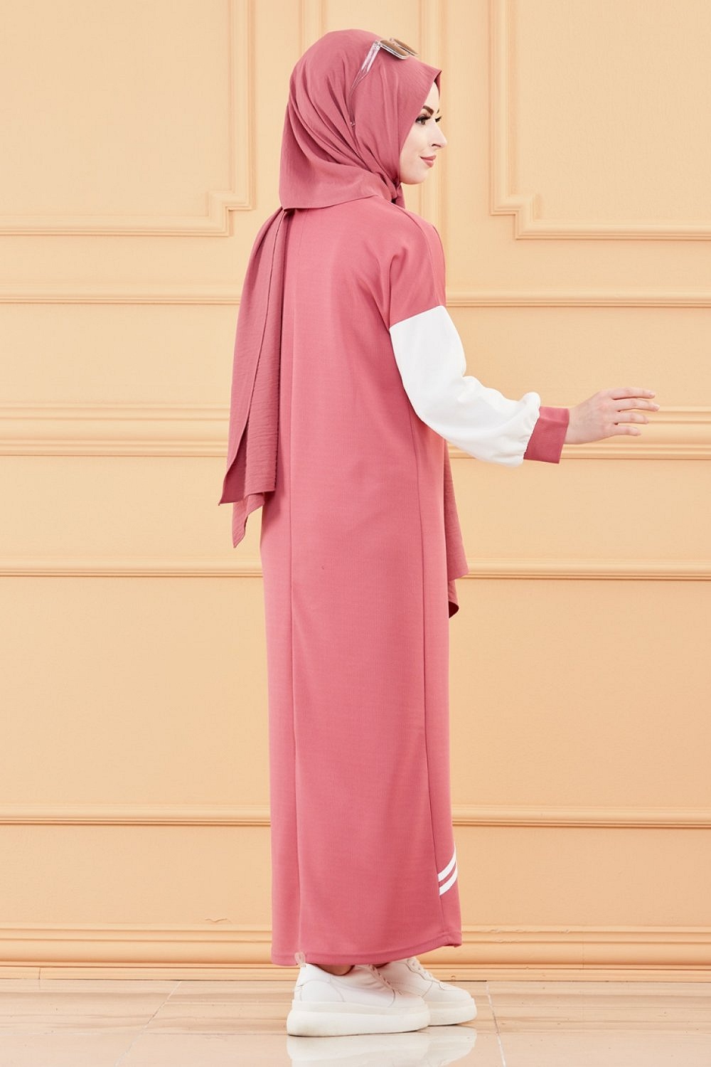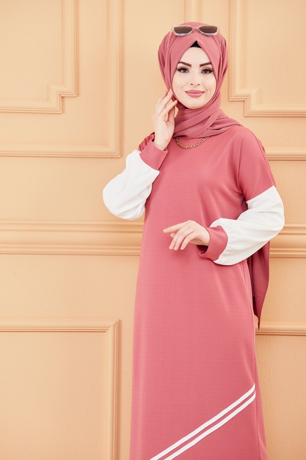Robe moderne style decontracte (Vetements modernes pour femmes musulmanes) - Couleur rose et blanc