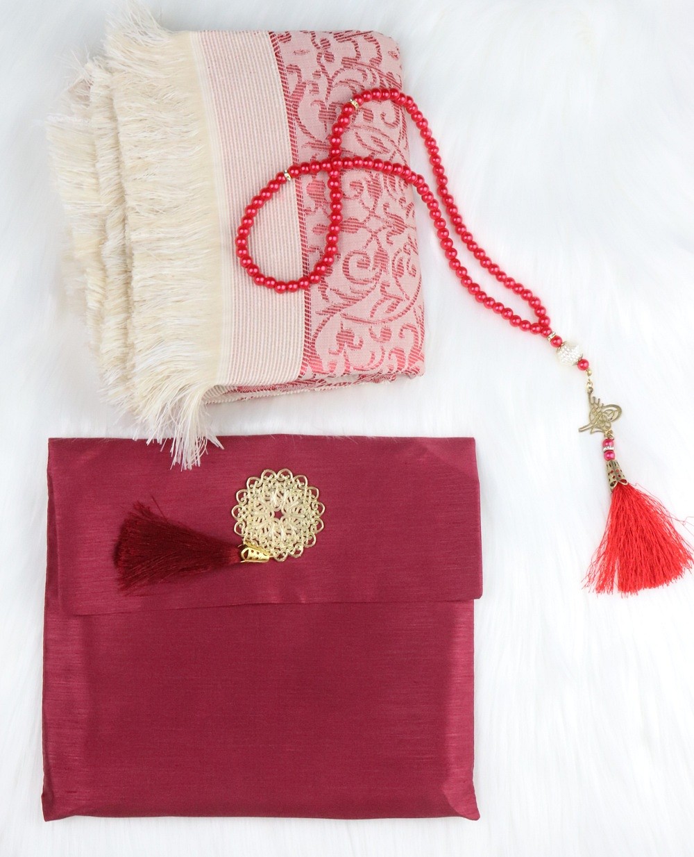 Pack cadeau Islam : Tapis de prière + Sabha (chapelet musulman) - Couleur rouge bordeaux - REF. 36275 (14.90 €)