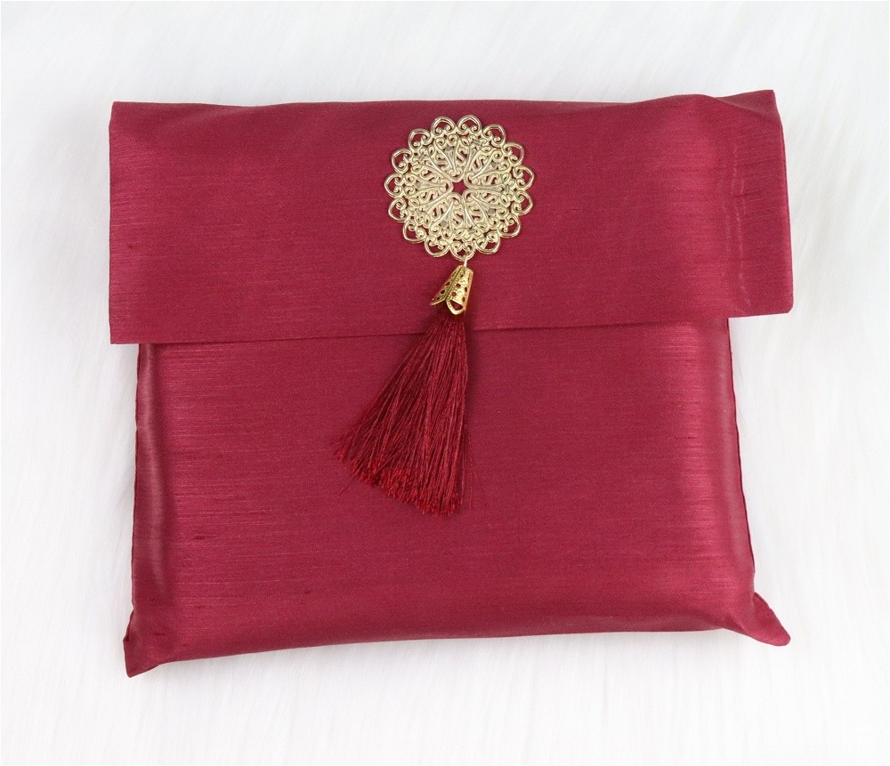 Sacoche artisanale en tissu mabra bordeaux avec de jolis motifs brodés - REF. 18496 (12.00 €)