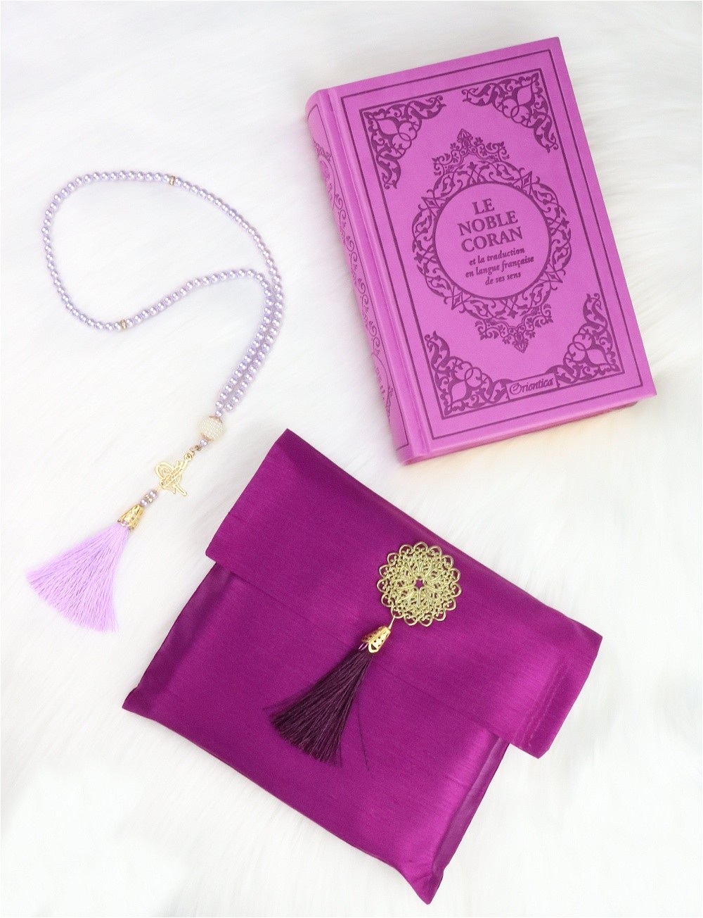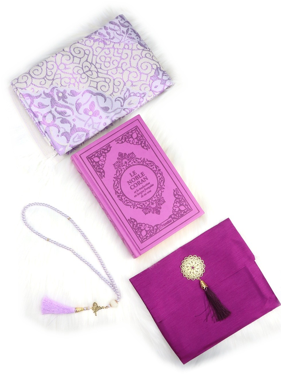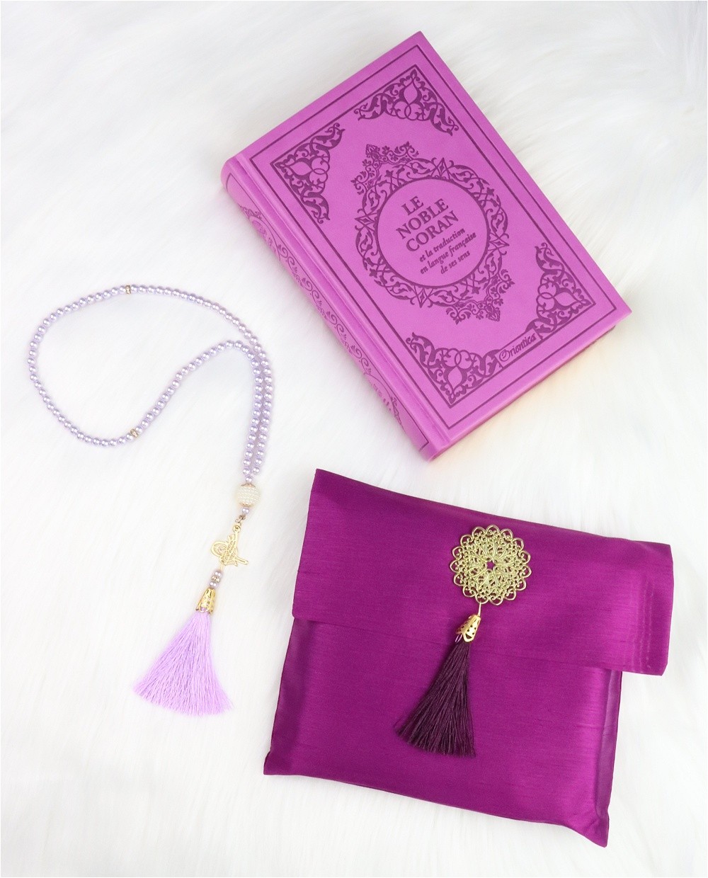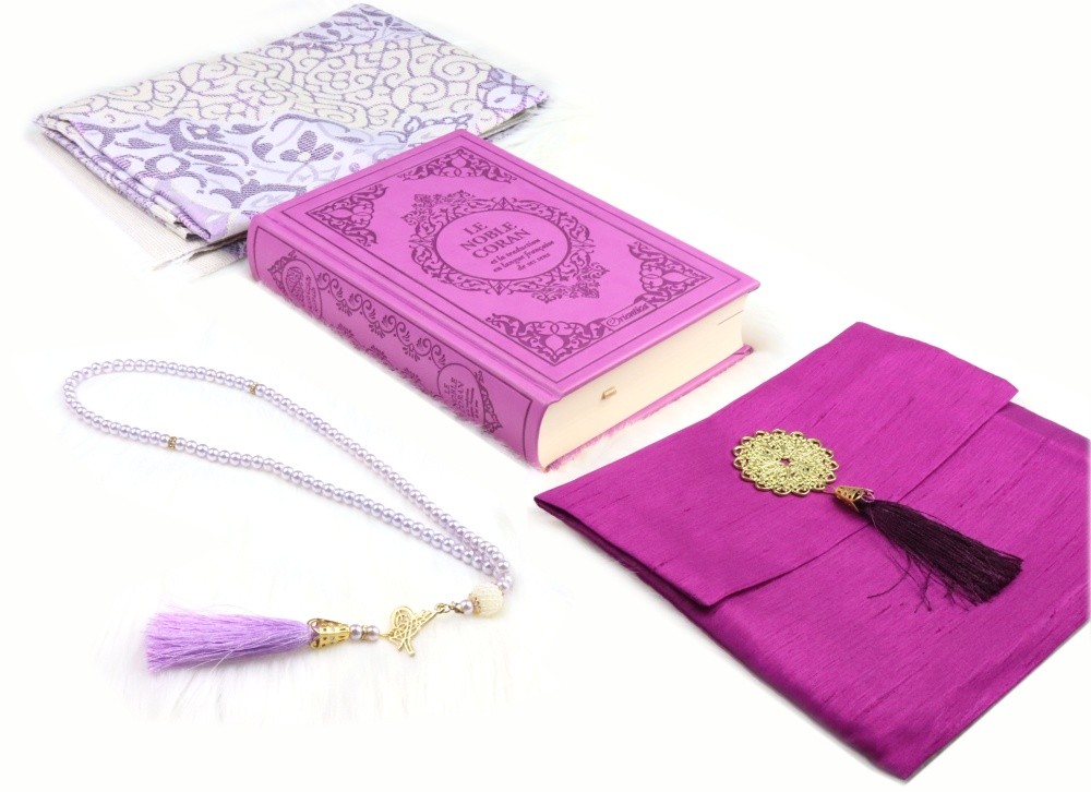 Vous avez également ce pack cadeau avec en plus un Coran bilingue de couleur mauve