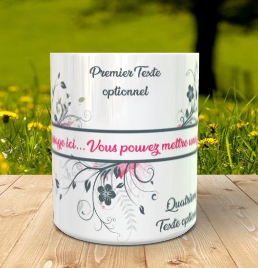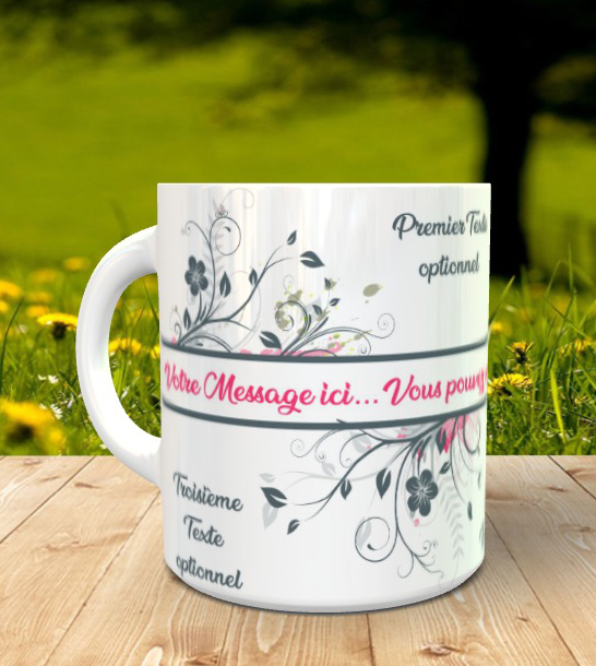 Tasse personnalisable avec plusieurs messages ou prenoms (Decoration florale)