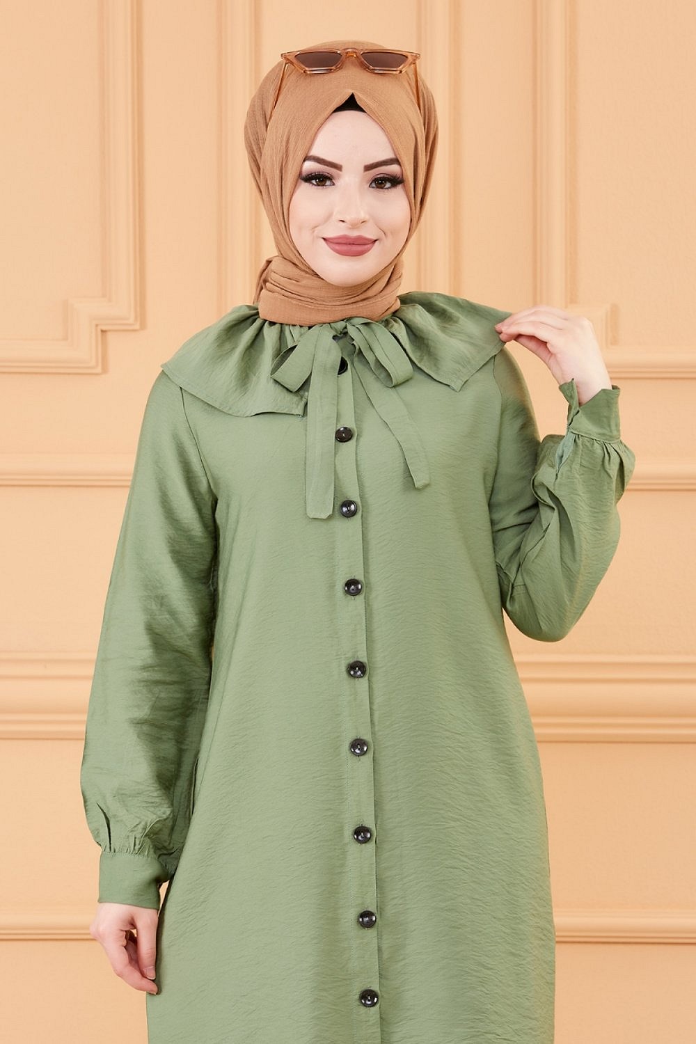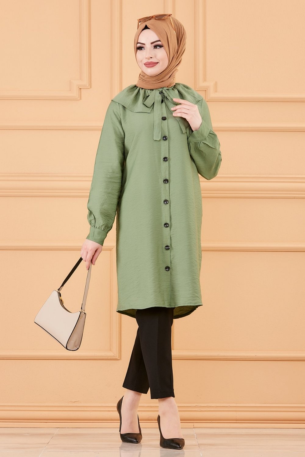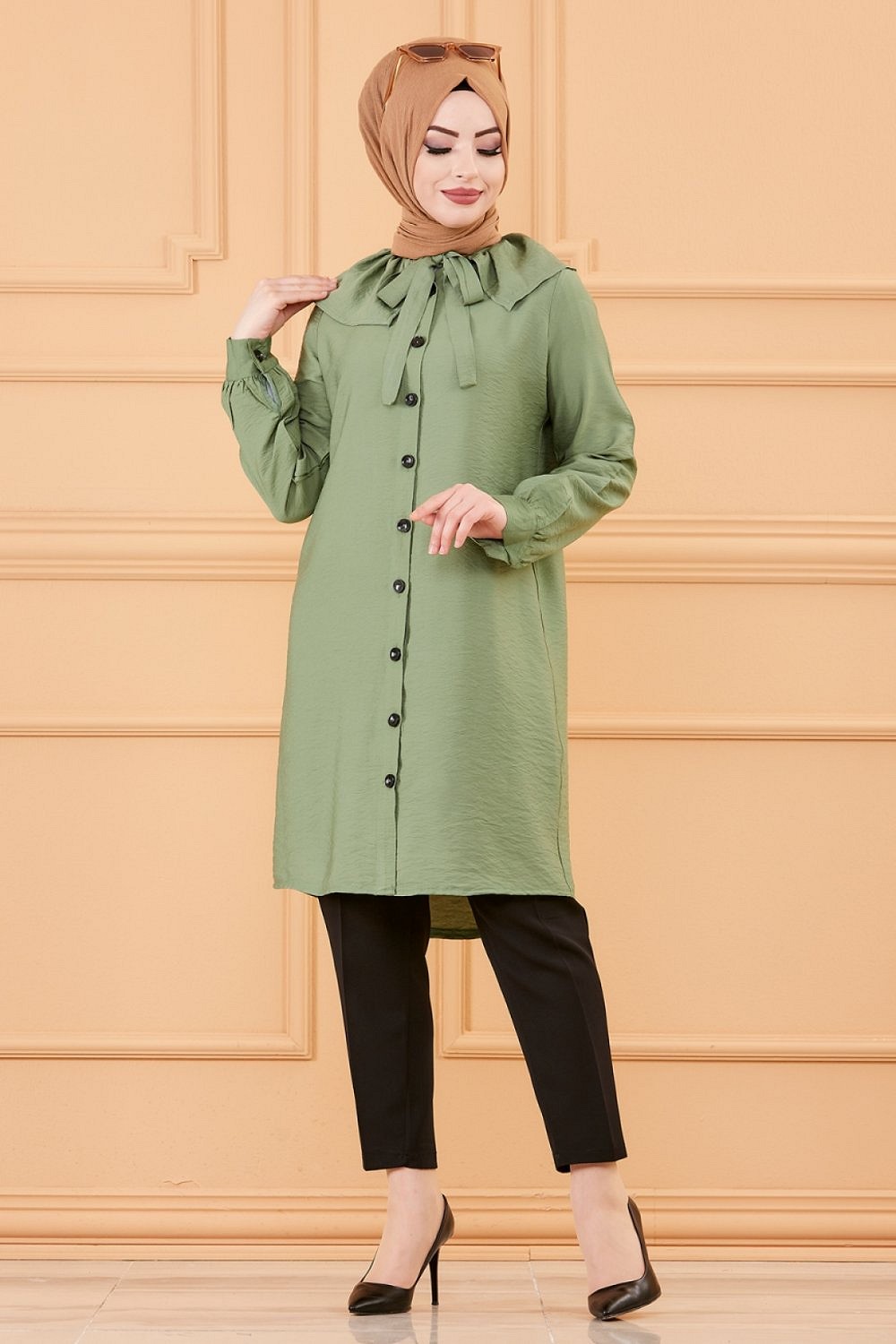 Tunique chemise boutonnee habillee (Vetement pour femme musulmane) - Couleur menthe