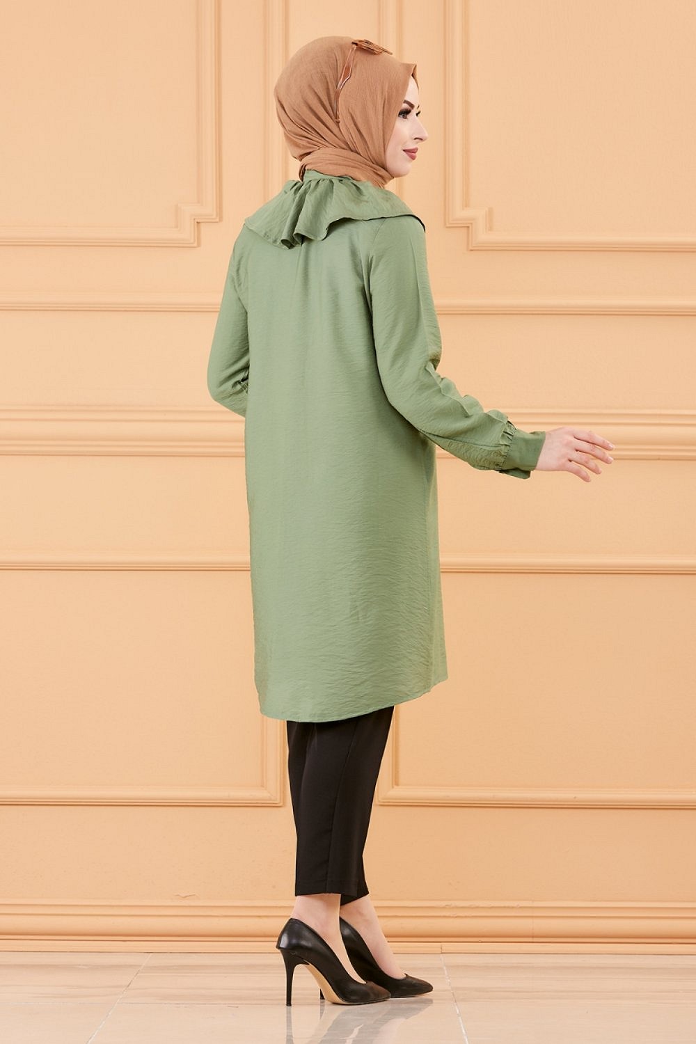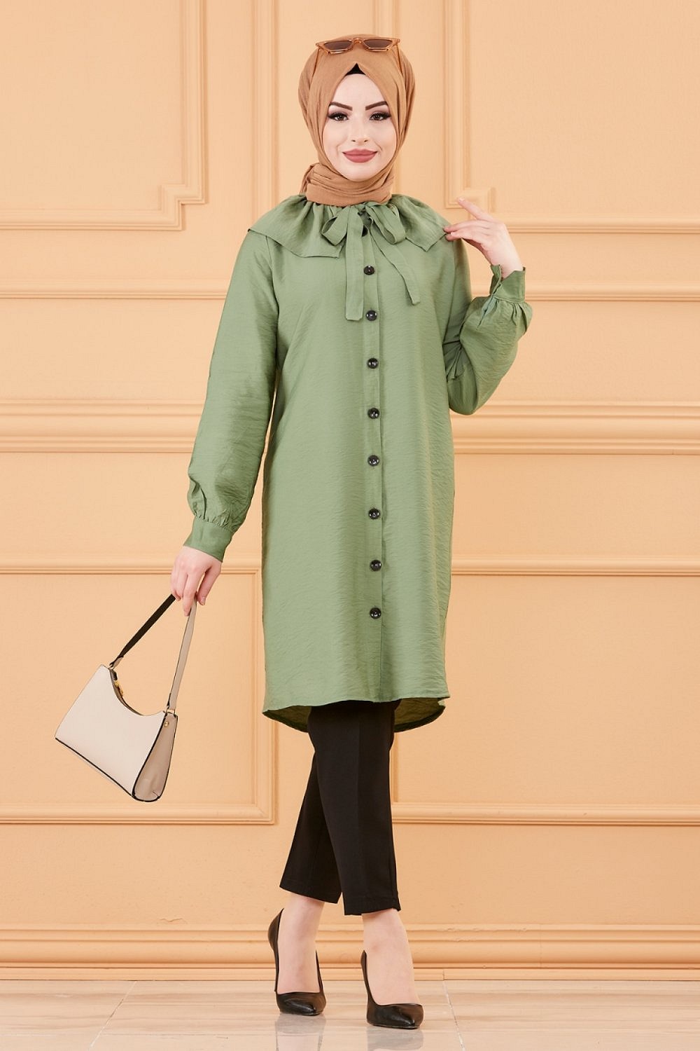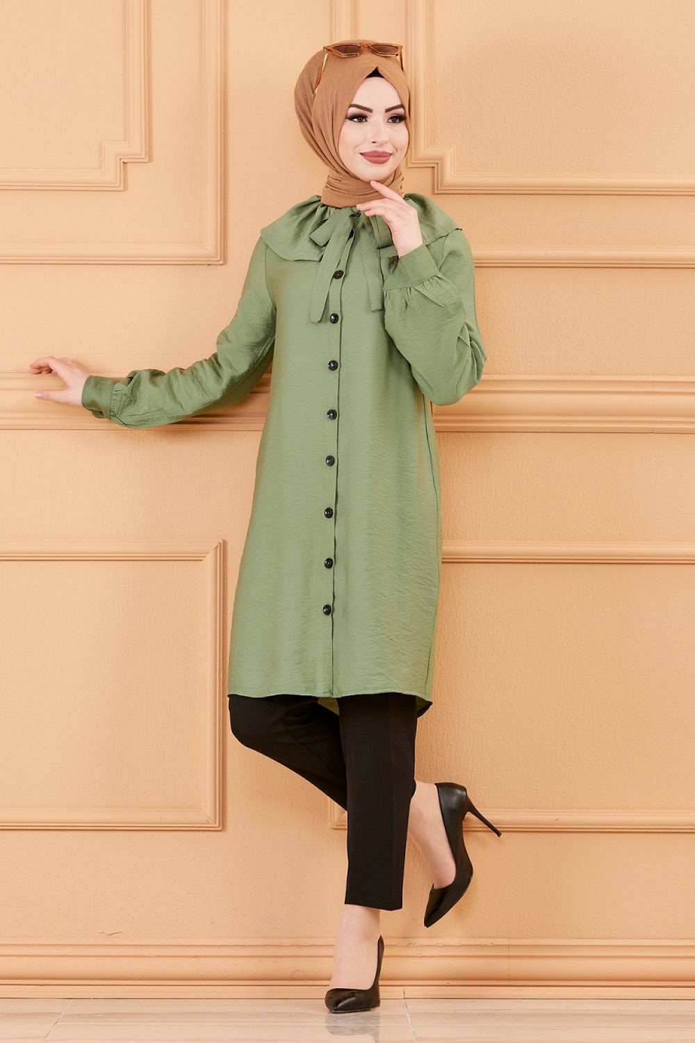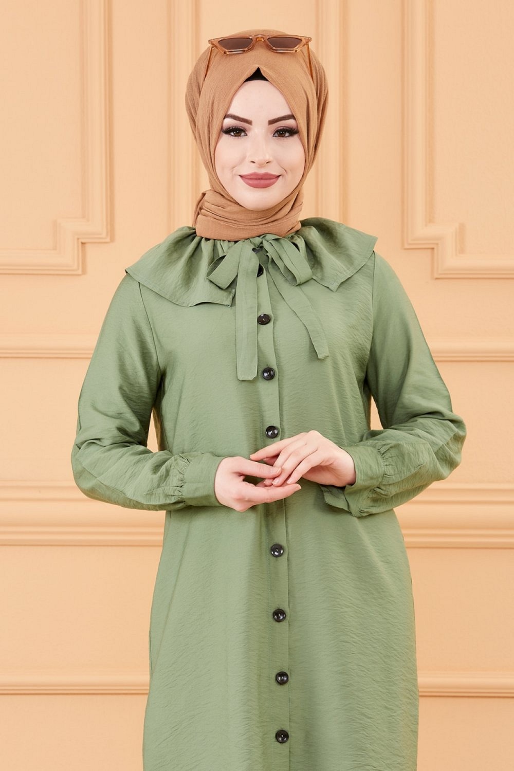 Tunique chemise boutonnee habillee (Vetement pour femme musulmane) - Couleur menthe