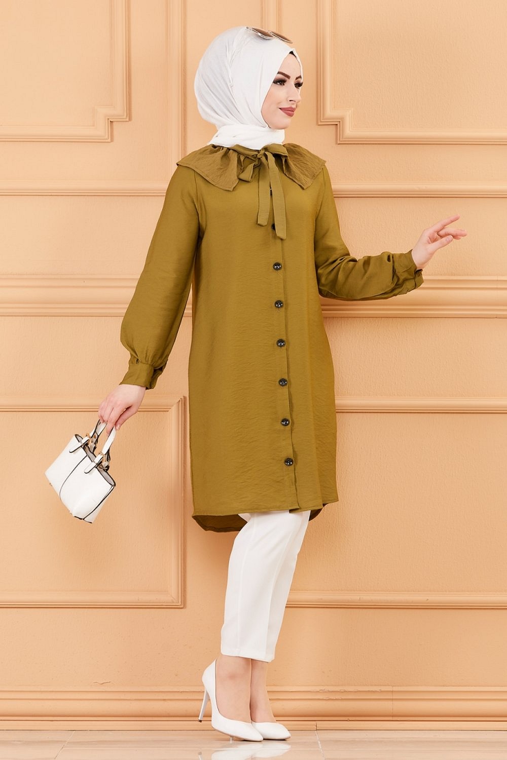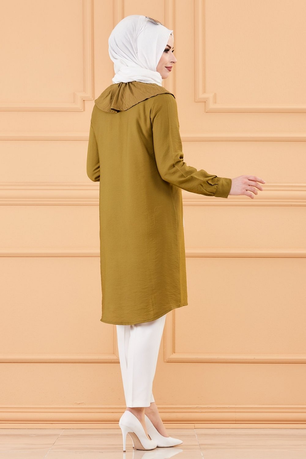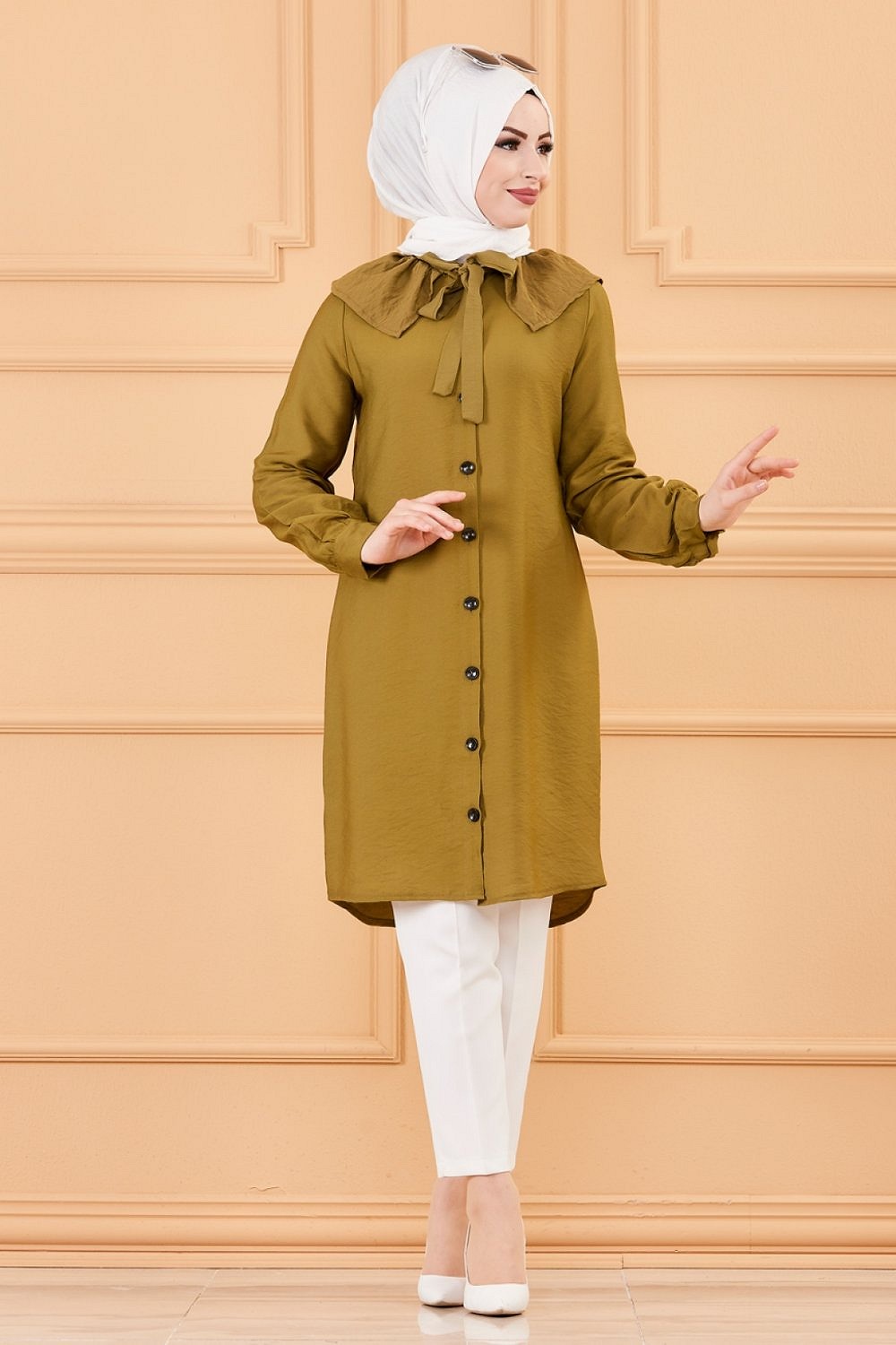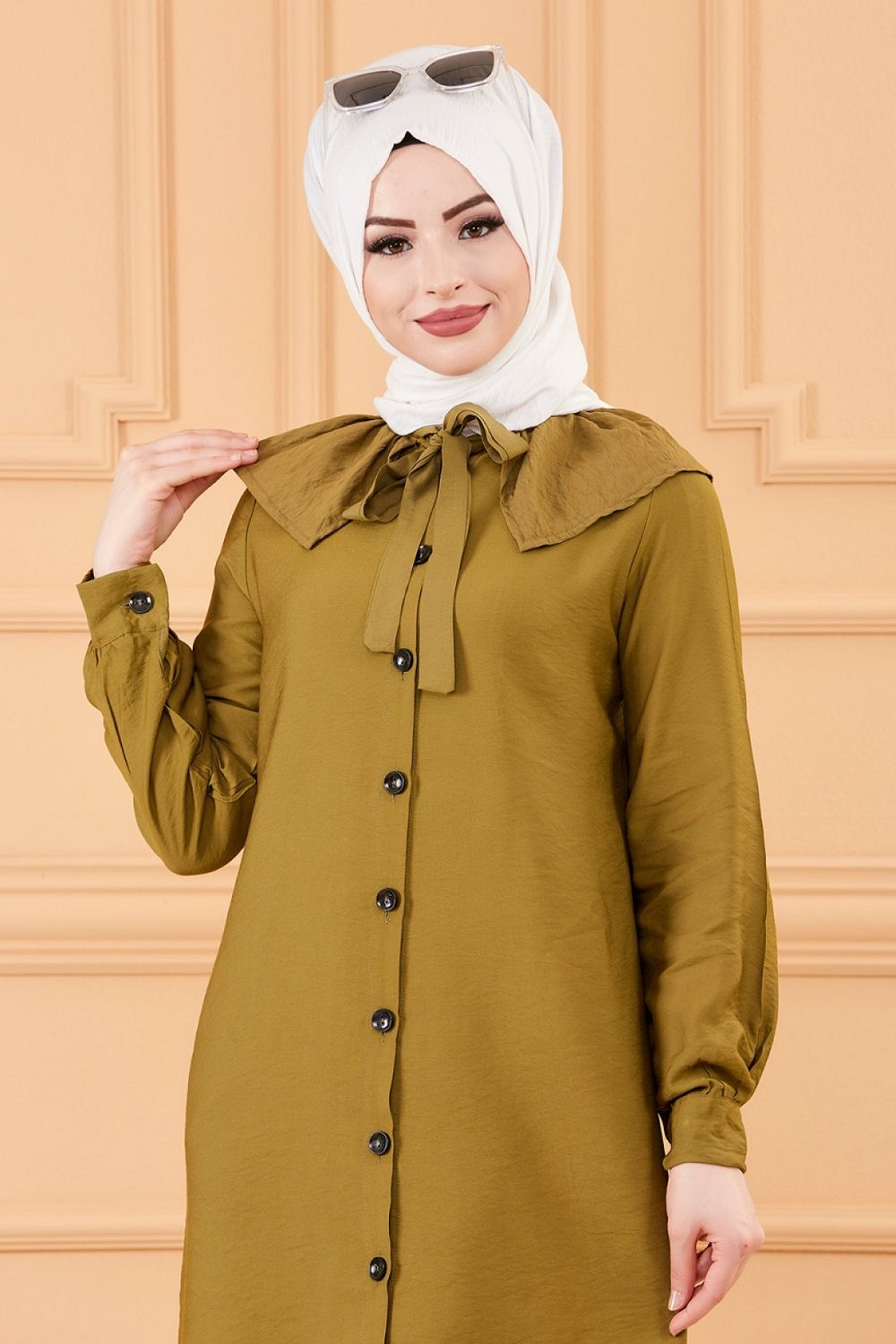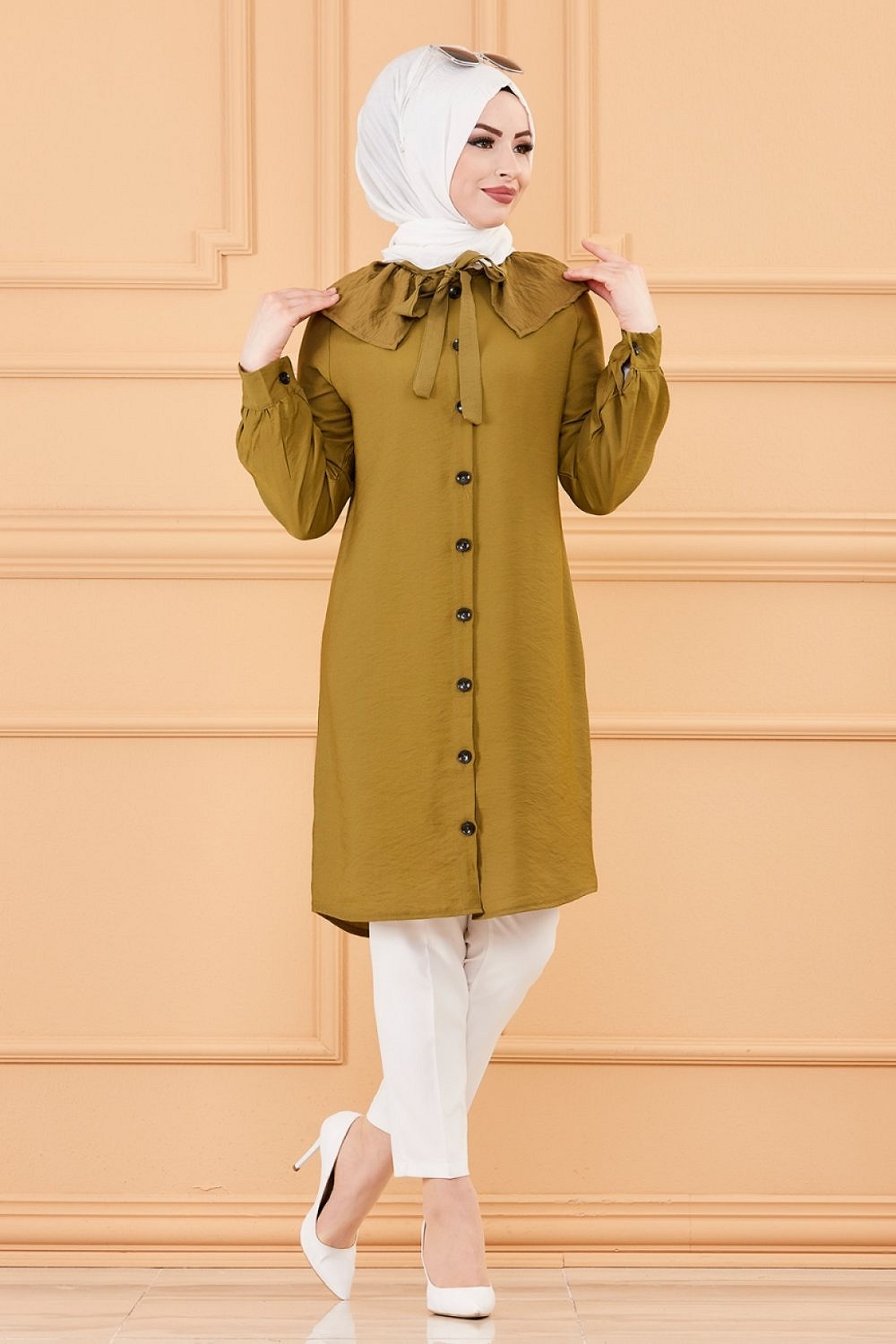 Tunique chemise boutonnée habillée (Vêtement pour femme voilée) - Couleur kaki Vetement & Accessoire